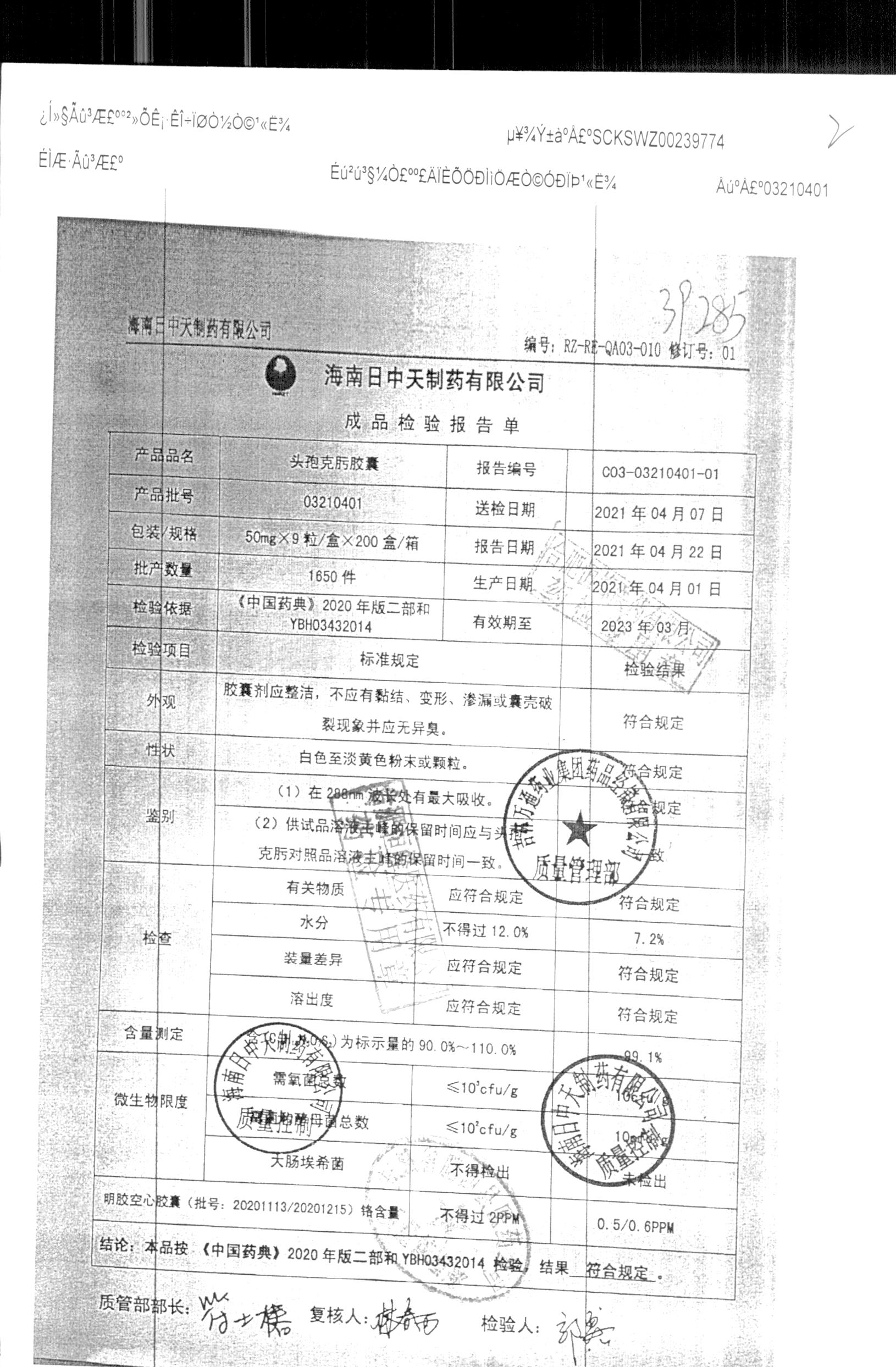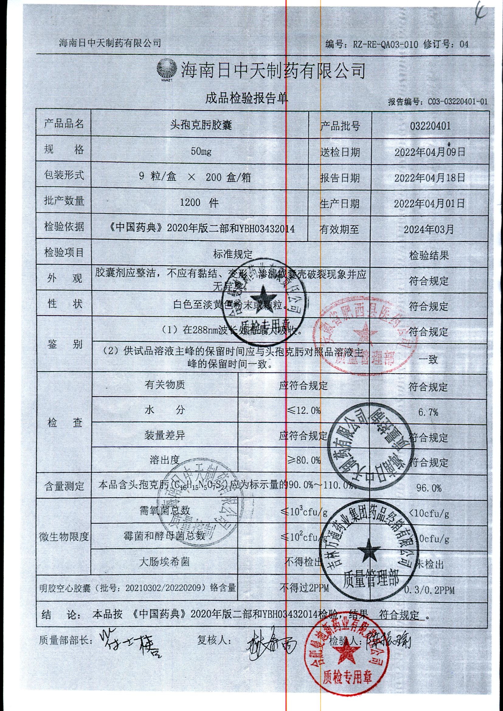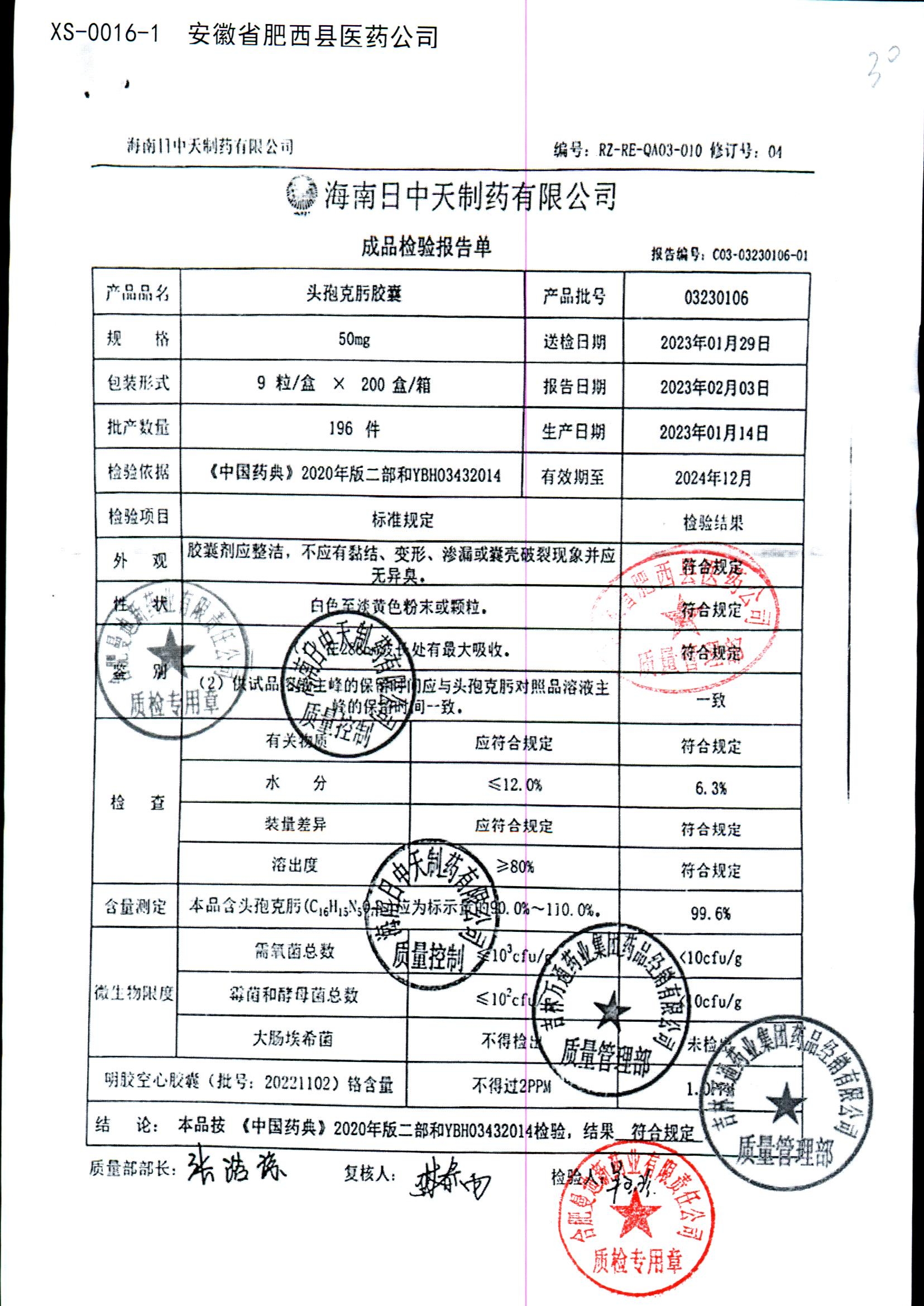 | 头孢克肟胶囊 | 50mg*9s | 03201202 | 查看详情 |