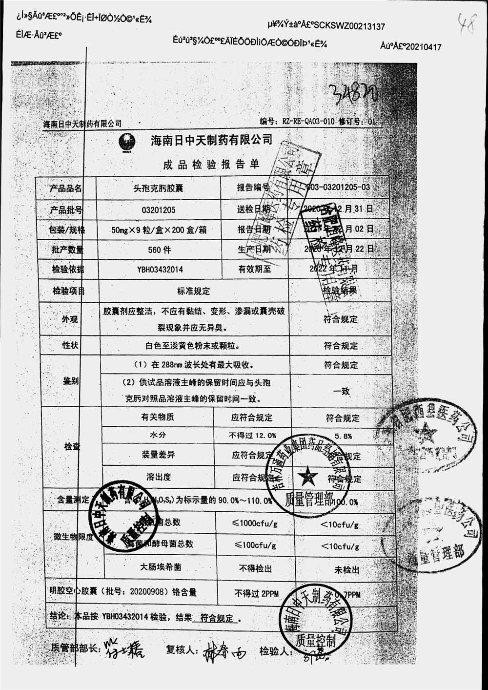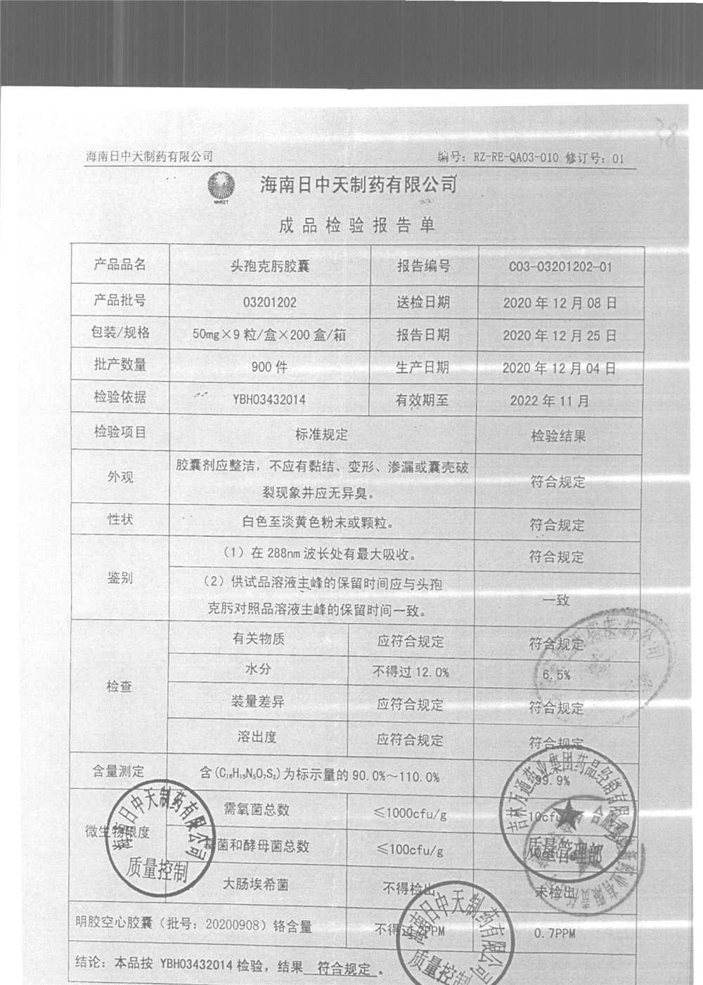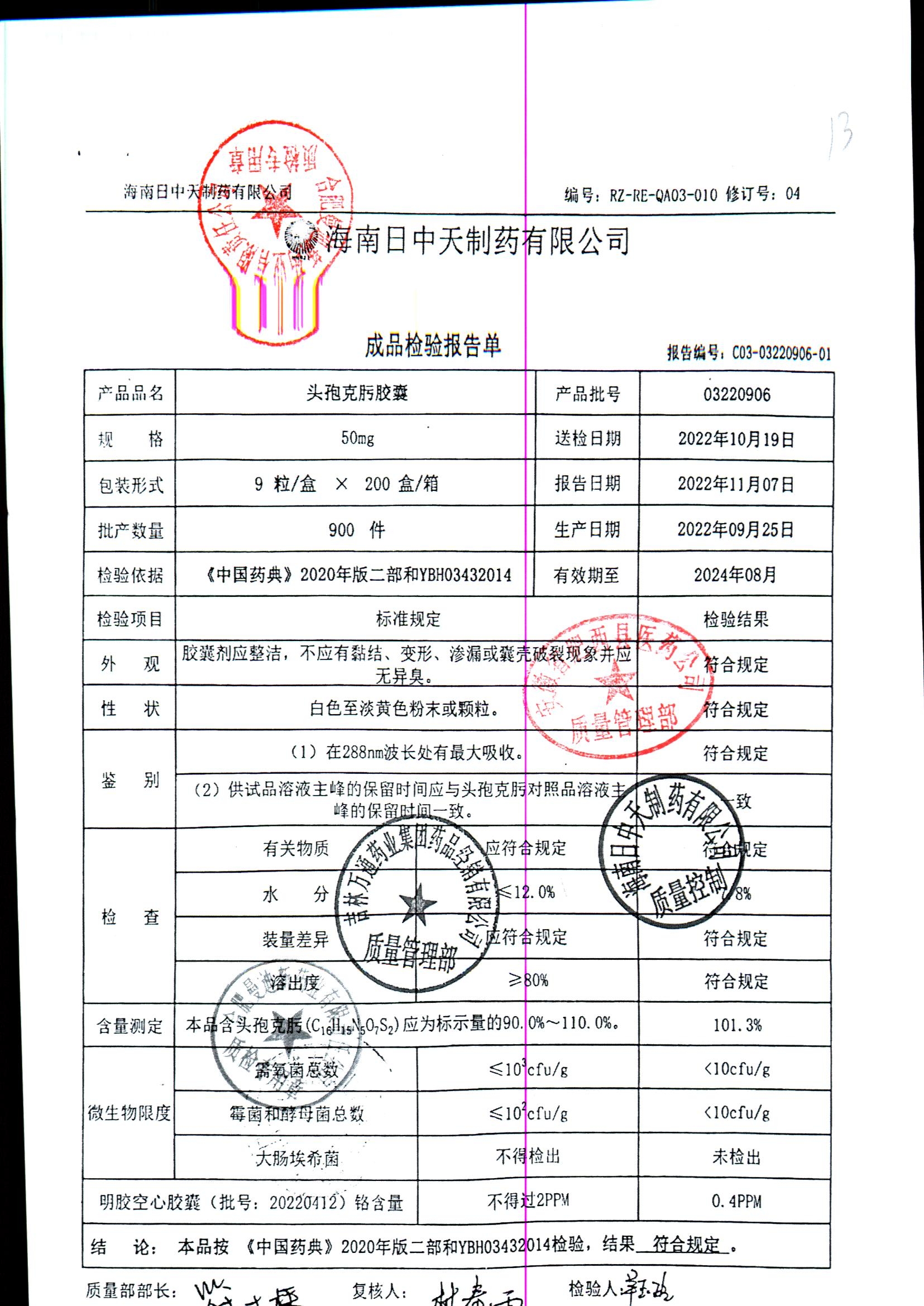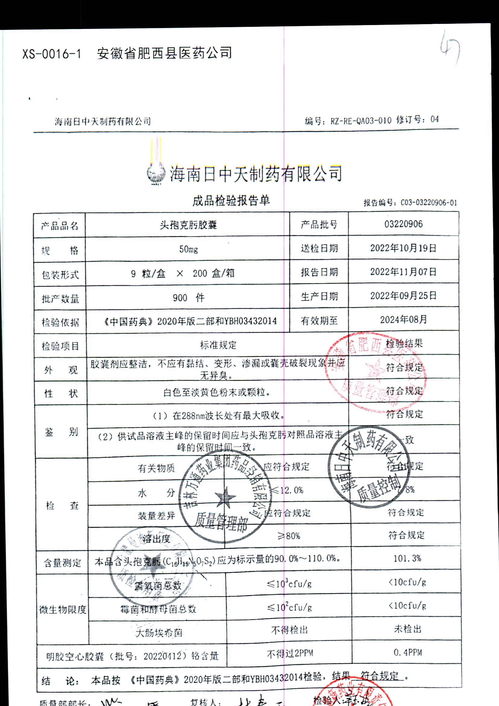 | 头孢克肟胶囊 | 50mg*9s | 03201202 | 查看详情 |