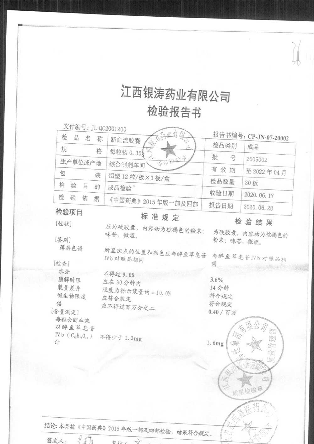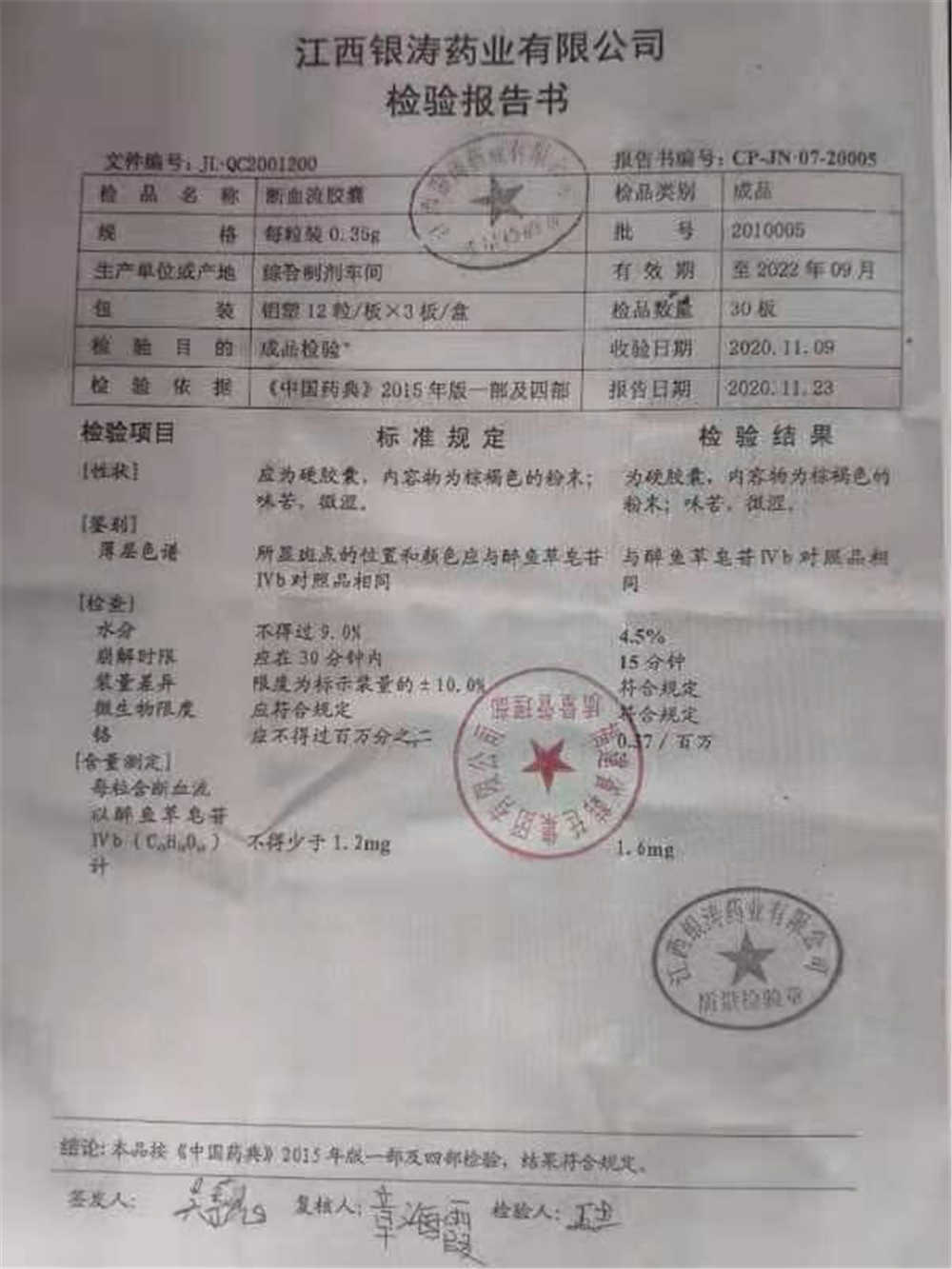 药检报告