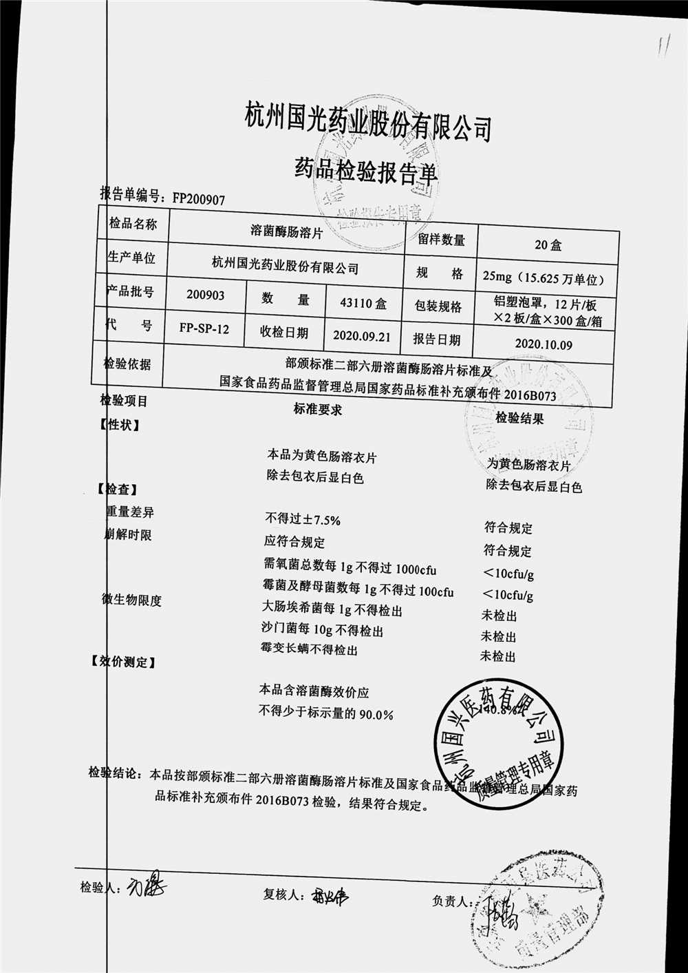 药检报告