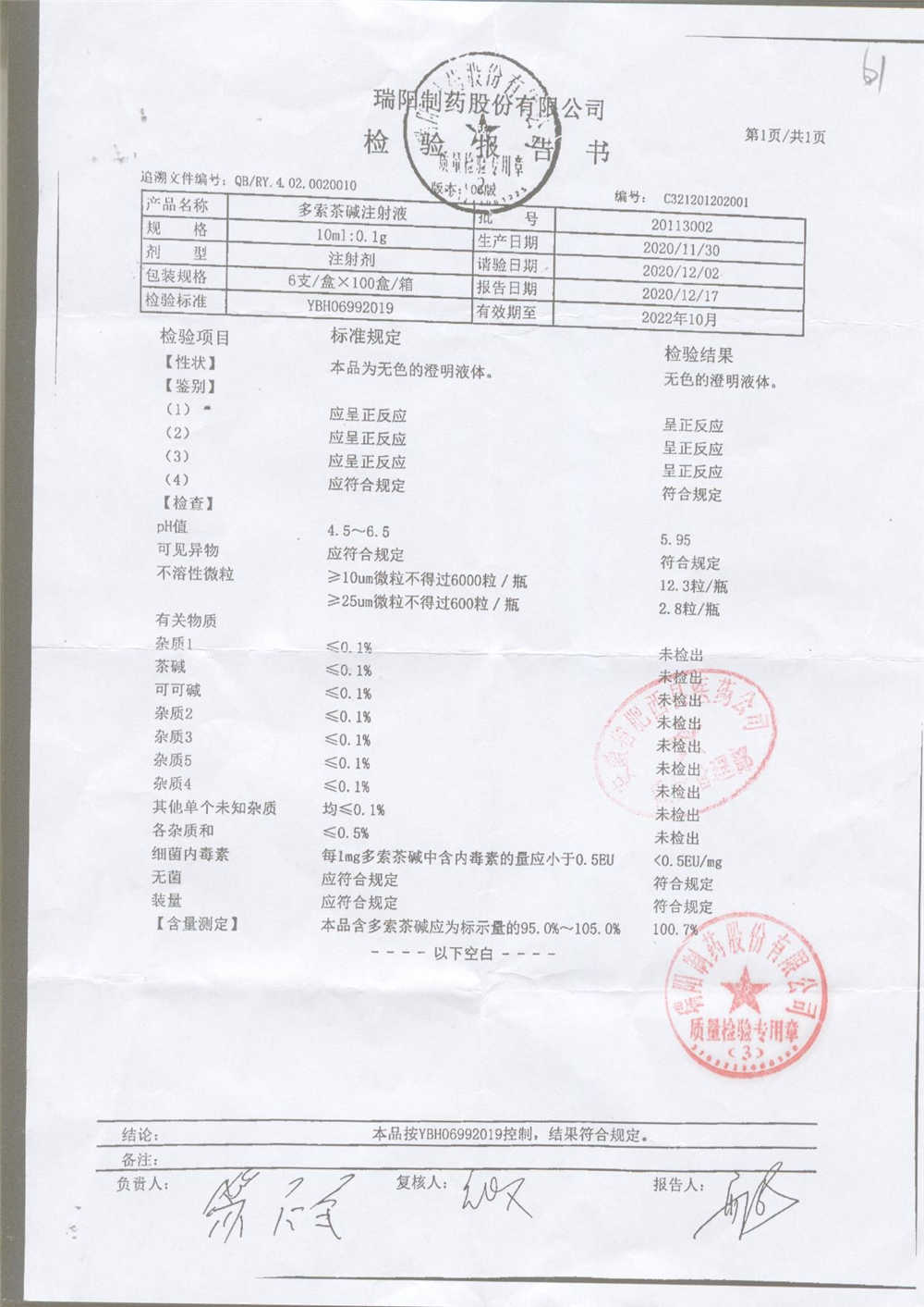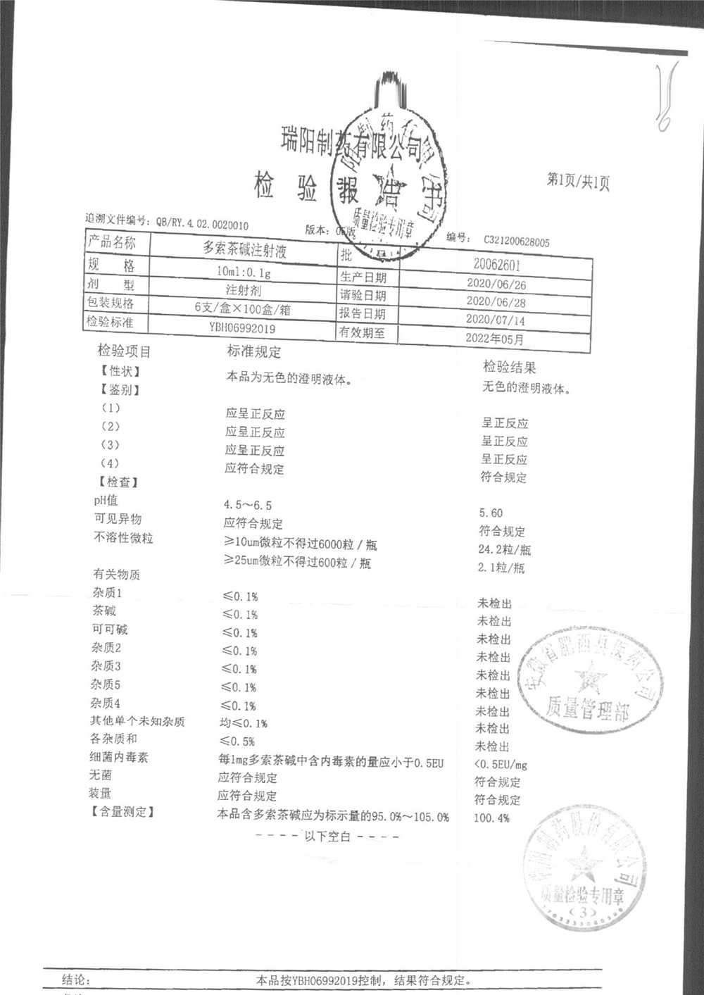 药检报告