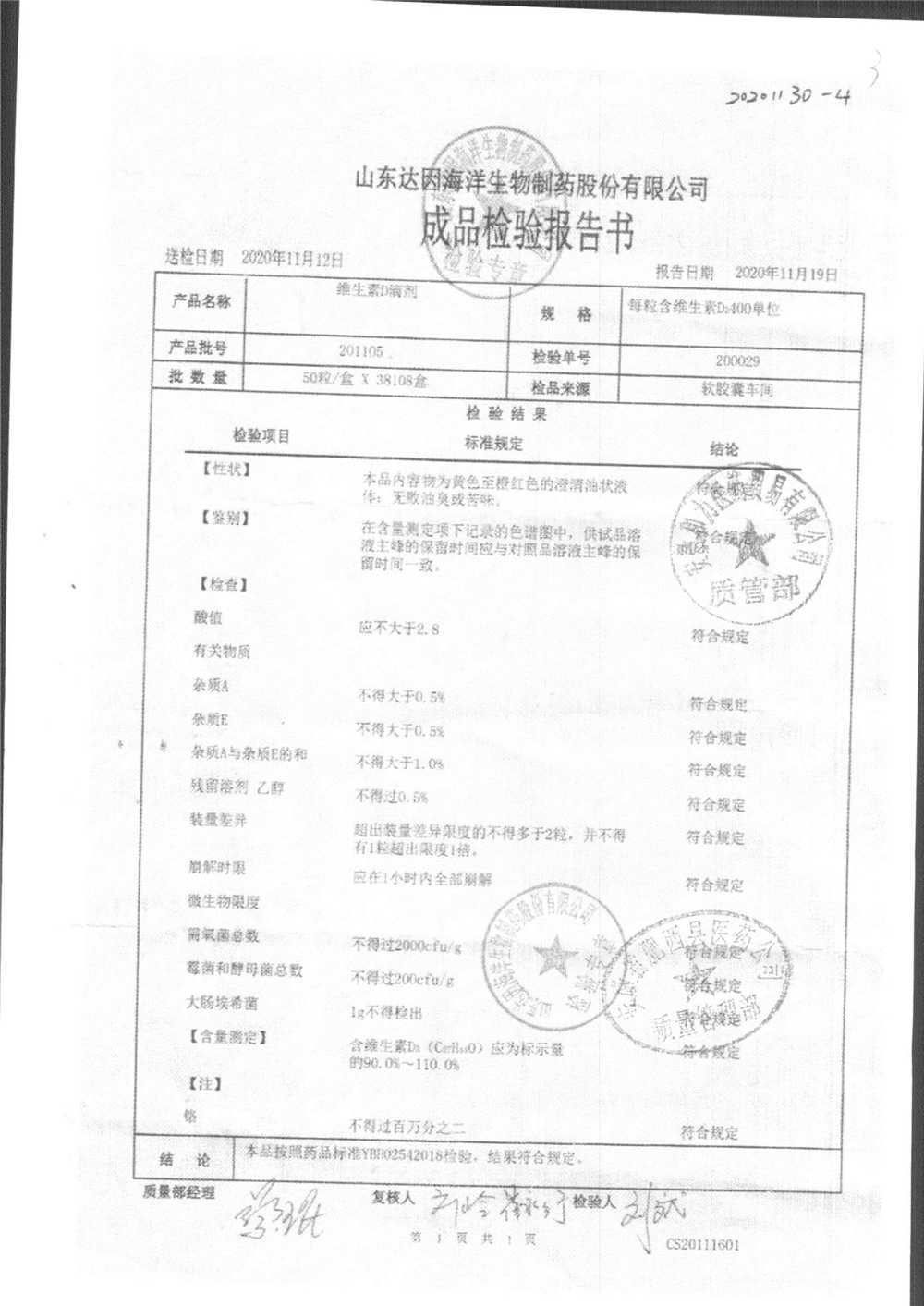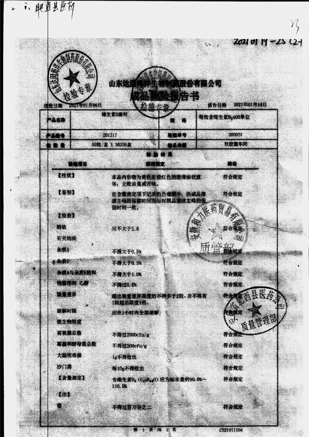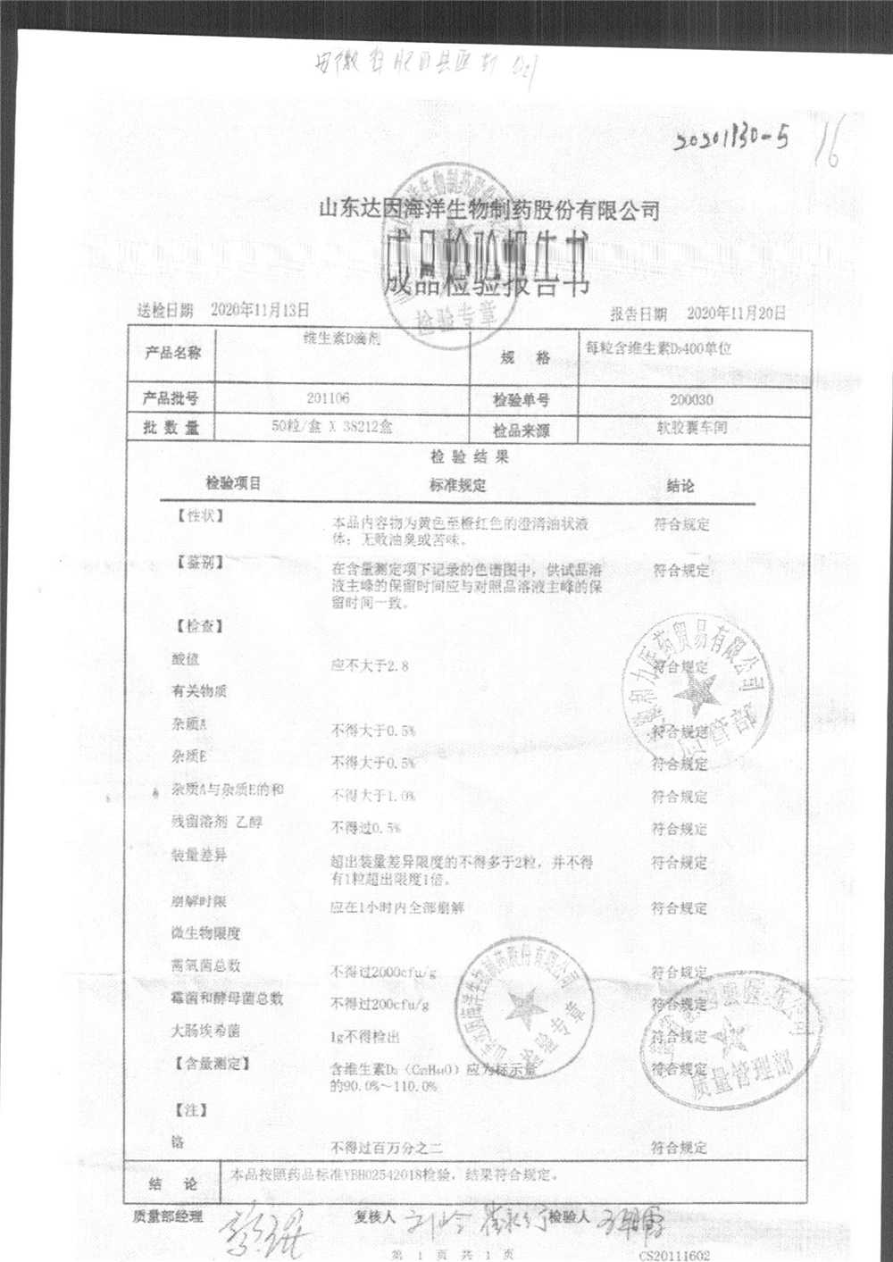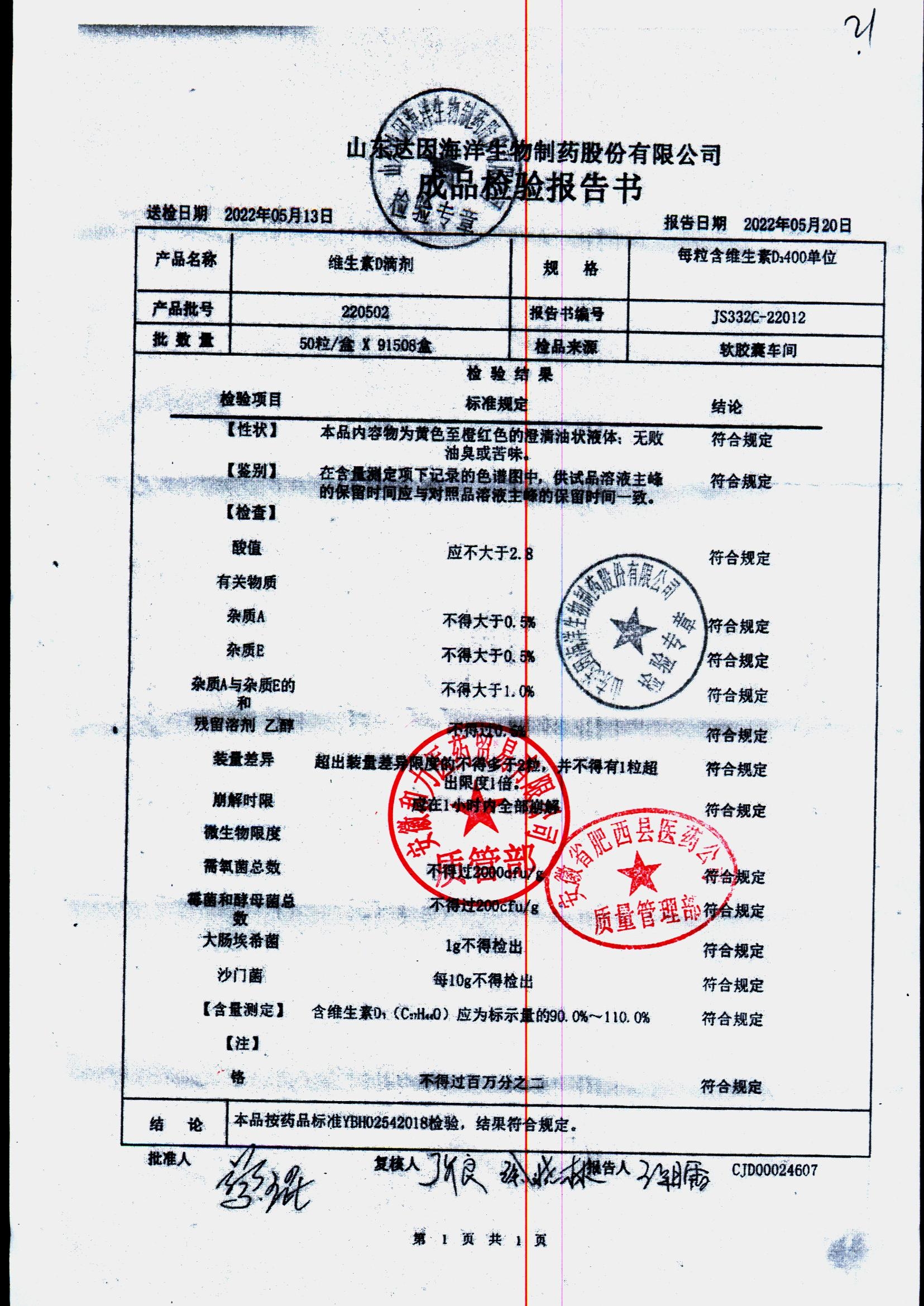 | 维生素D滴剂 | 10s*5板(每粒含维生素D3 400单位) | 201105 | 查看详情 |