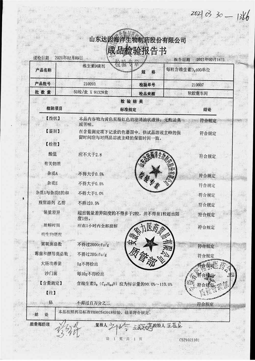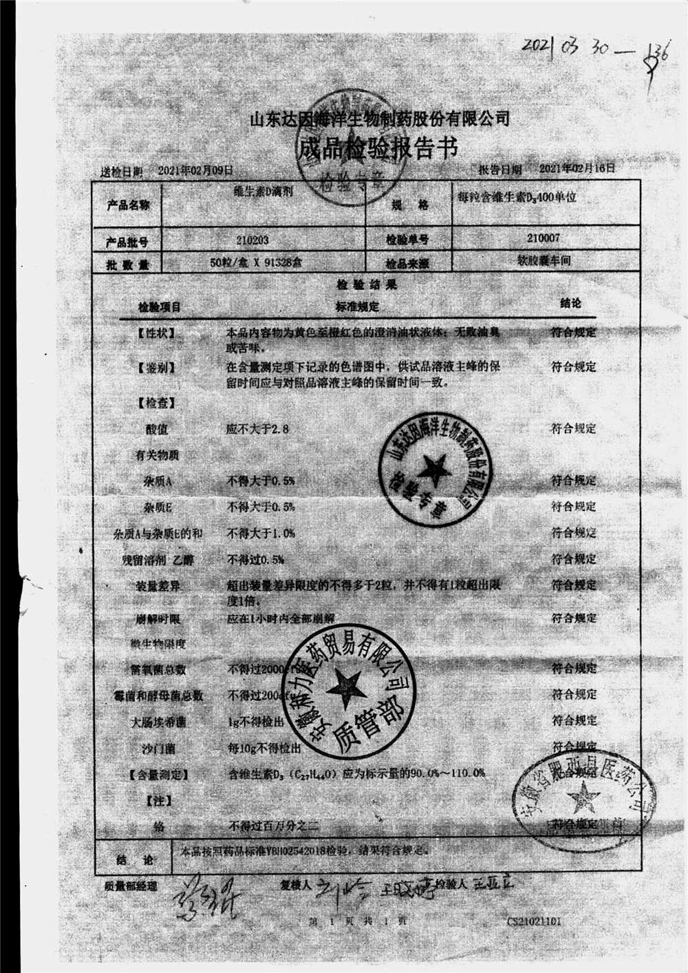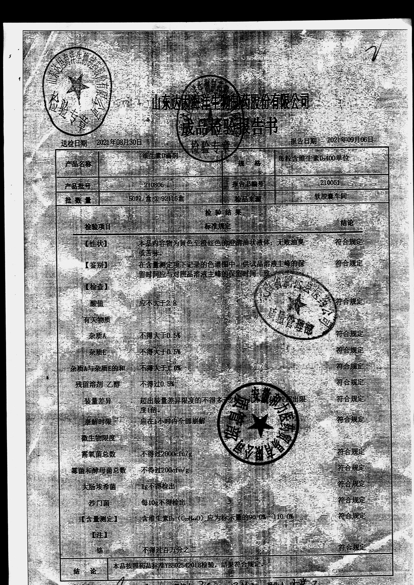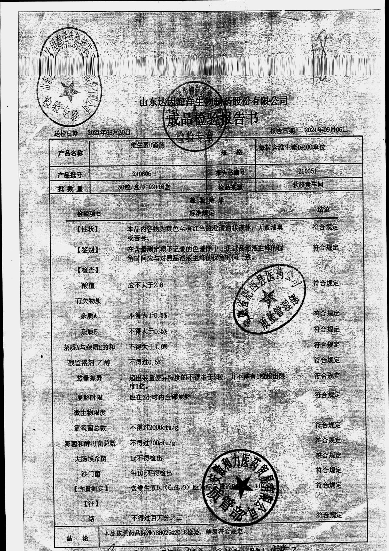 | 维生素D滴剂 | 10s*5板(每粒含维生素D3 400单位) | 210806 | 查看详情 |