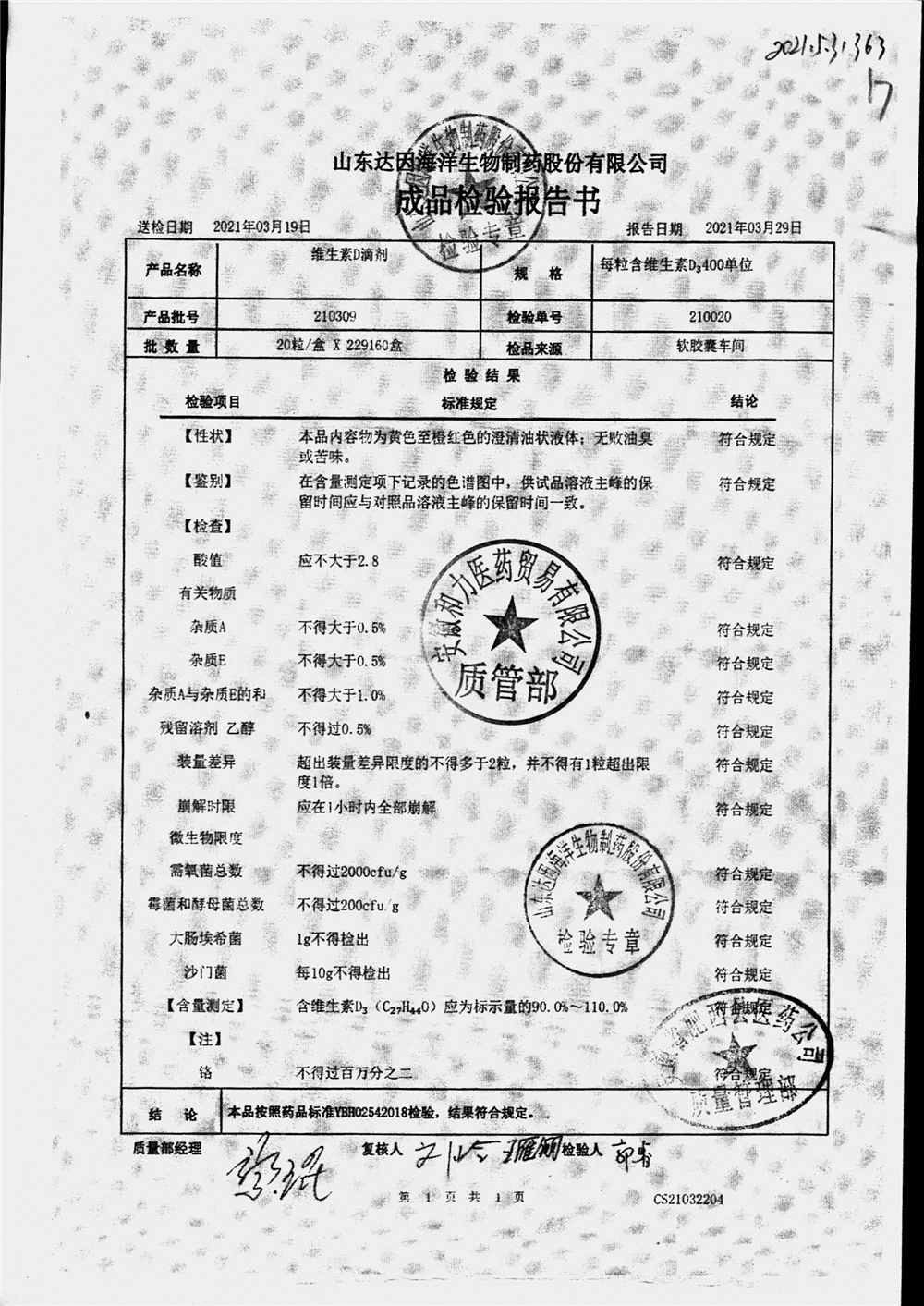 | 维生素D滴剂 | 10s*5板(每粒含维生素D3 400单位) | 210309 | 查看详情 |