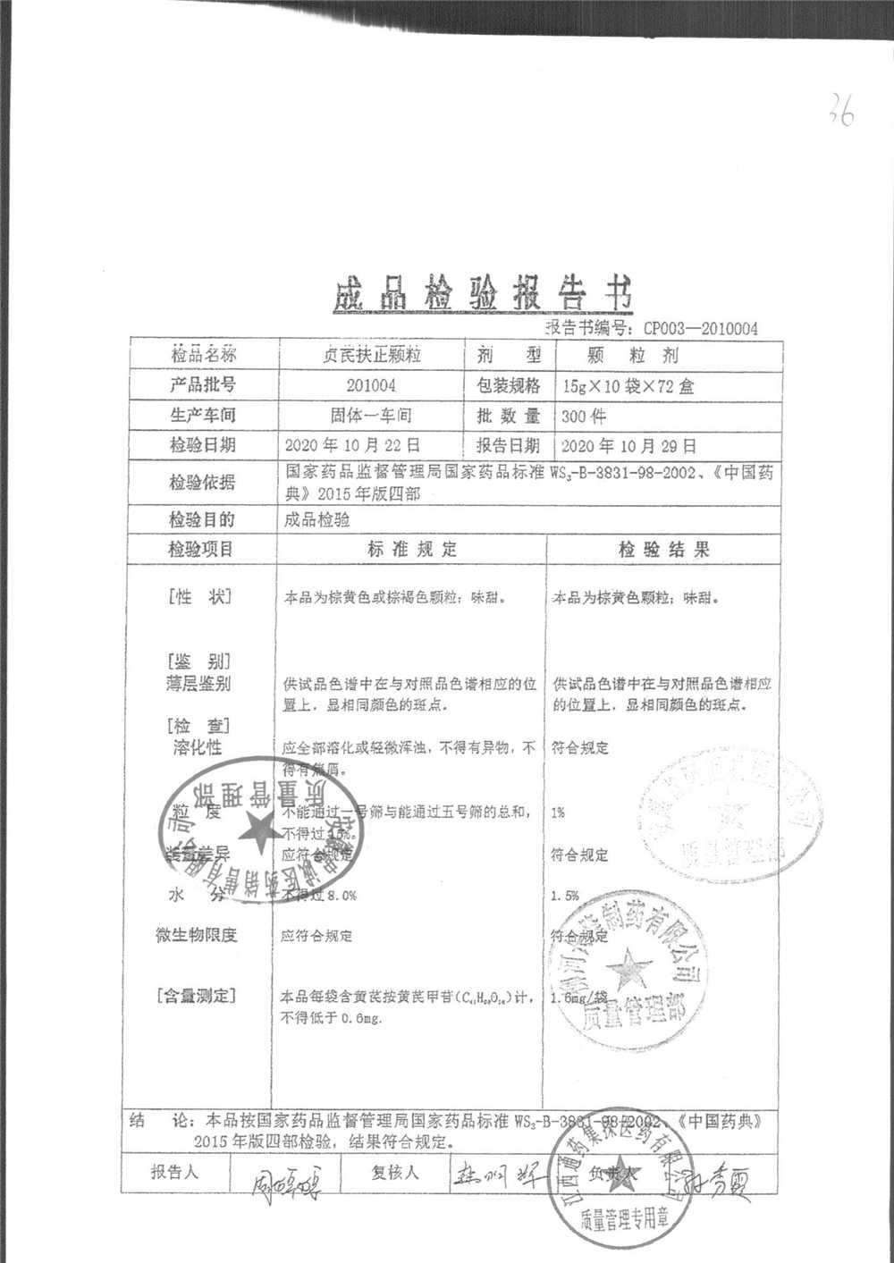 药检报告