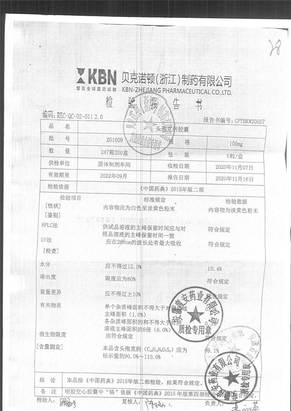 药检报告