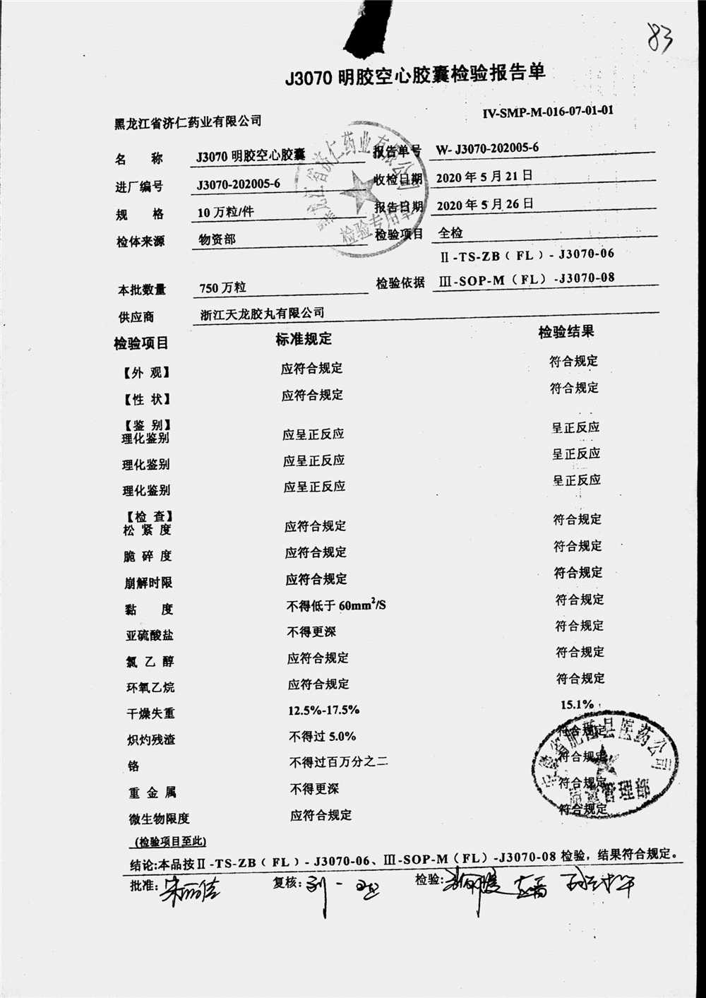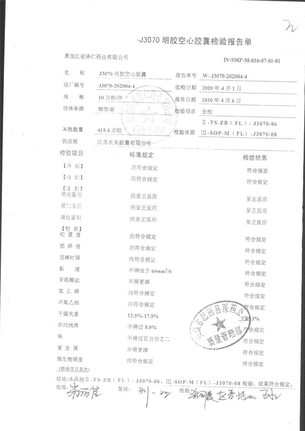 | 名称 | 规格 | 批号 | 药检报告 |