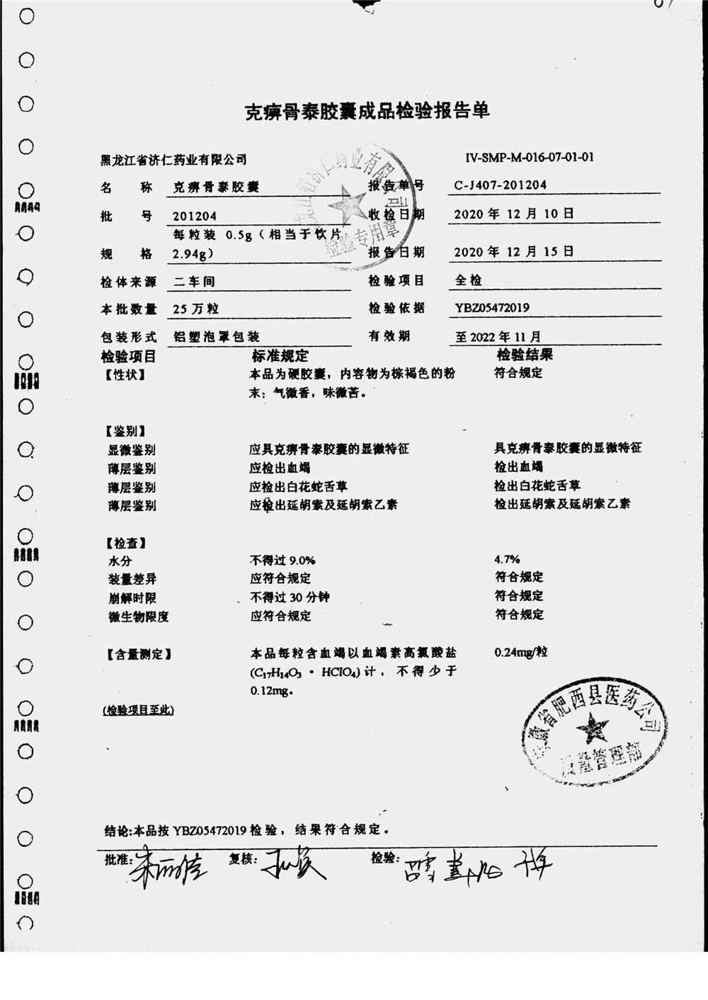| 克痹骨泰胶囊 | 0.5g*12s*4板 | 220507/1 | 查看详情 |