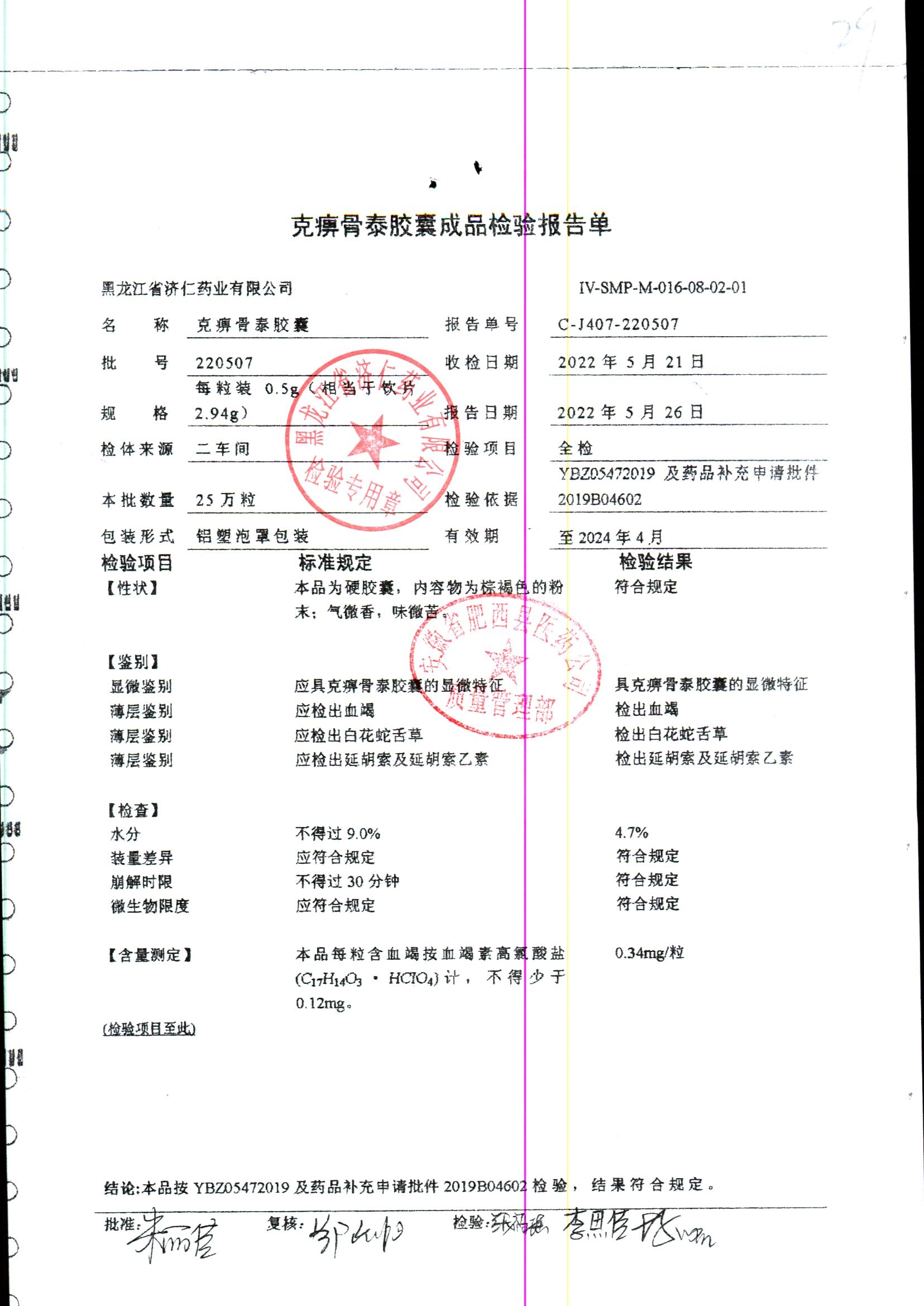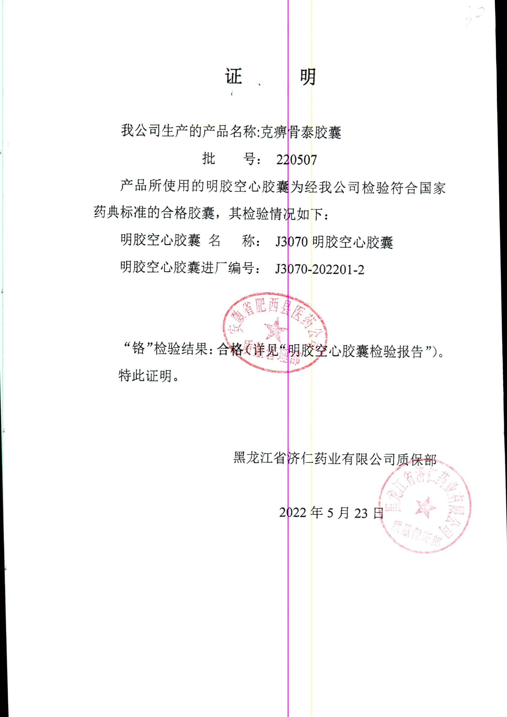 | 克痹骨泰胶囊 | 0.5g*12s*4板 | 220507/4 | 查看详情 |