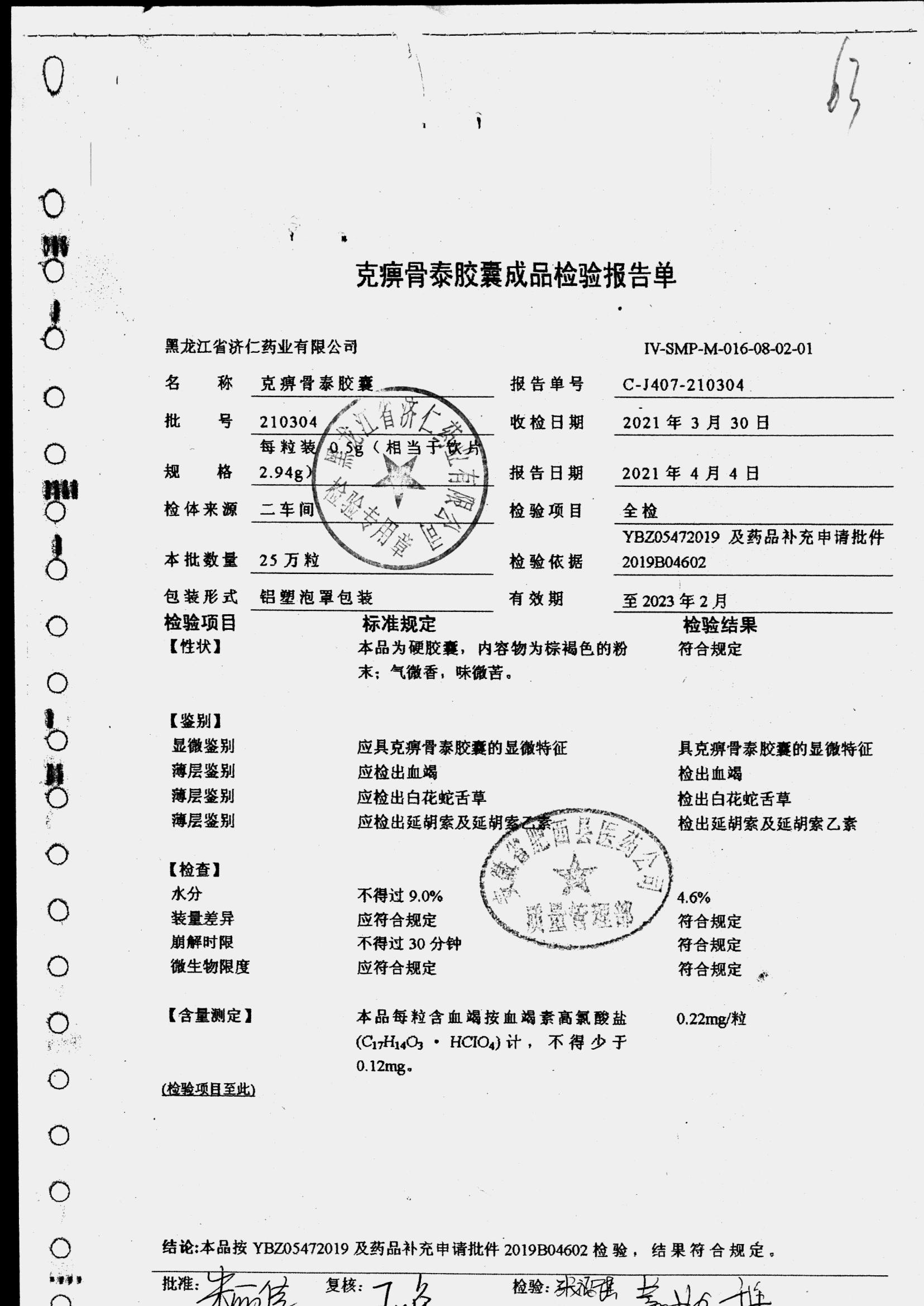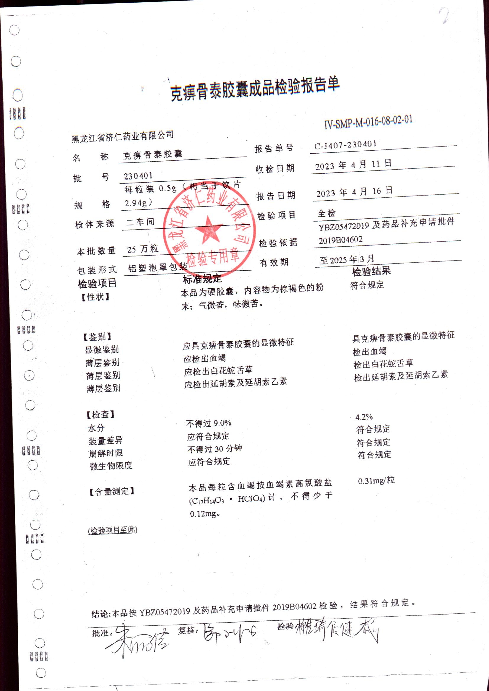 | 克痹骨泰胶囊 | 0.5g*12s*4板 | 210304 | 查看详情 |