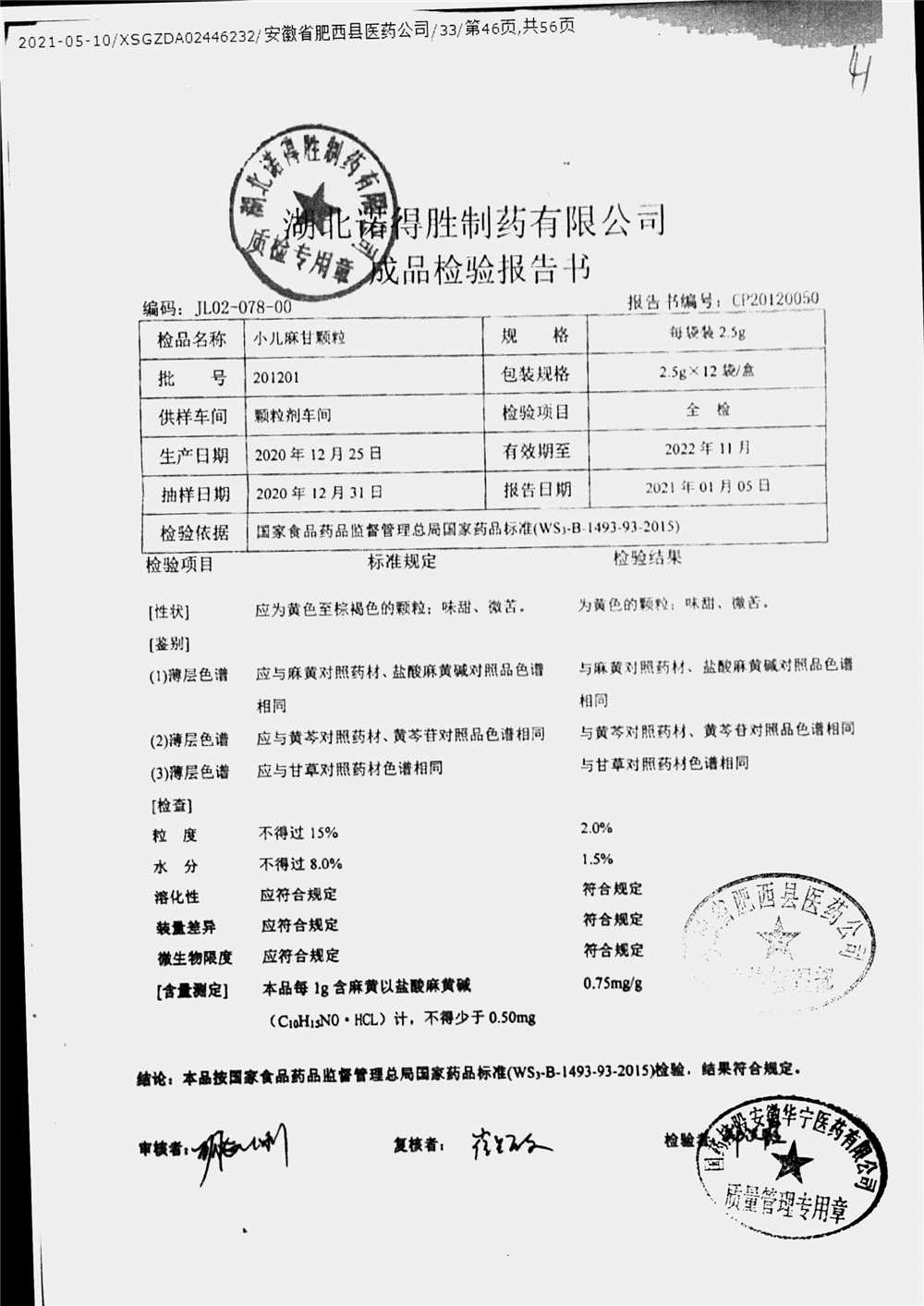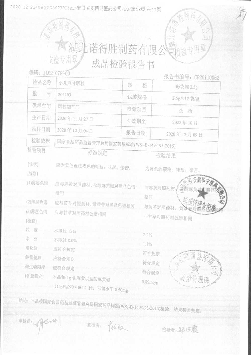 | 小儿麻甘颗粒 | 2.5g*12袋 | 201201 | 查看详情 |