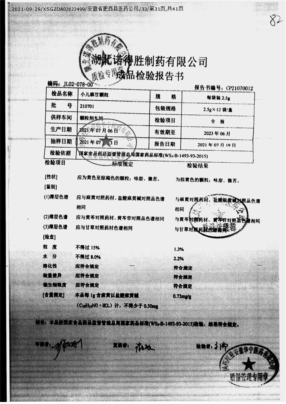 | 小儿麻甘颗粒 | 2.5g*12袋 | 210701 | 查看详情 |