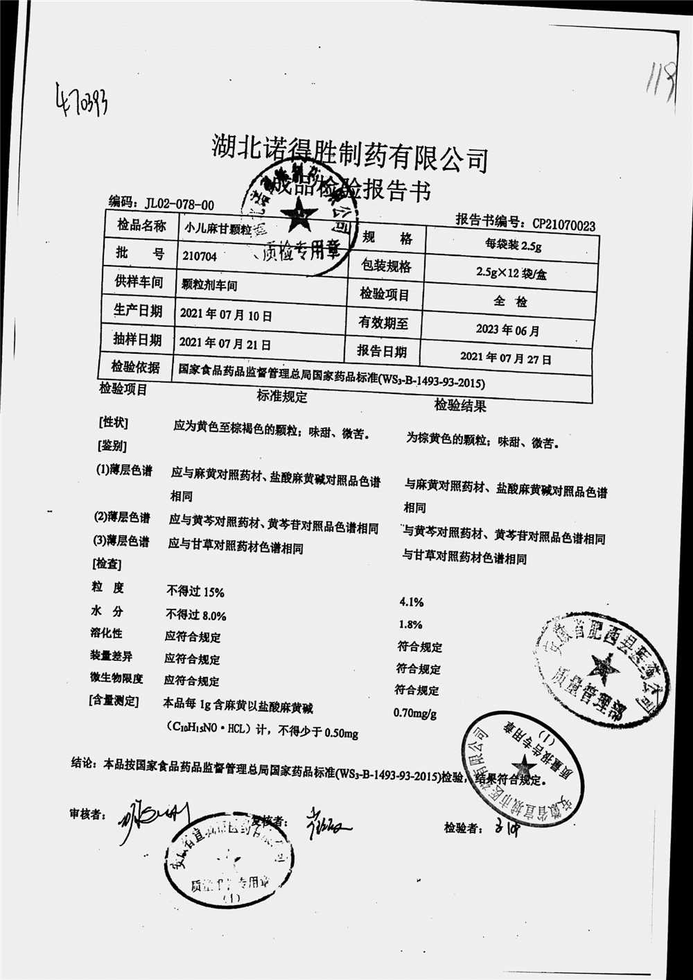 | 小儿麻甘颗粒 | 2.5g*12袋 | 210704 | 查看详情 |