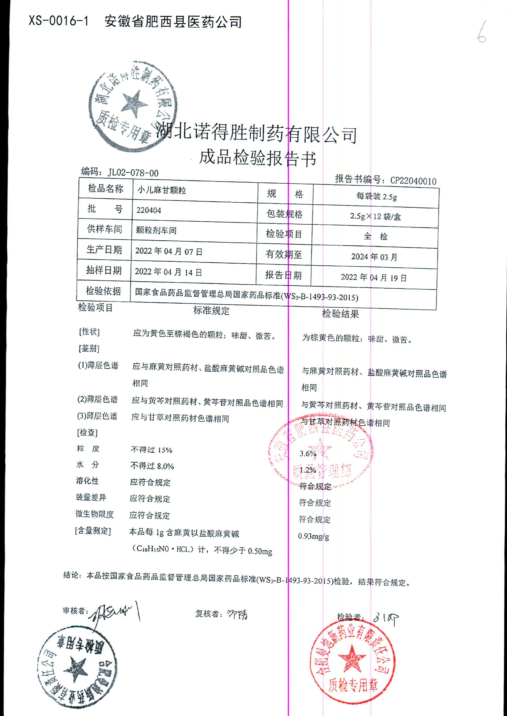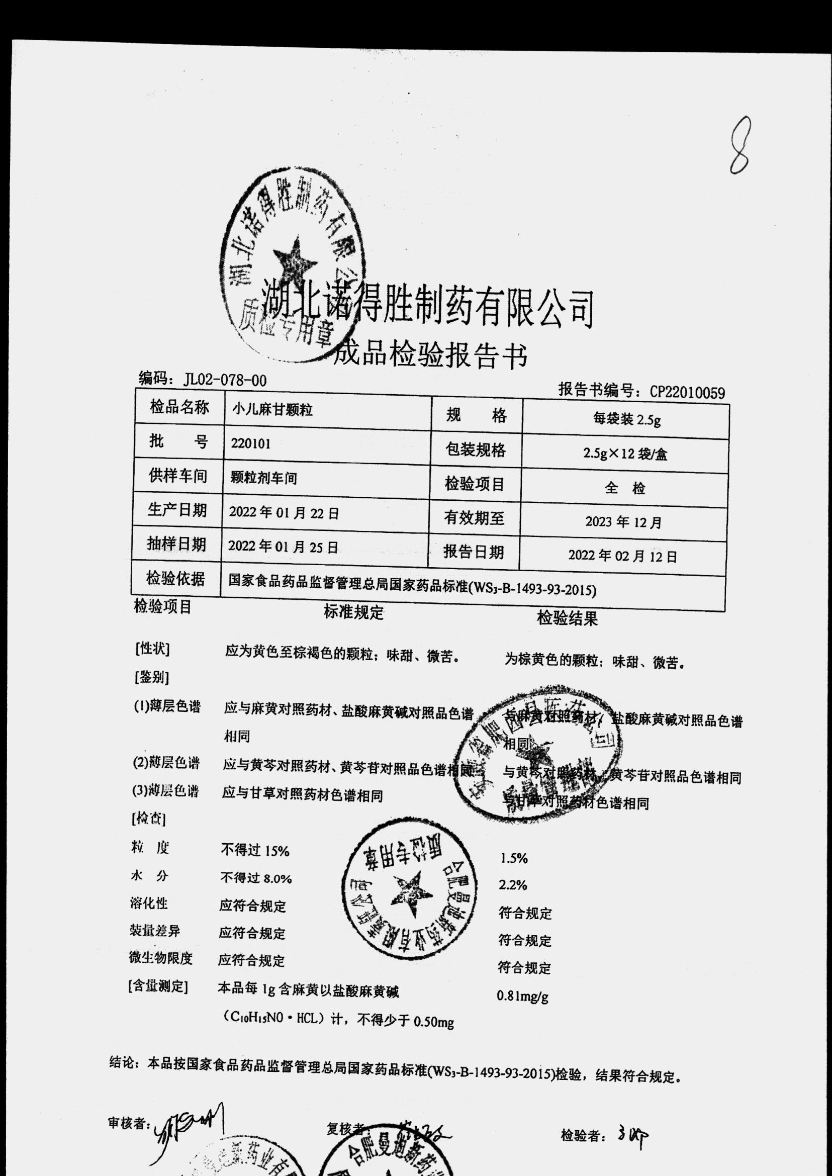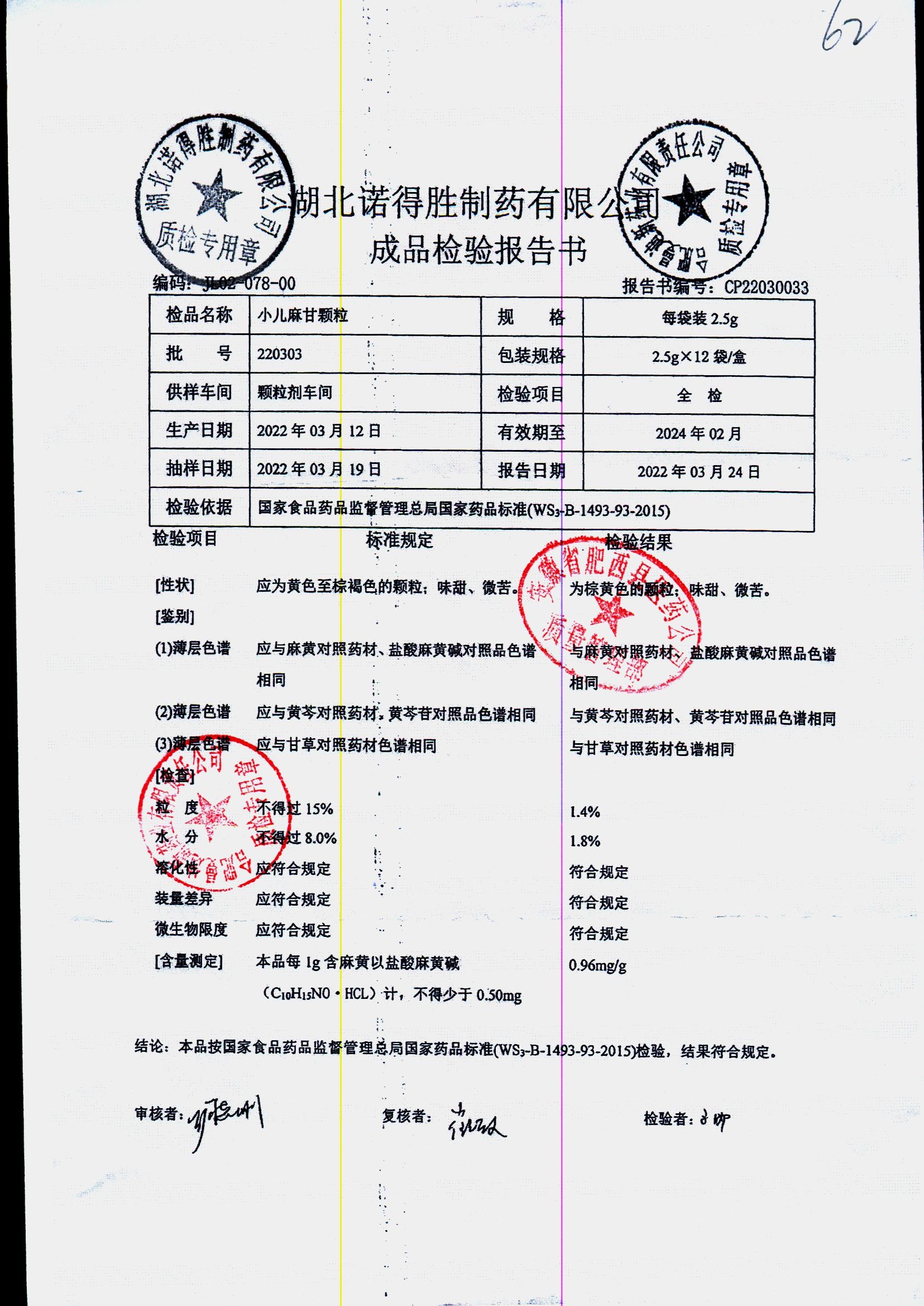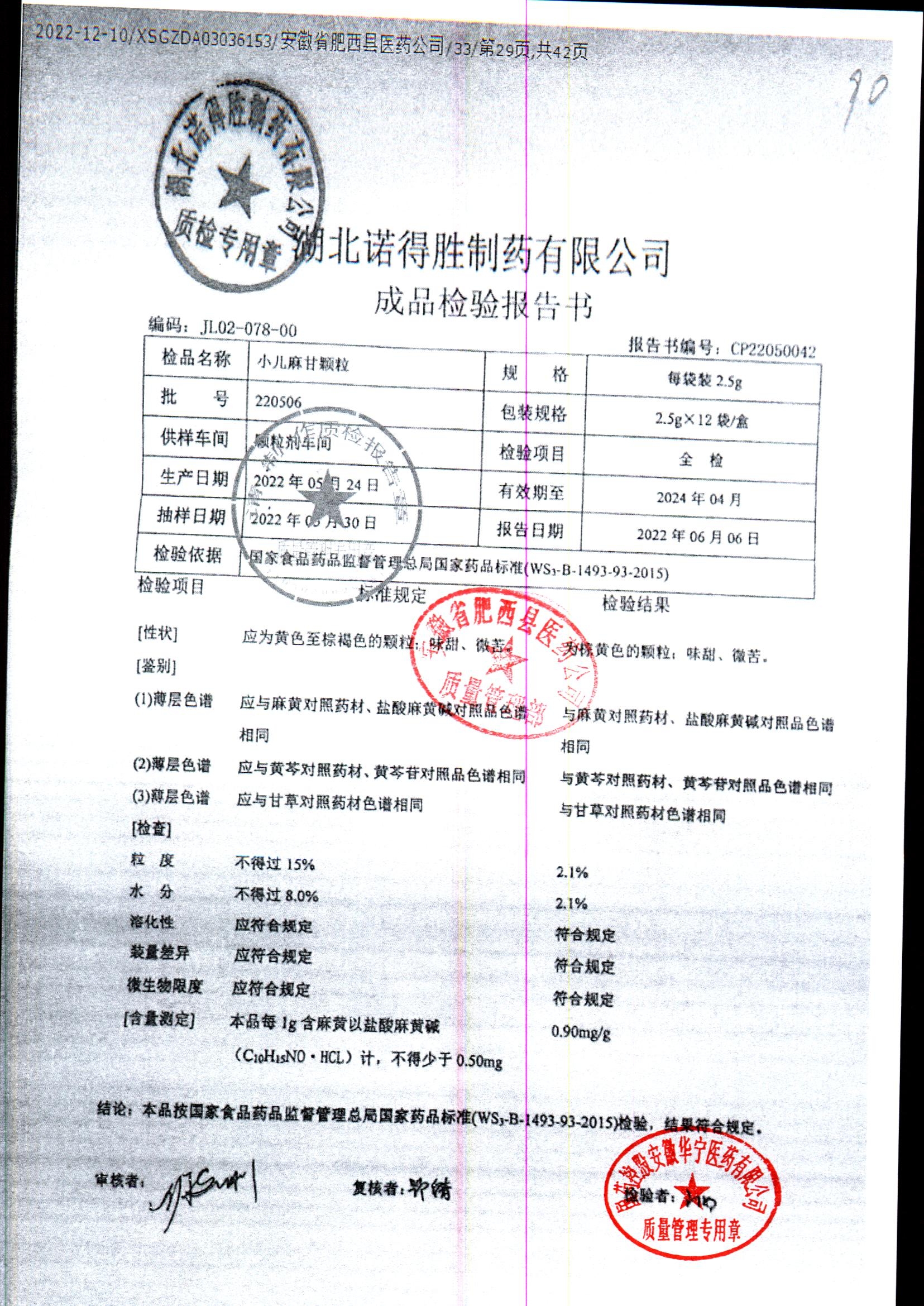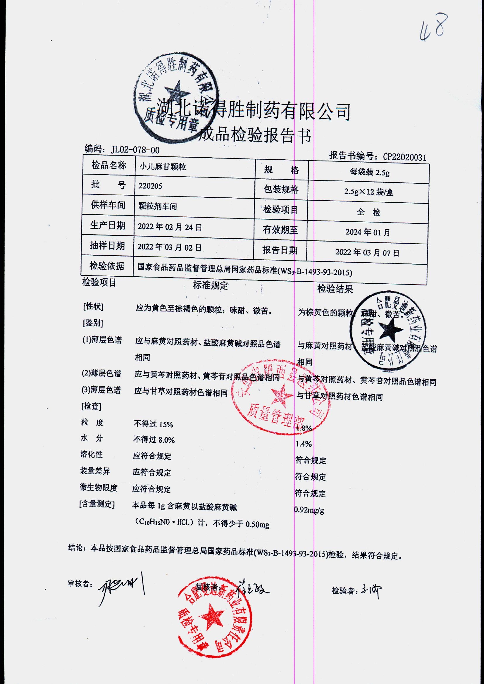 | 小儿麻甘颗粒 | 2.5g*12袋 | 220506 | 查看详情 |