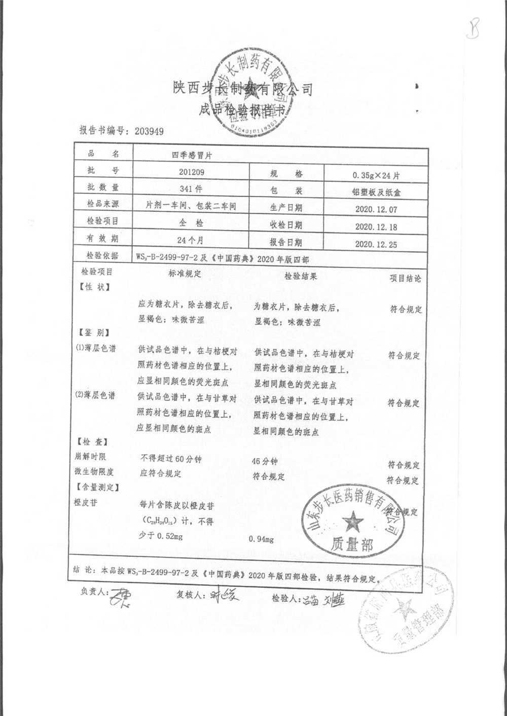 | 四季感冒片 | 0.35g*12片*2板 | 201209 | 查看详情 |