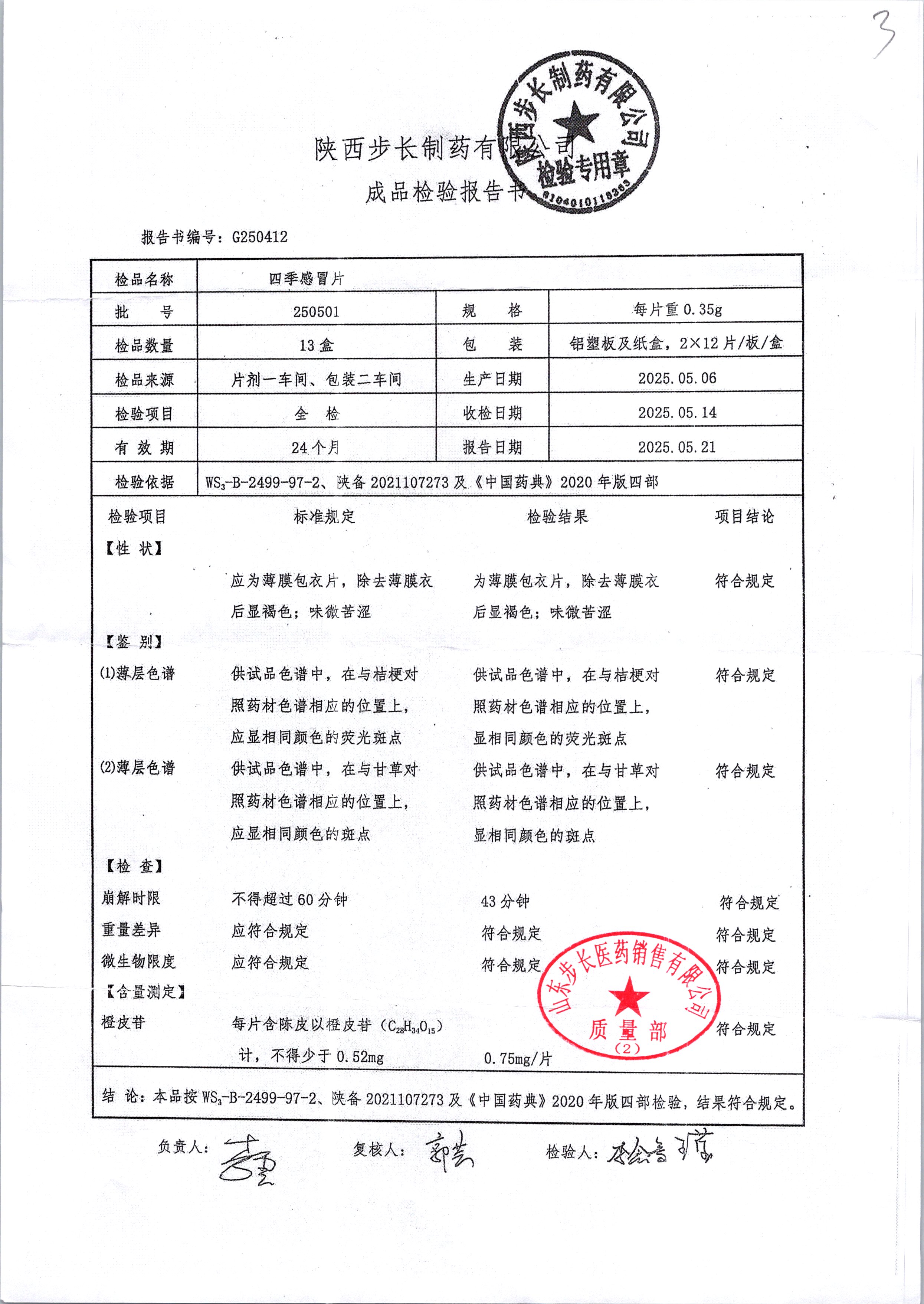 | 四季感冒片 | 0.35g*12片*2板 | 250501 | 查看详情 |