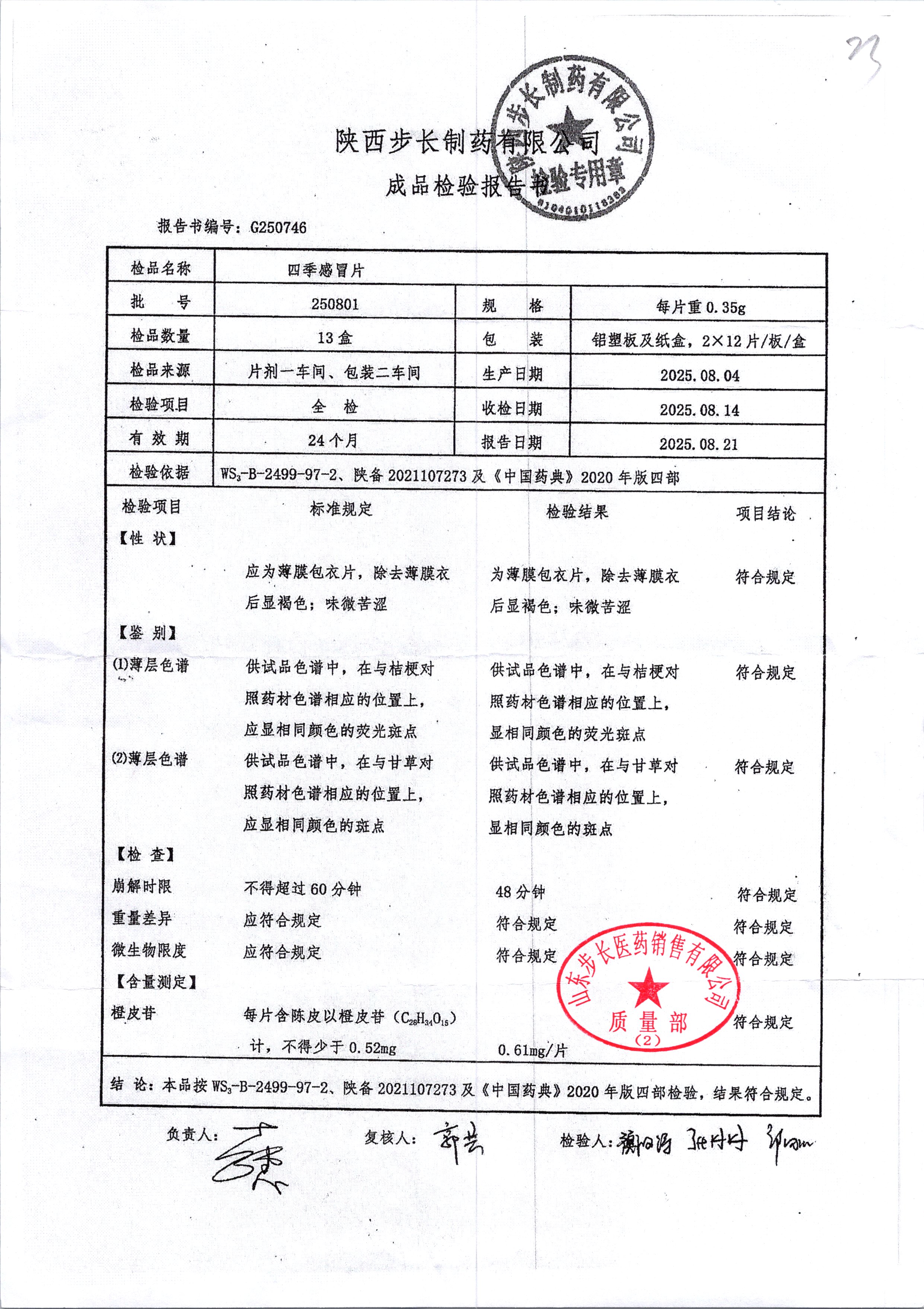 | 四季感冒片 | 0.35g*12片*2板 | 250801 | 查看详情 |