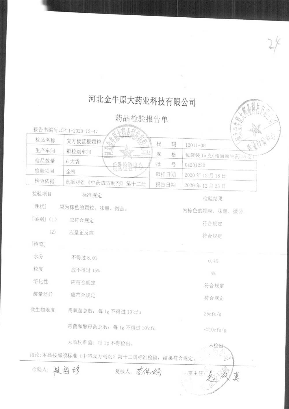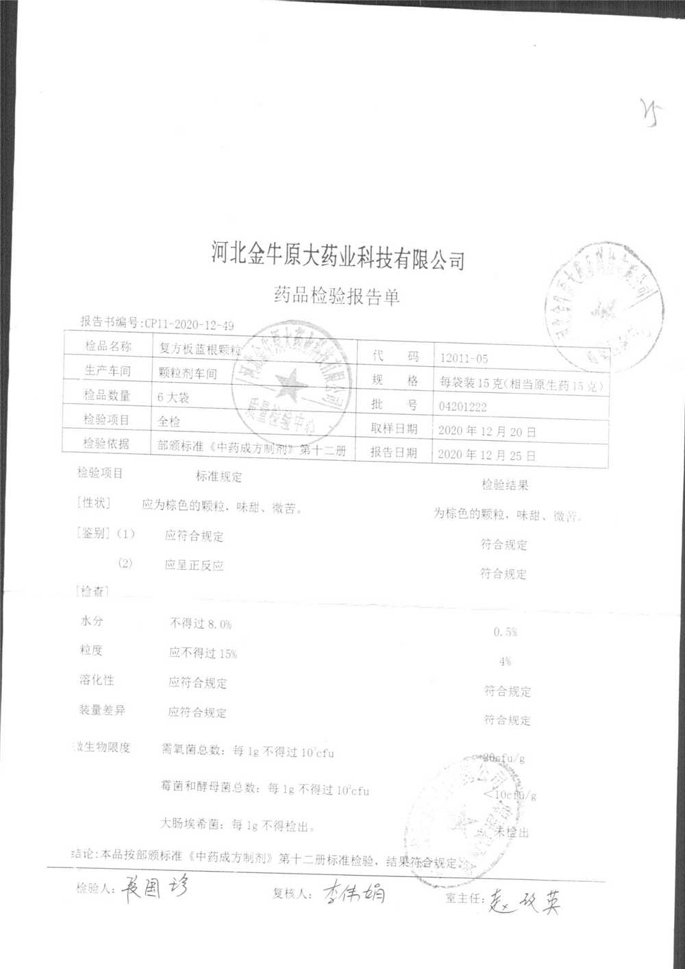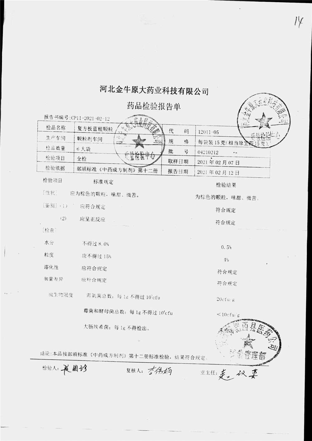 药检报告