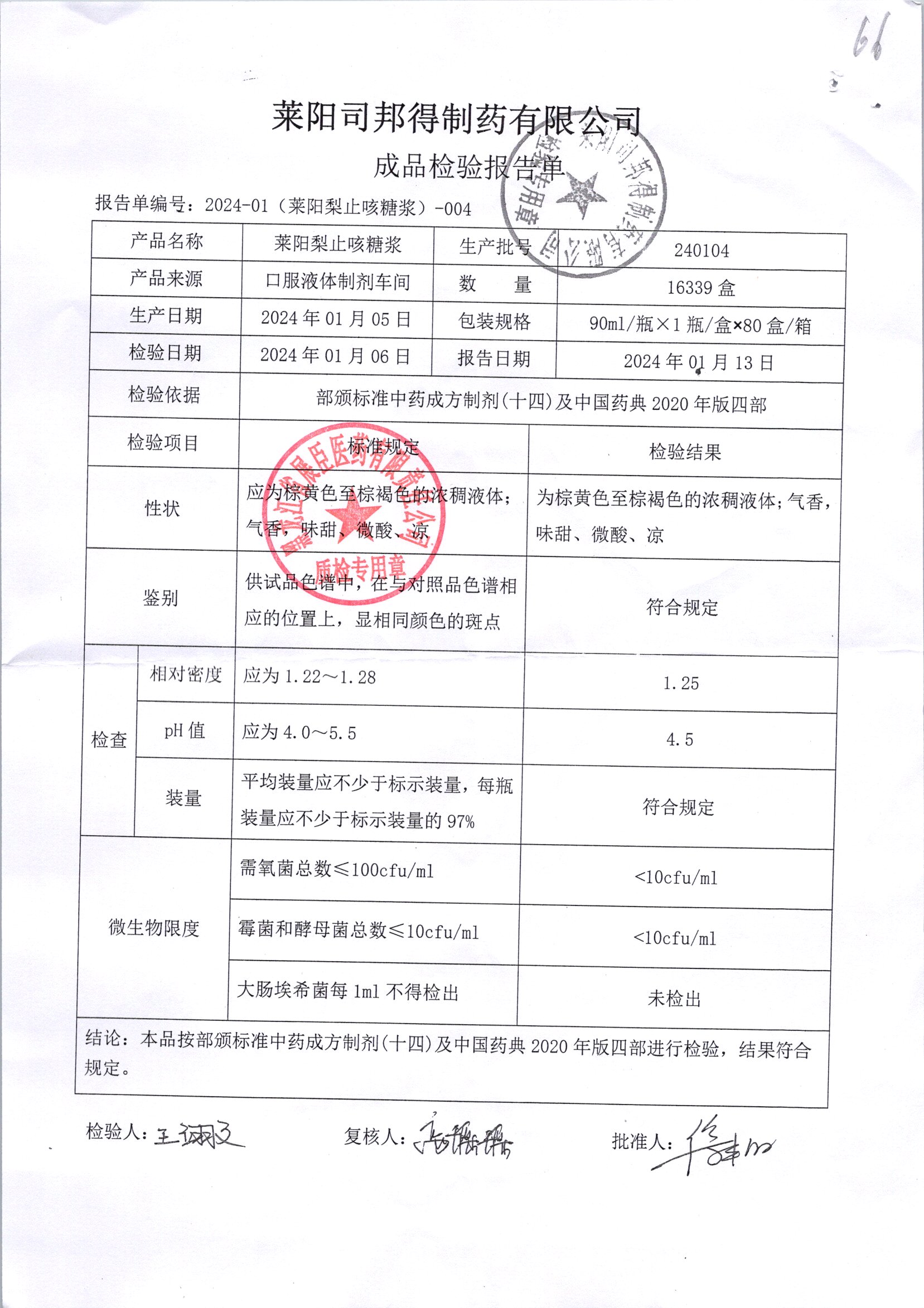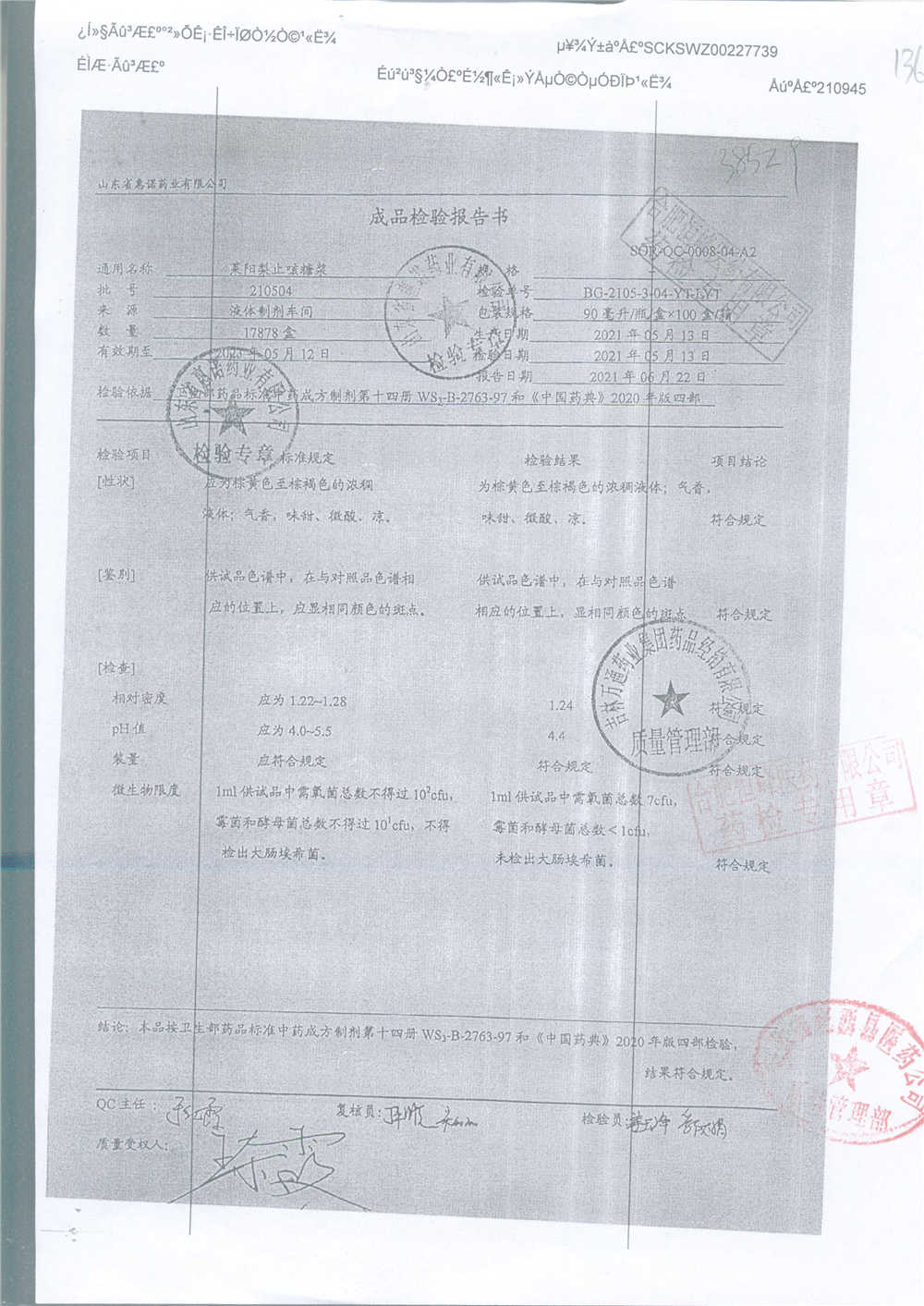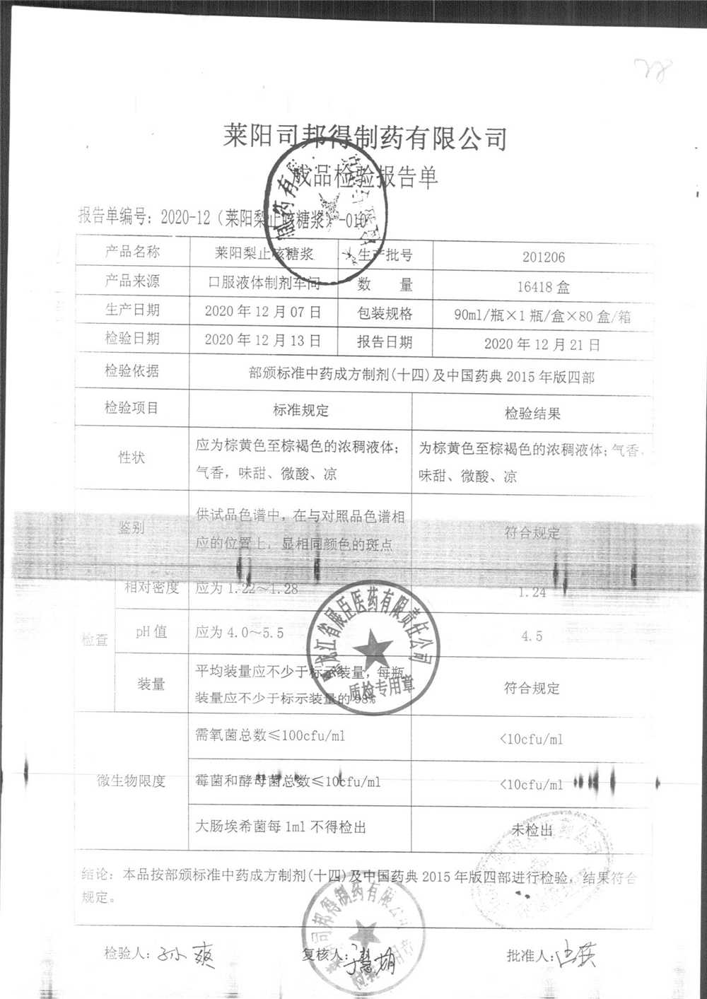 药检报告