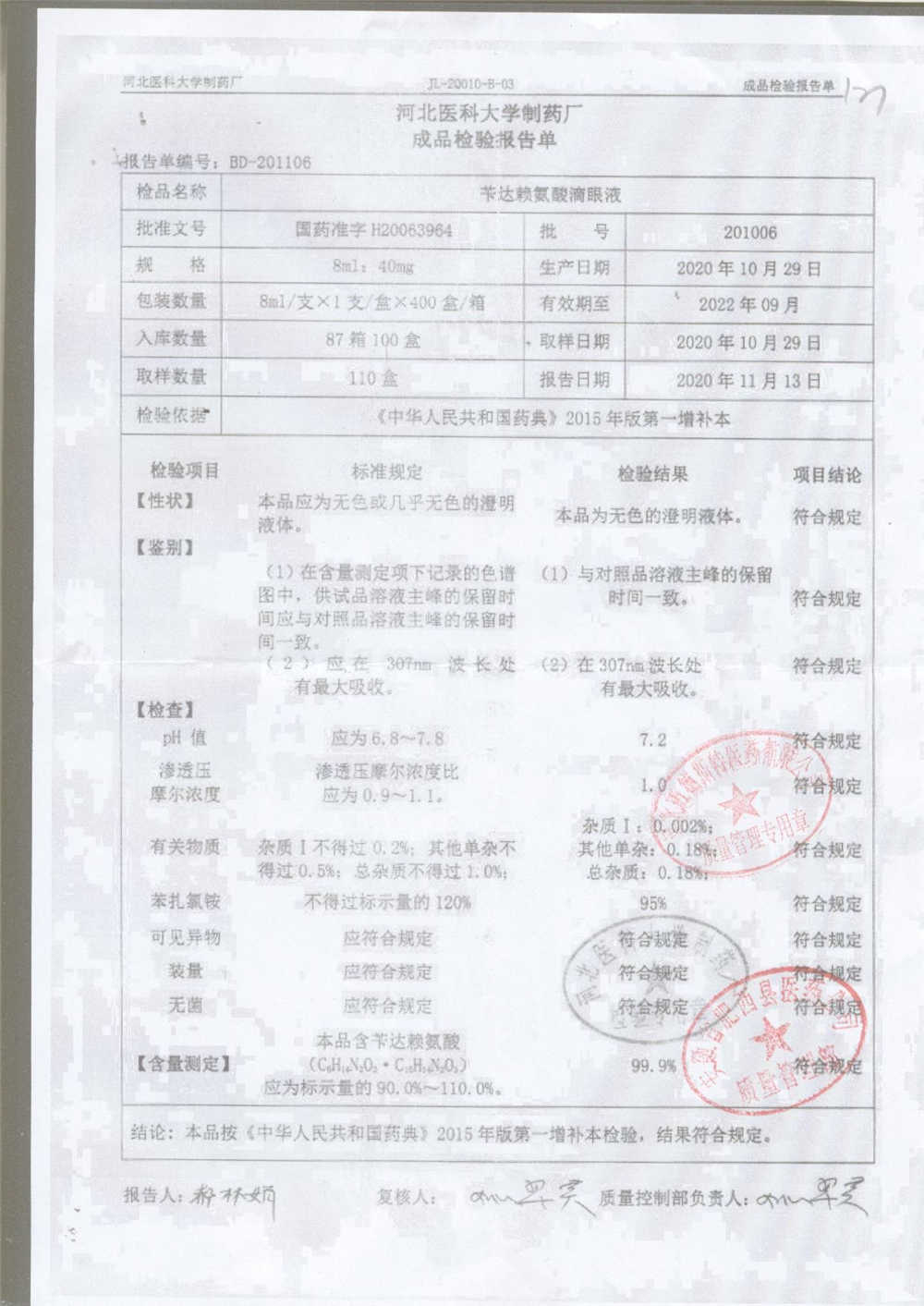 | 苄达赖氨酸滴眼液 | 8ml:40mg*1支 | 201006 | 查看详情 |