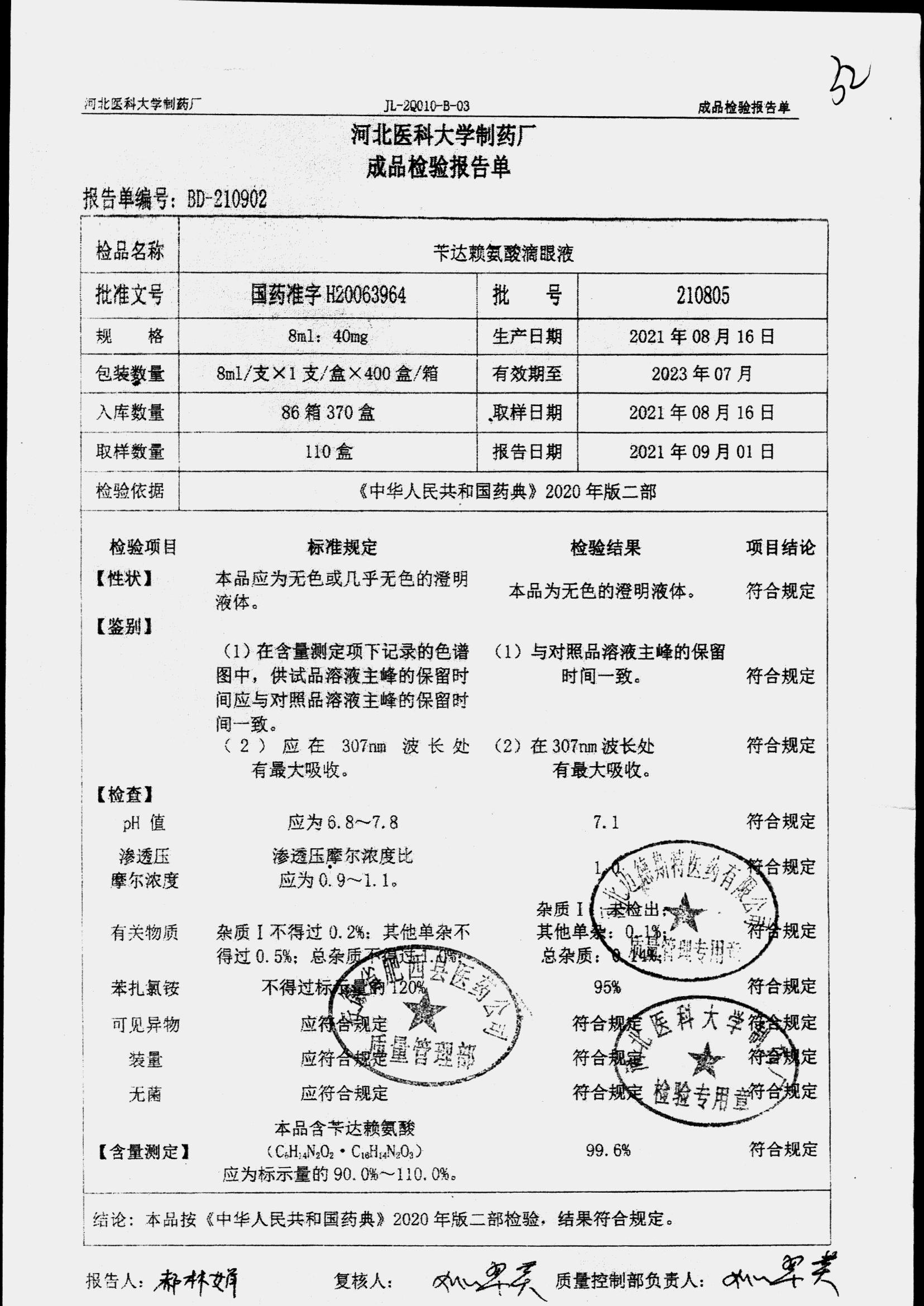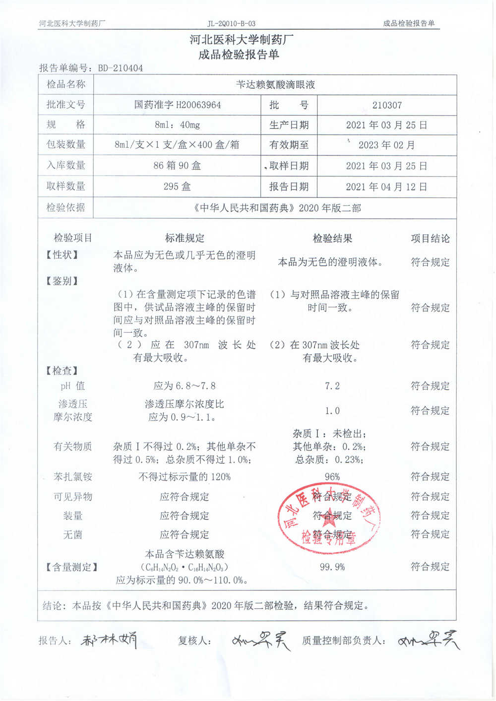 | 苄达赖氨酸滴眼液 | 8ml:40mg*1支 | 210404 | 查看详情 |