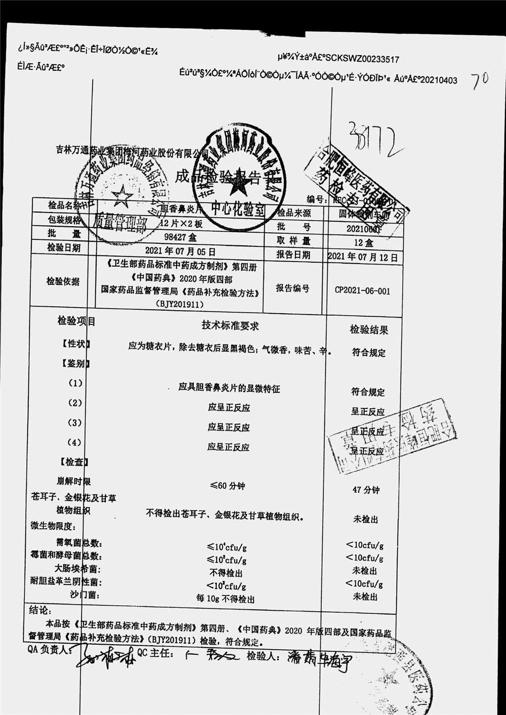 | 胆香鼻炎片 | 12*2 | 20210203 | 查看详情 |