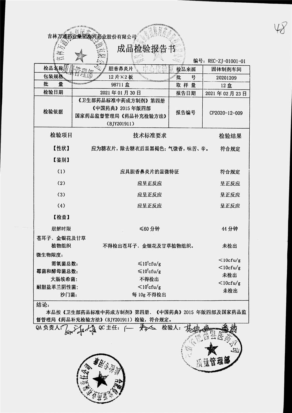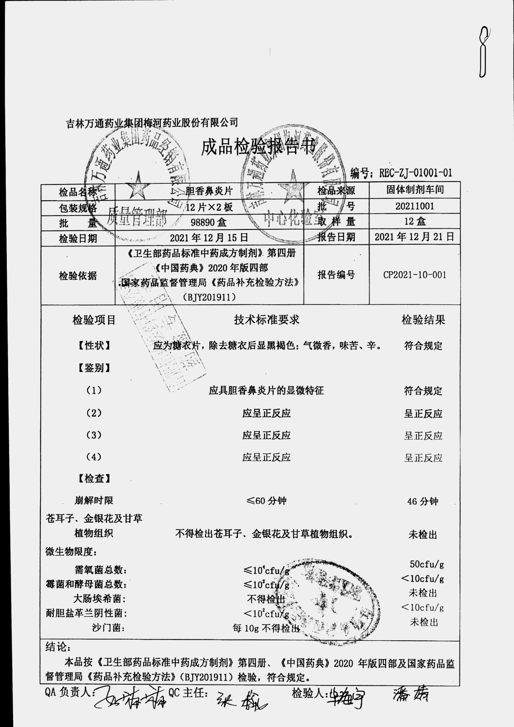 | 胆香鼻炎片 | 12*2 | 20201209 | 查看详情 |
