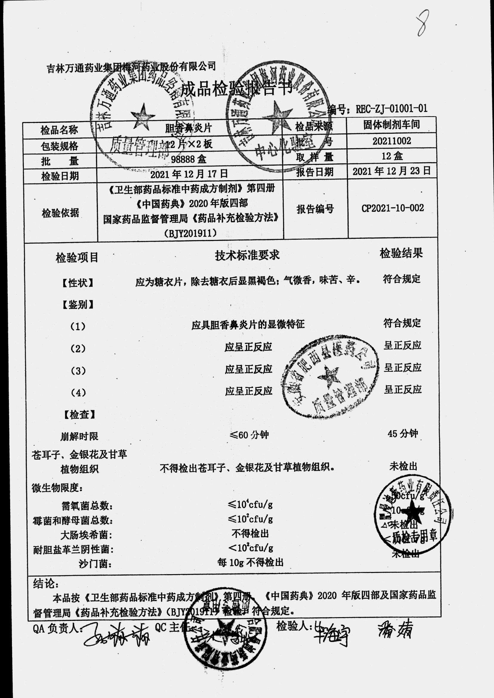 | 胆香鼻炎片 | 12*2 | 20211002 | 查看详情 |