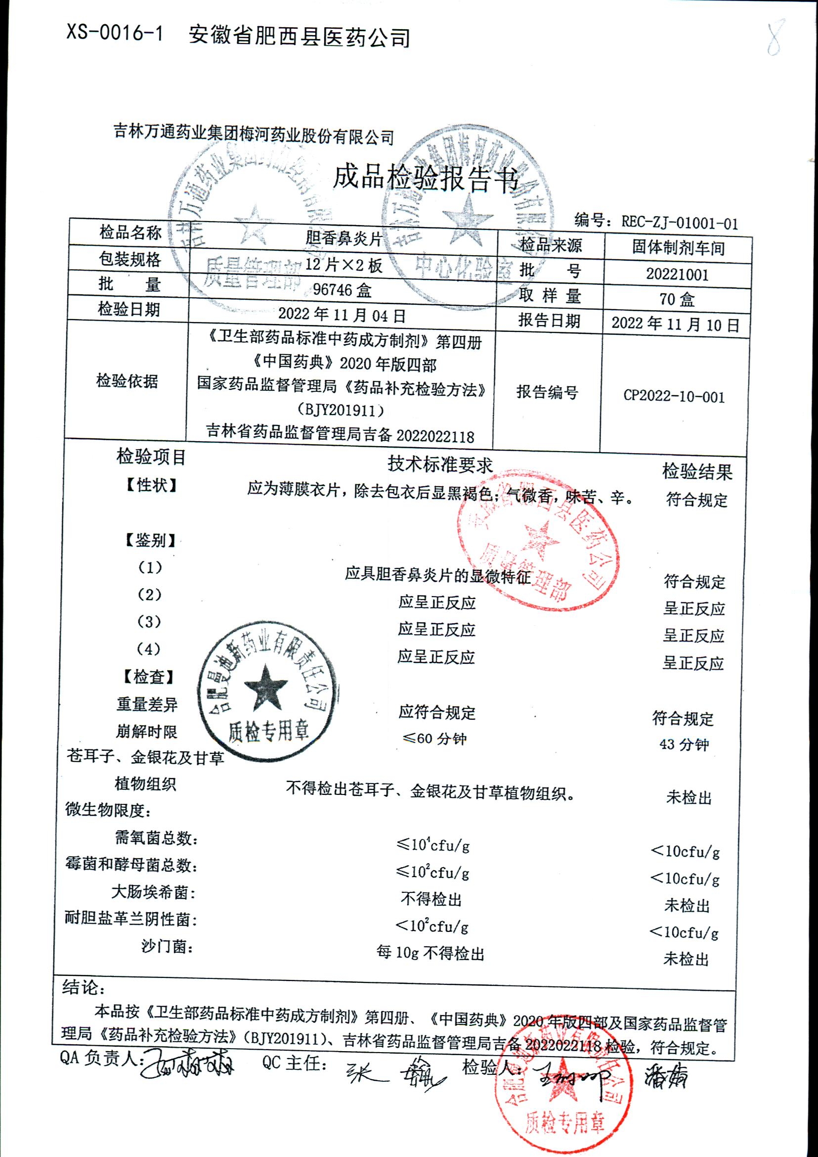 | 胆香鼻炎片 | 12*2 | 20221001 | 查看详情 |