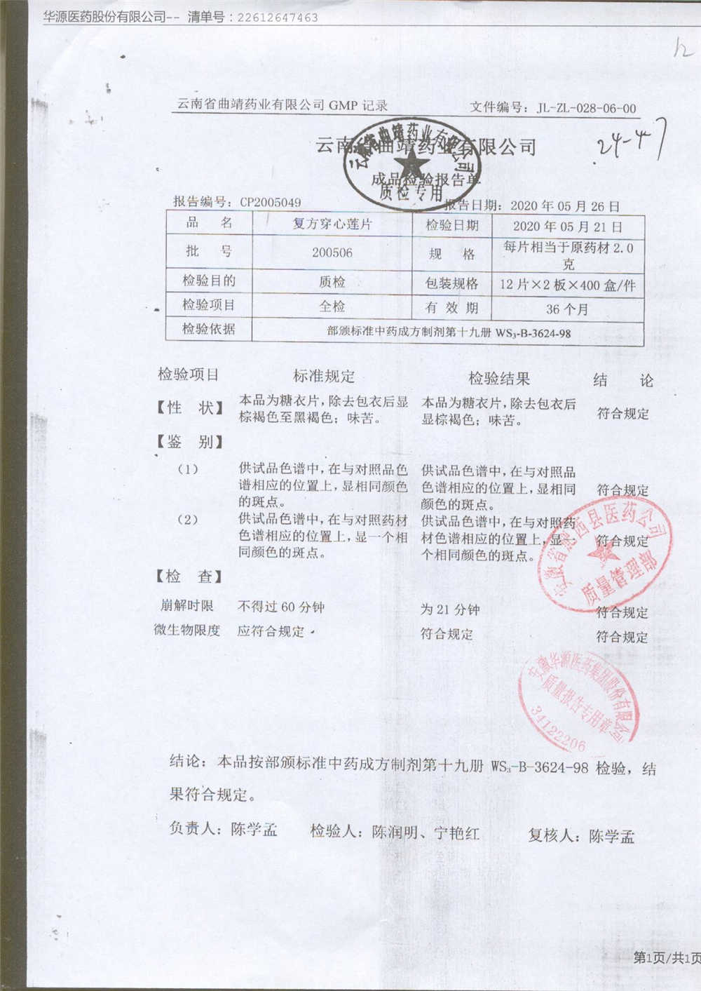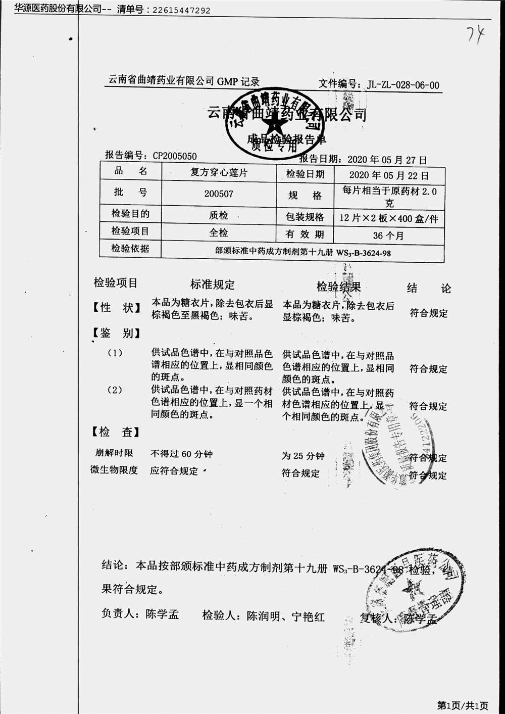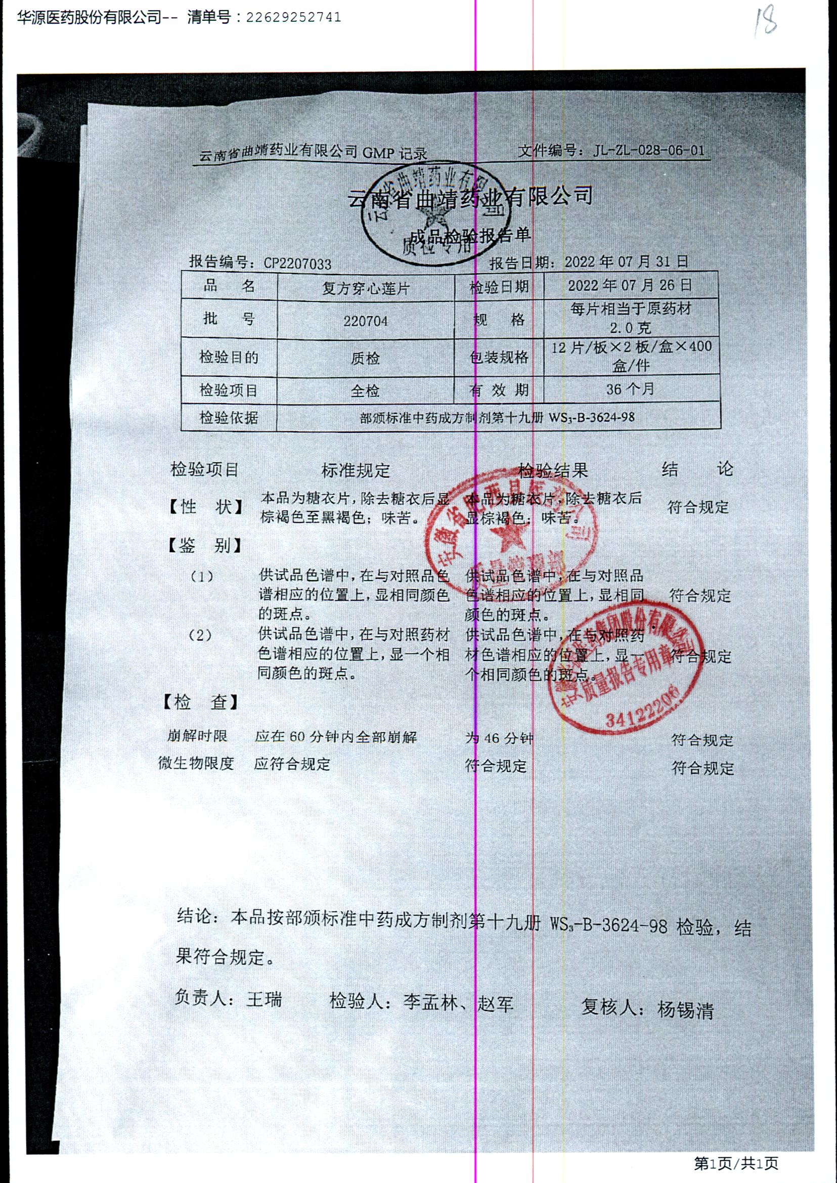 药检报告