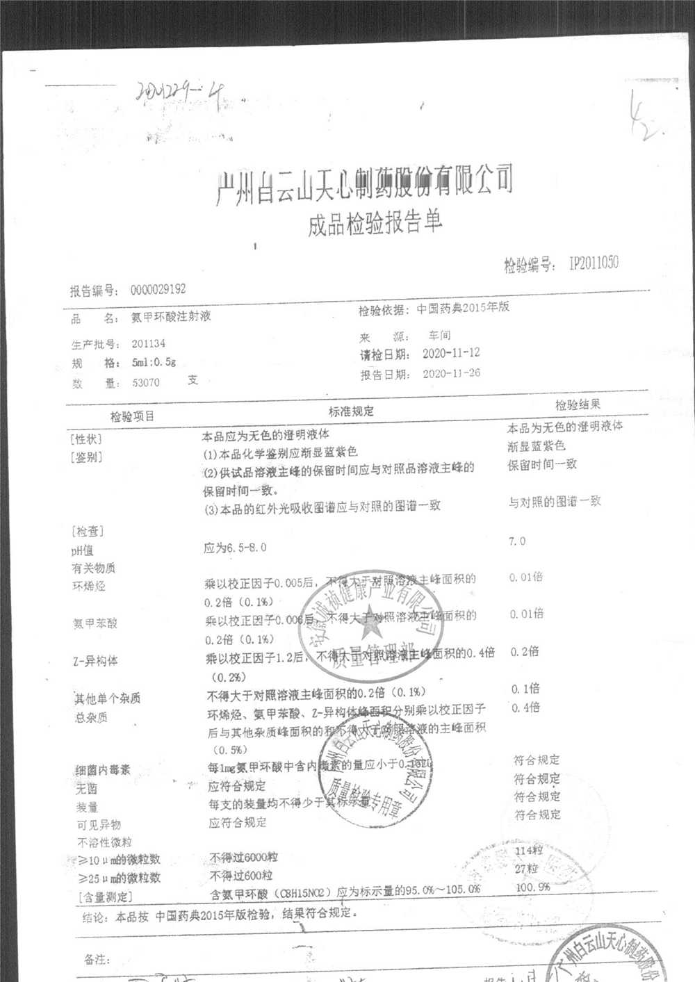 | 氨甲环酸注射液 | 5ml:0.5g*5支 | 201134 | 查看详情 |