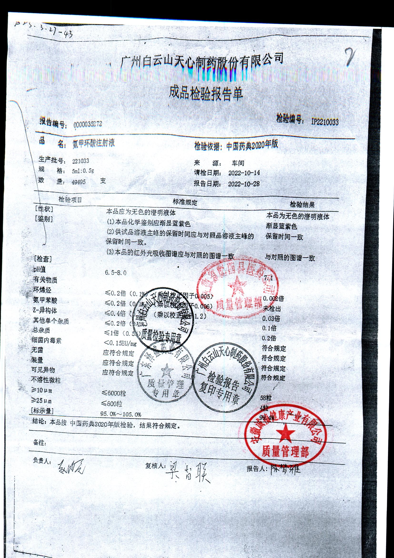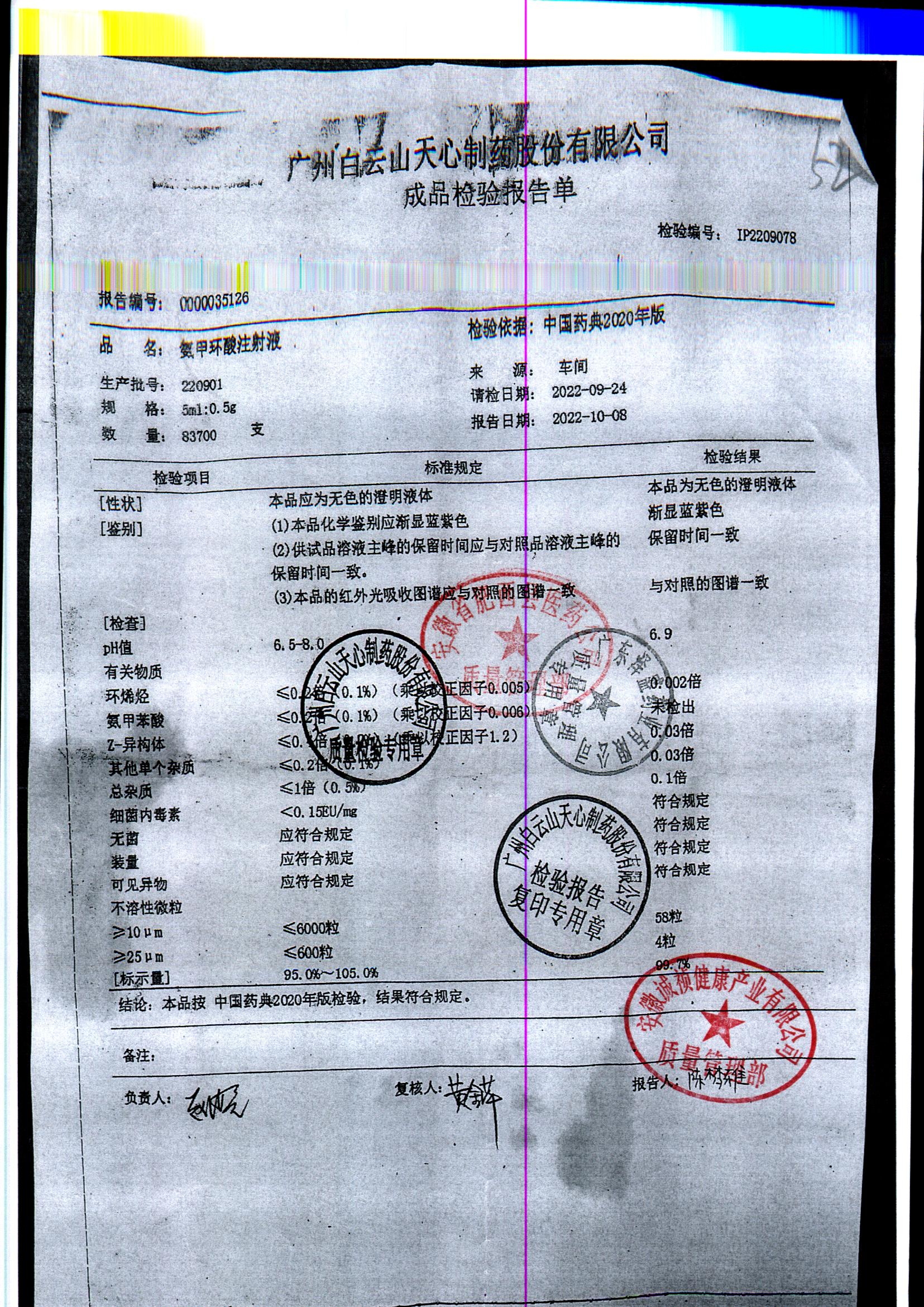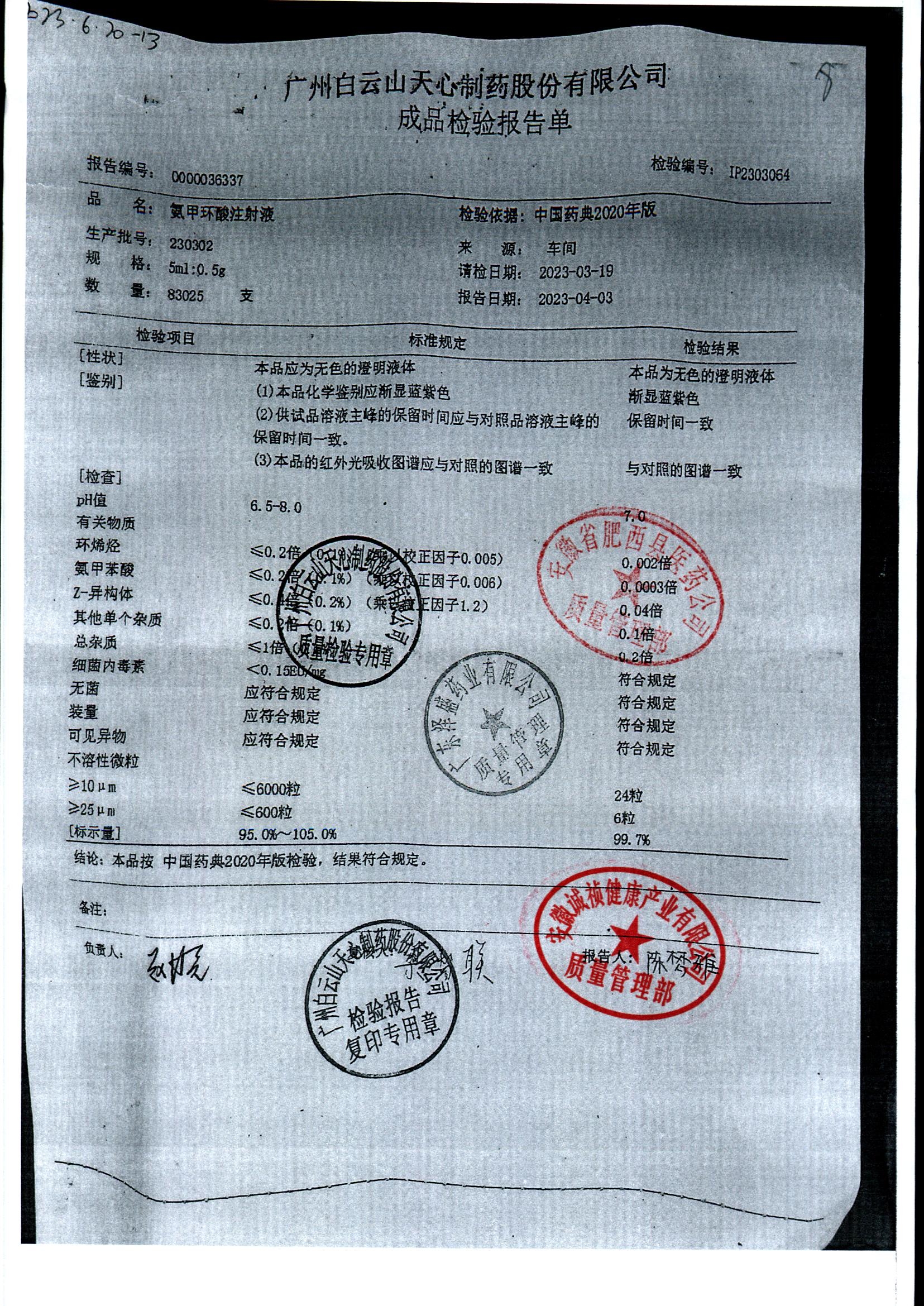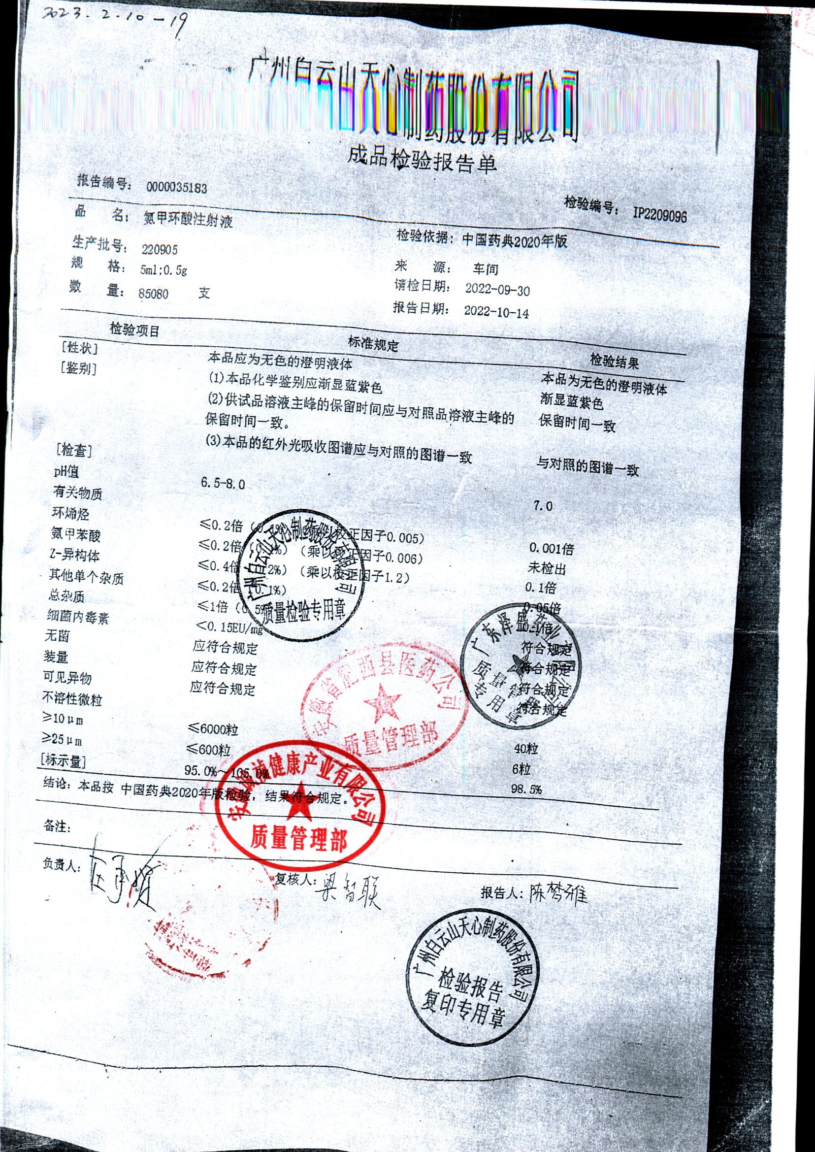 | 氨甲环酸注射液 | 5ml:0.5g*5支 | 220905 | 查看详情 |