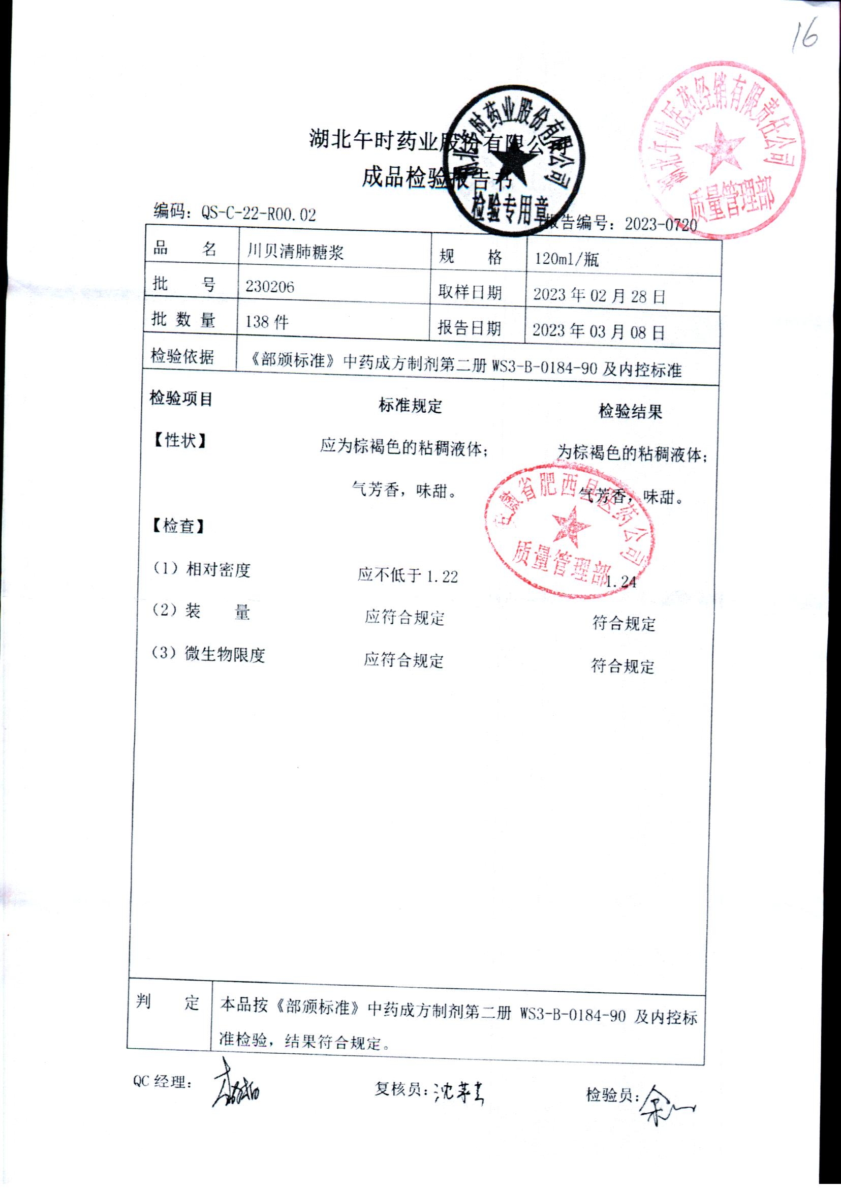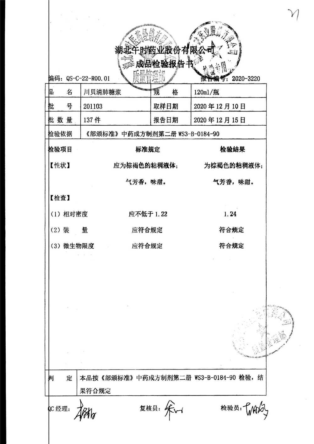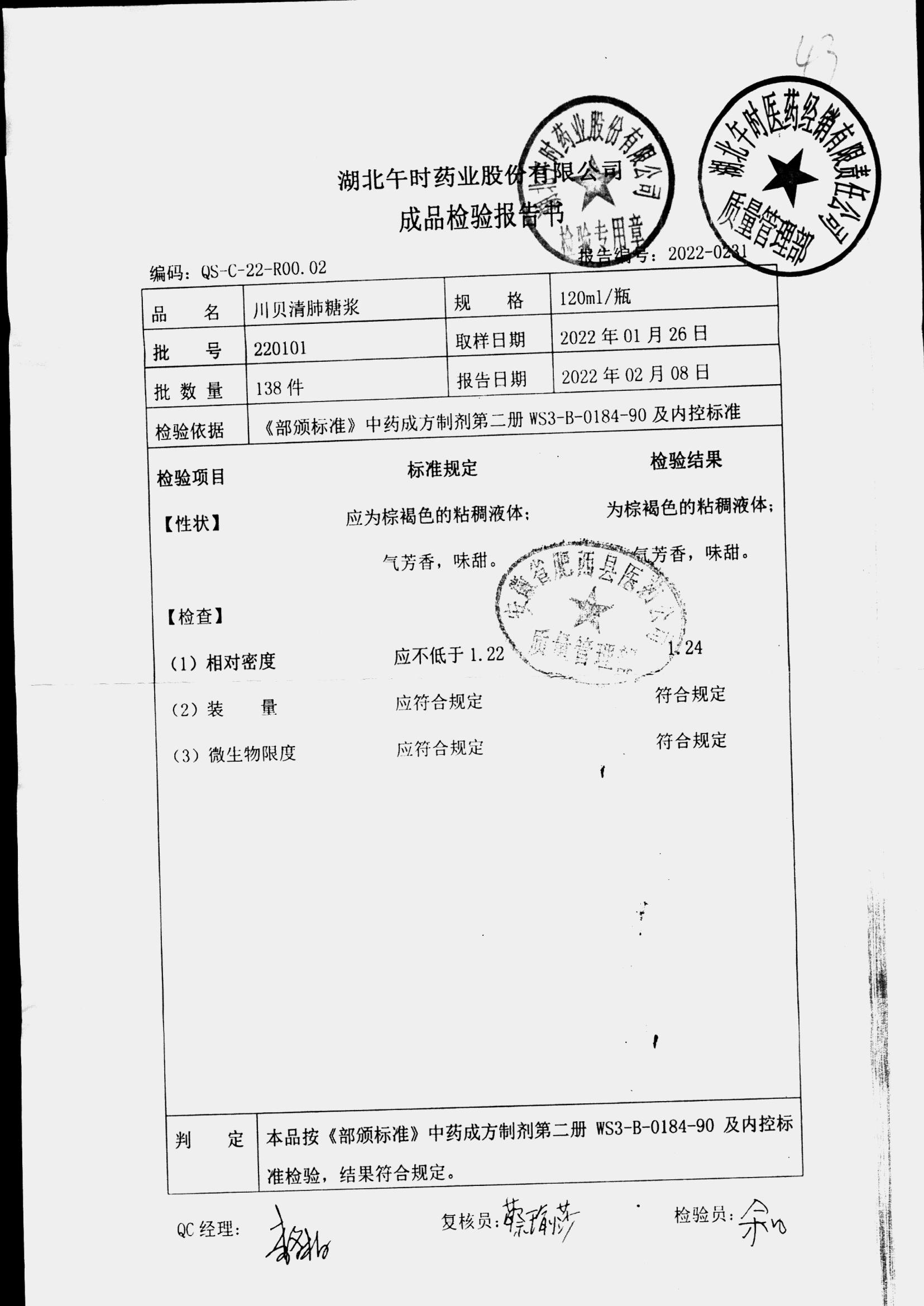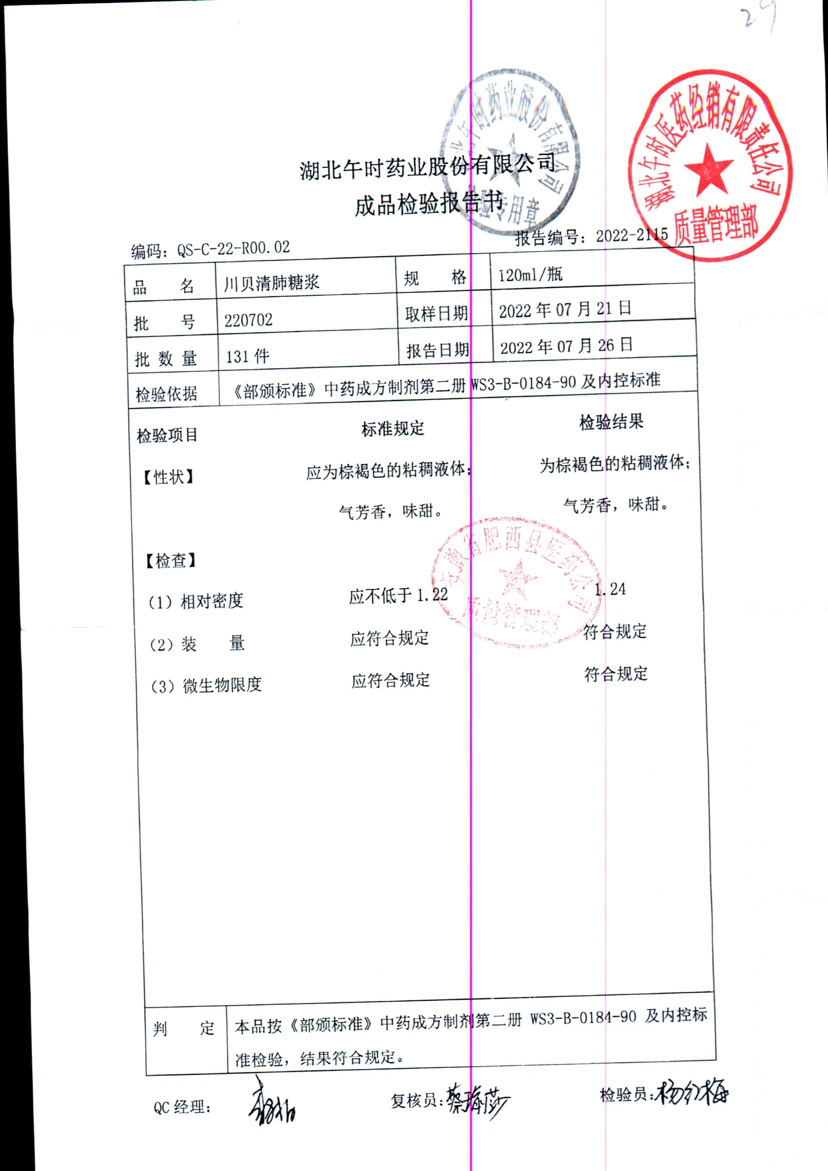| 川贝清肺糖浆 | 120ml | 220401 | 查看详情 |
