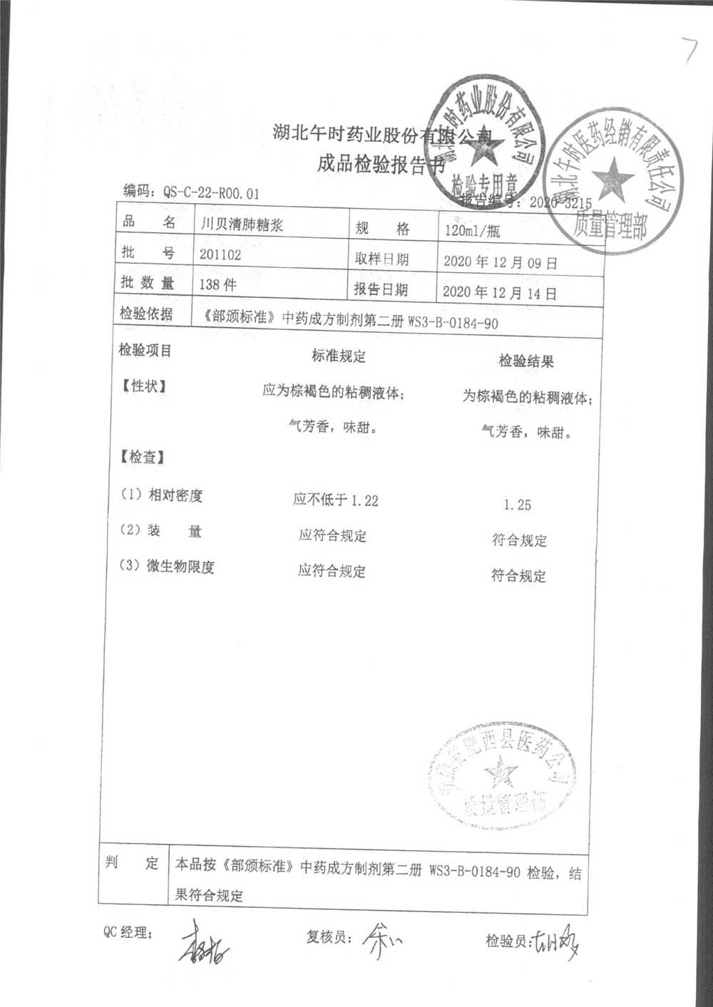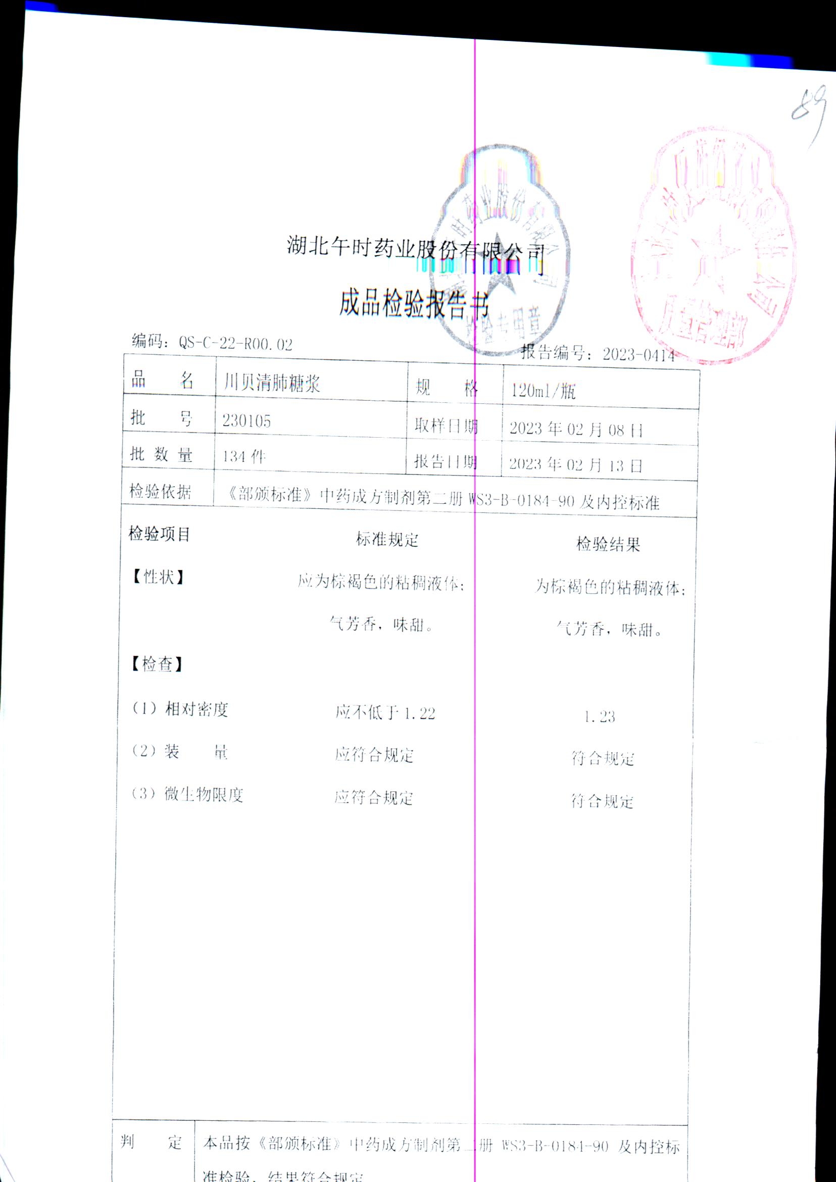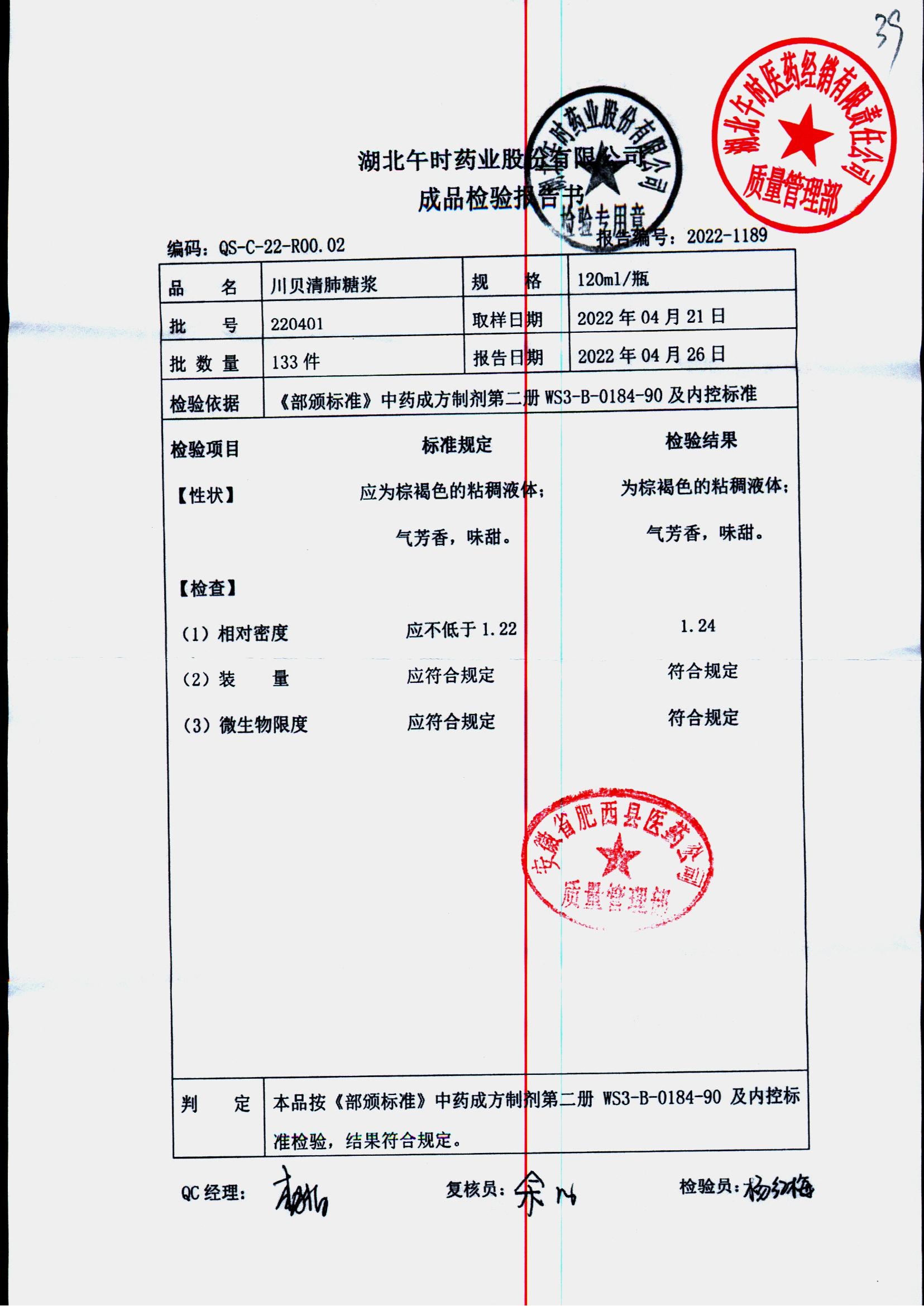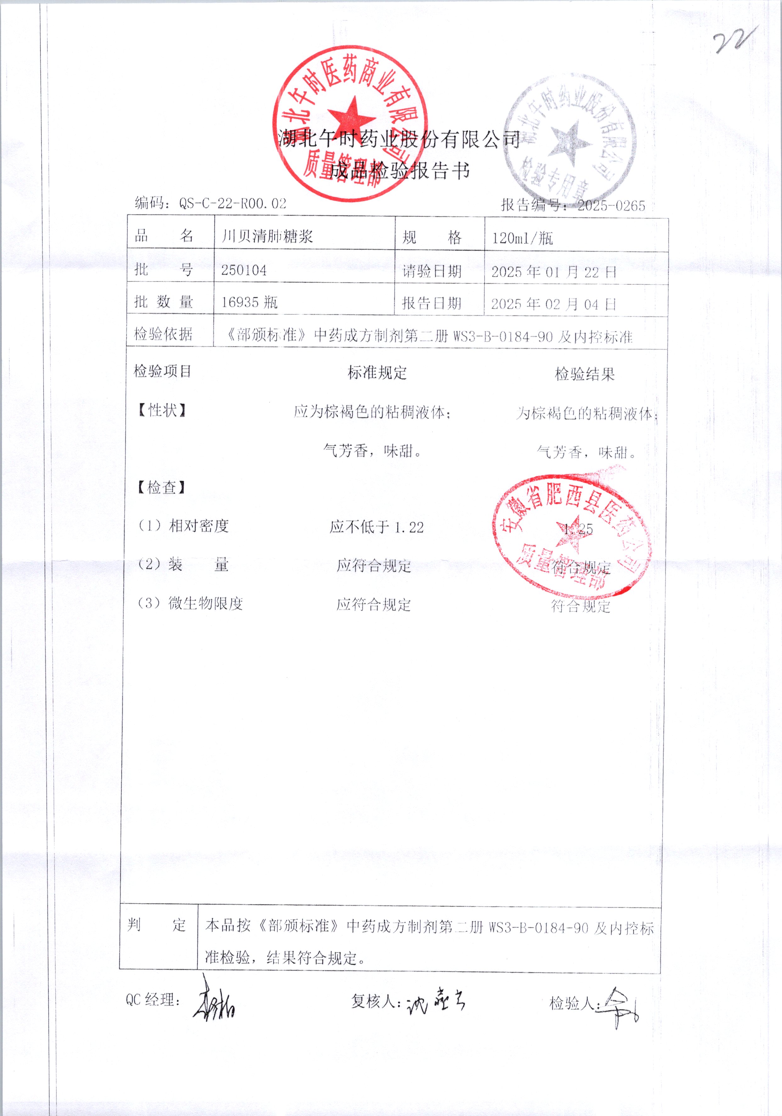 | 川贝清肺糖浆 | 120ml | 220401 | 查看详情 |