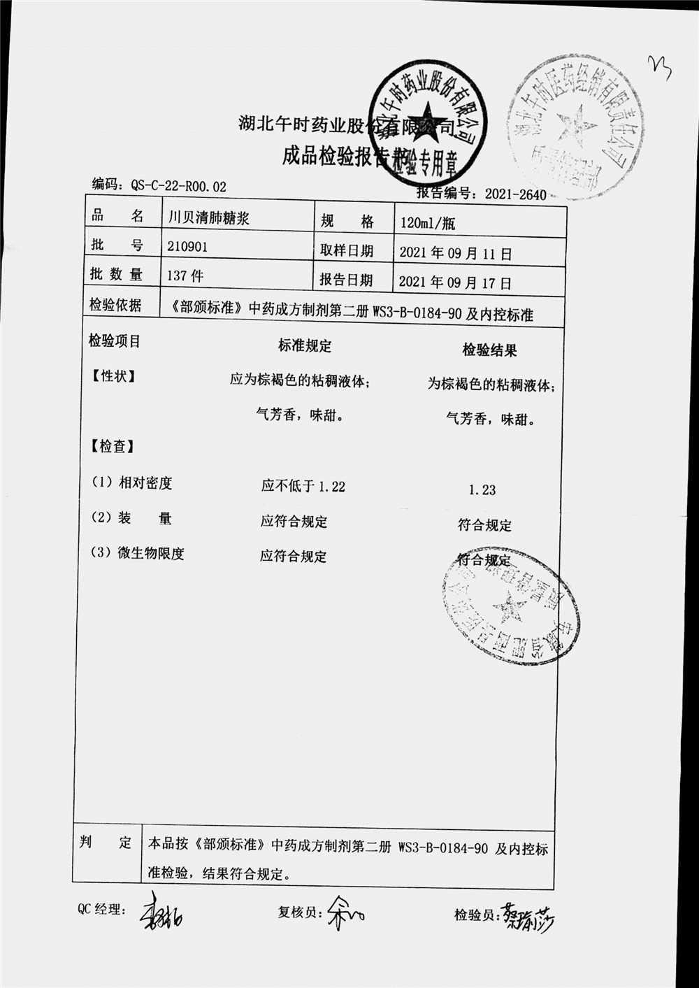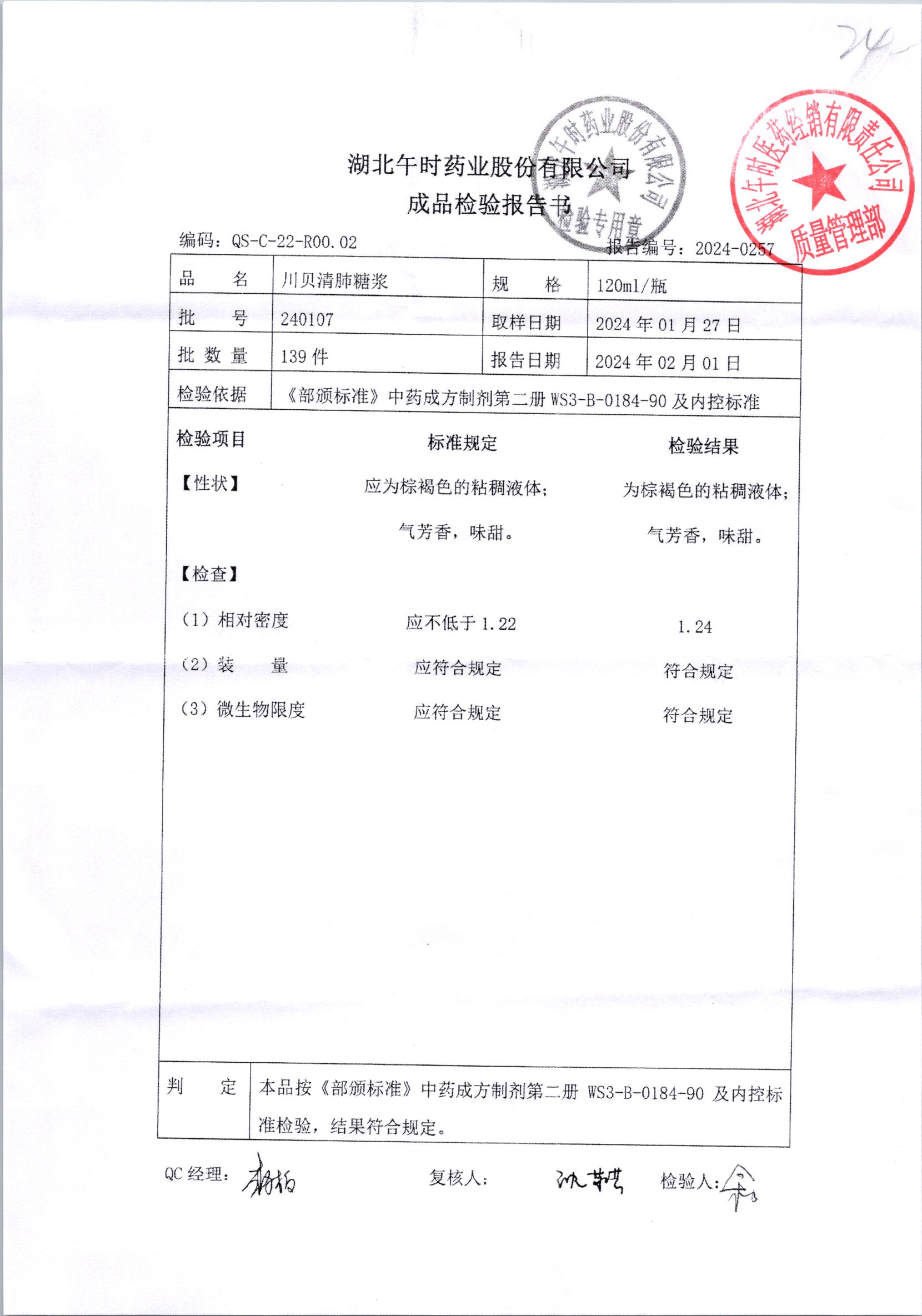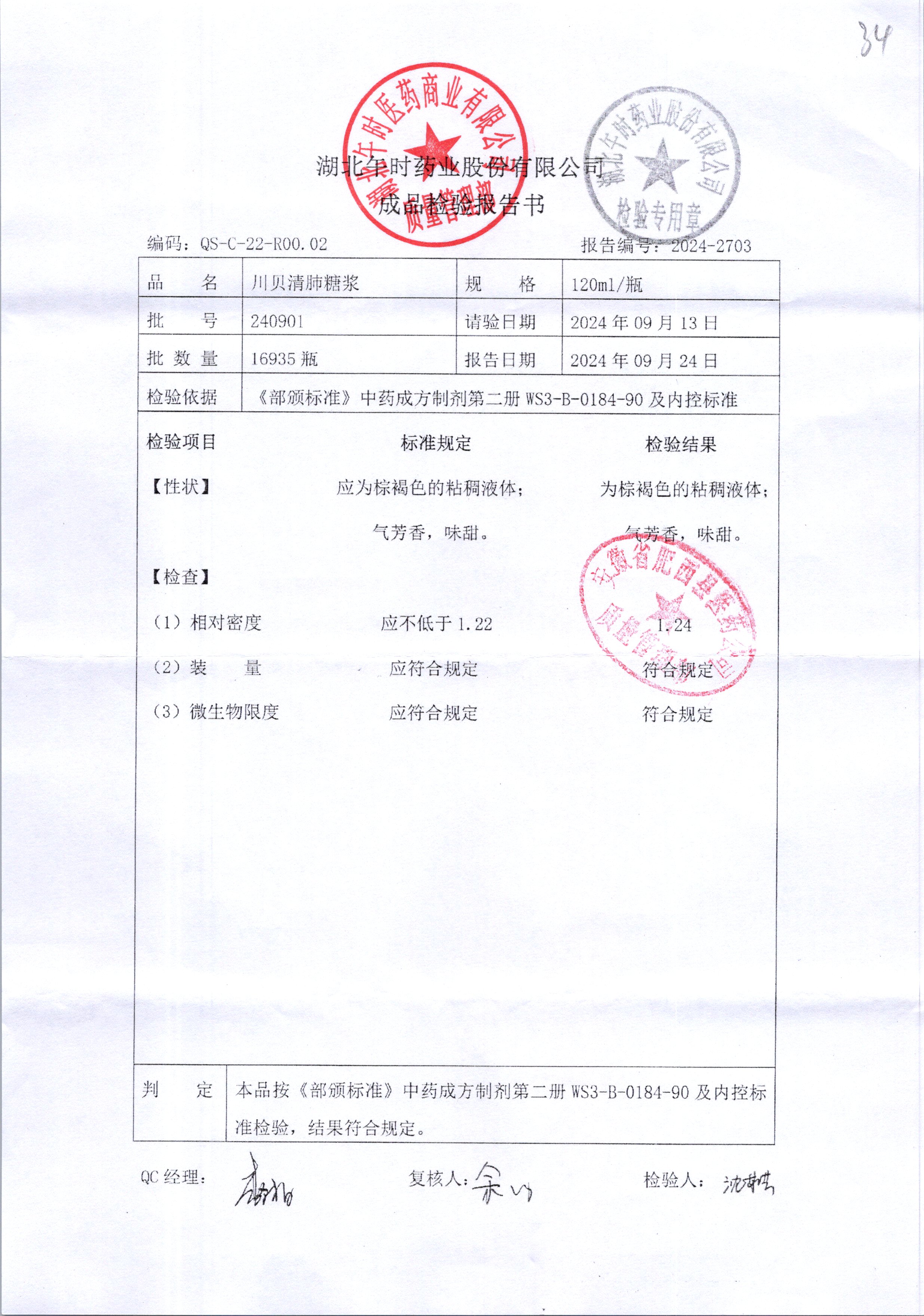 | 川贝清肺糖浆 | 120ml | 240901 | 查看详情 |