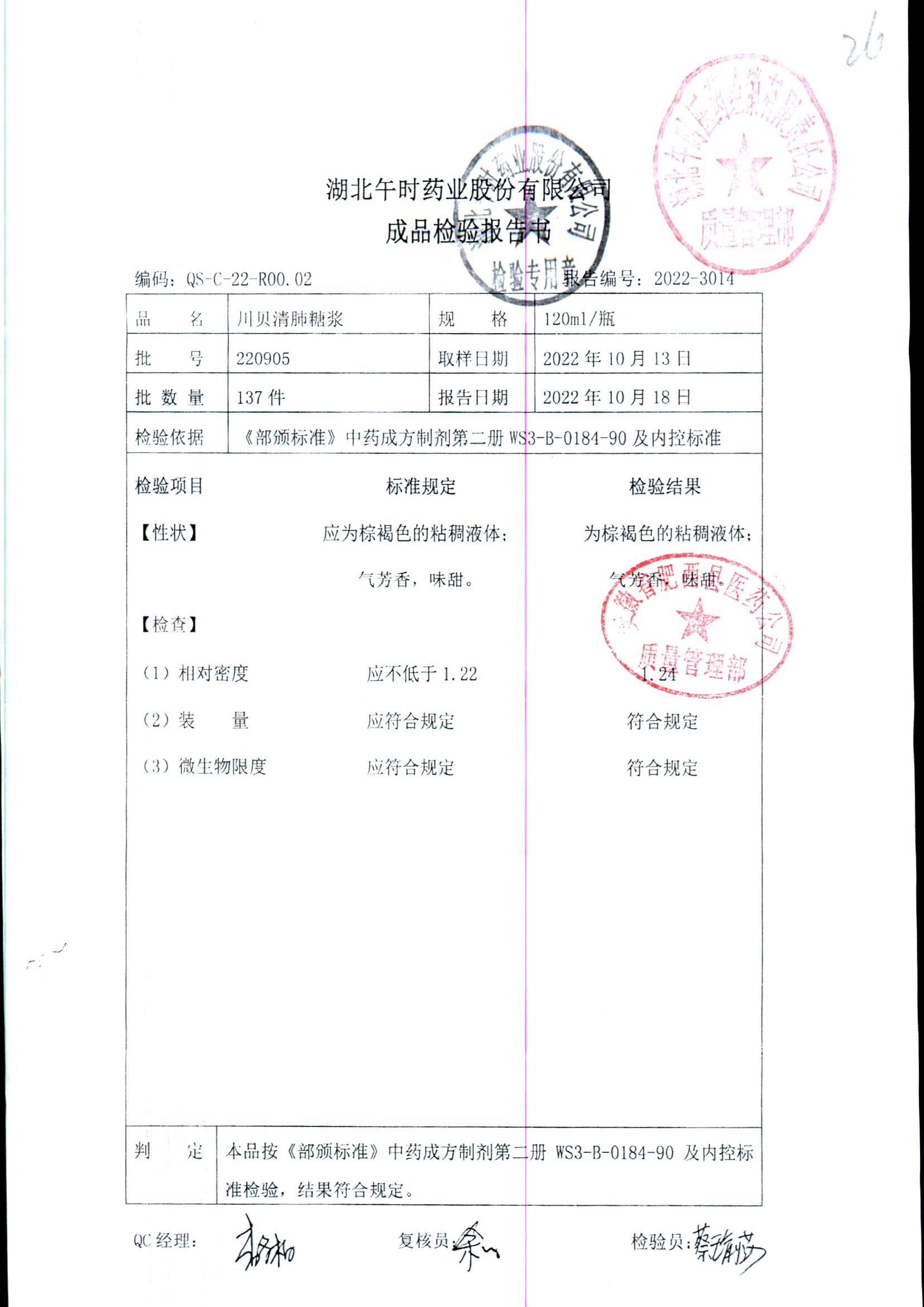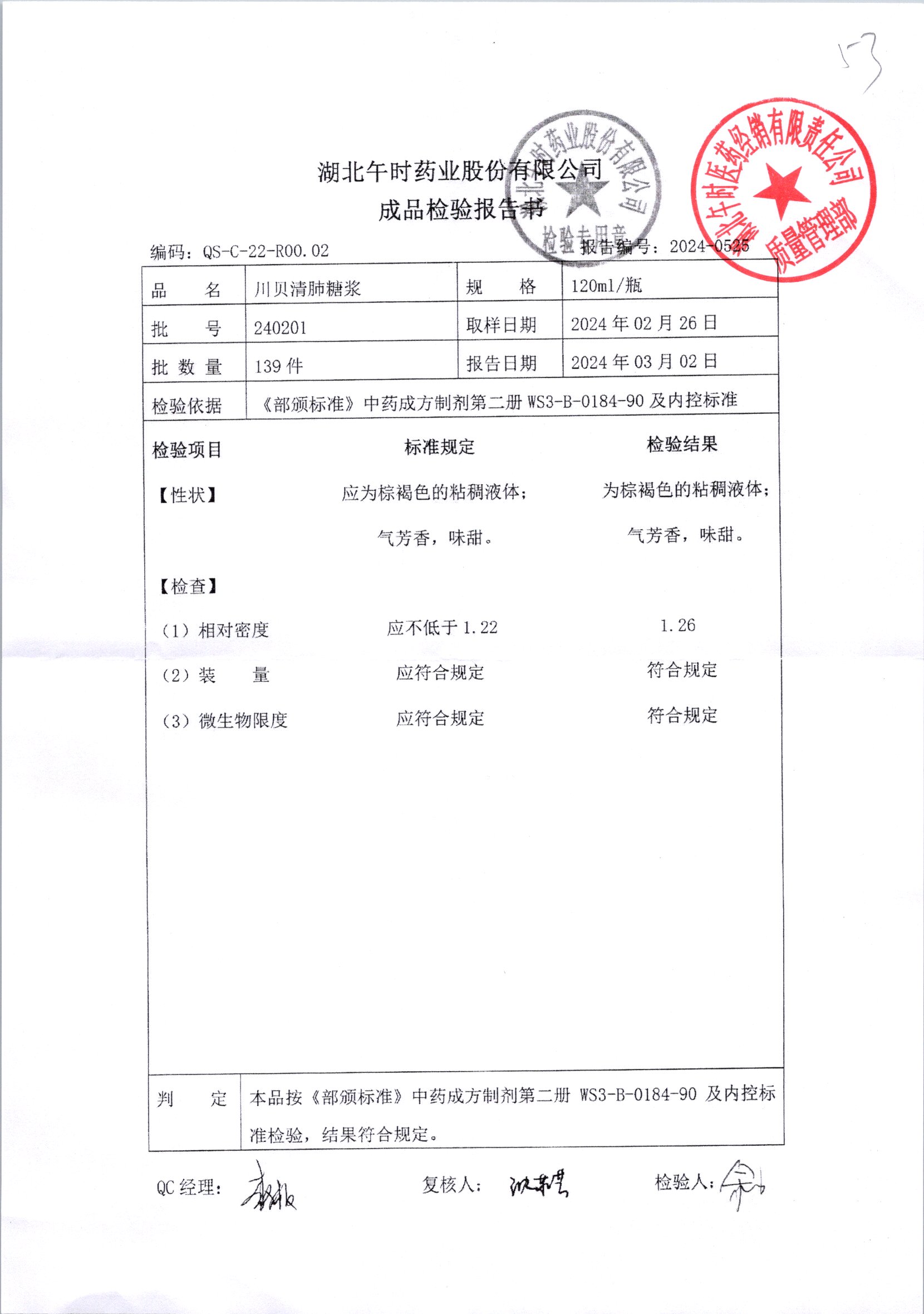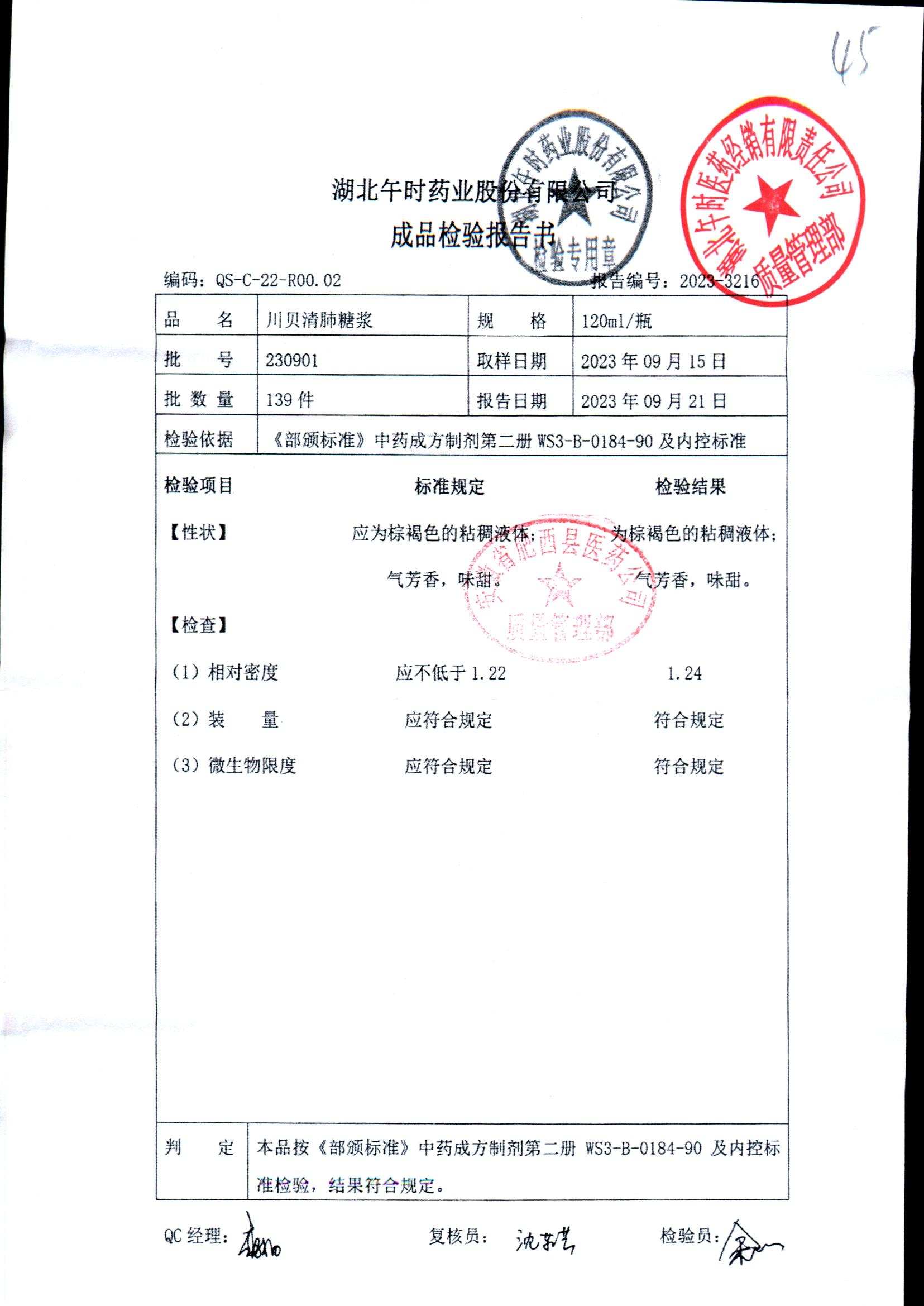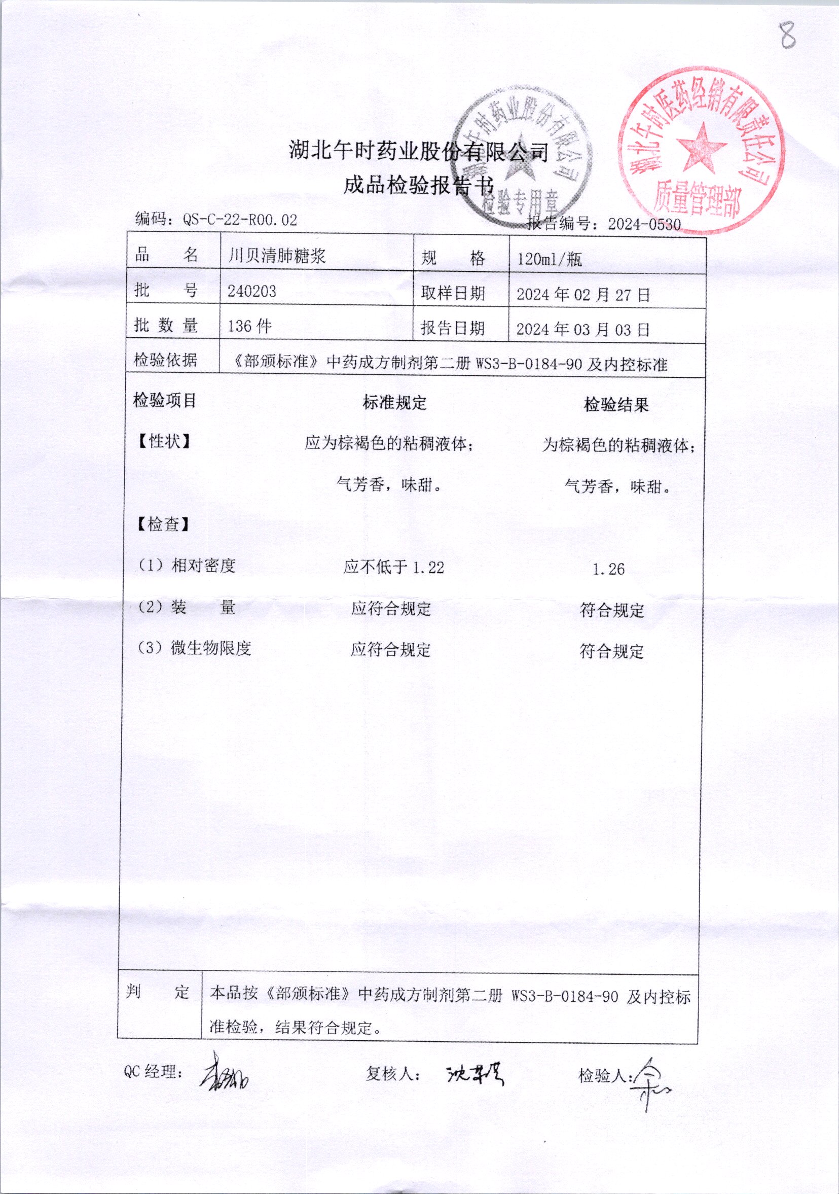 | 川贝清肺糖浆 | 120ml | 240901 | 查看详情 |