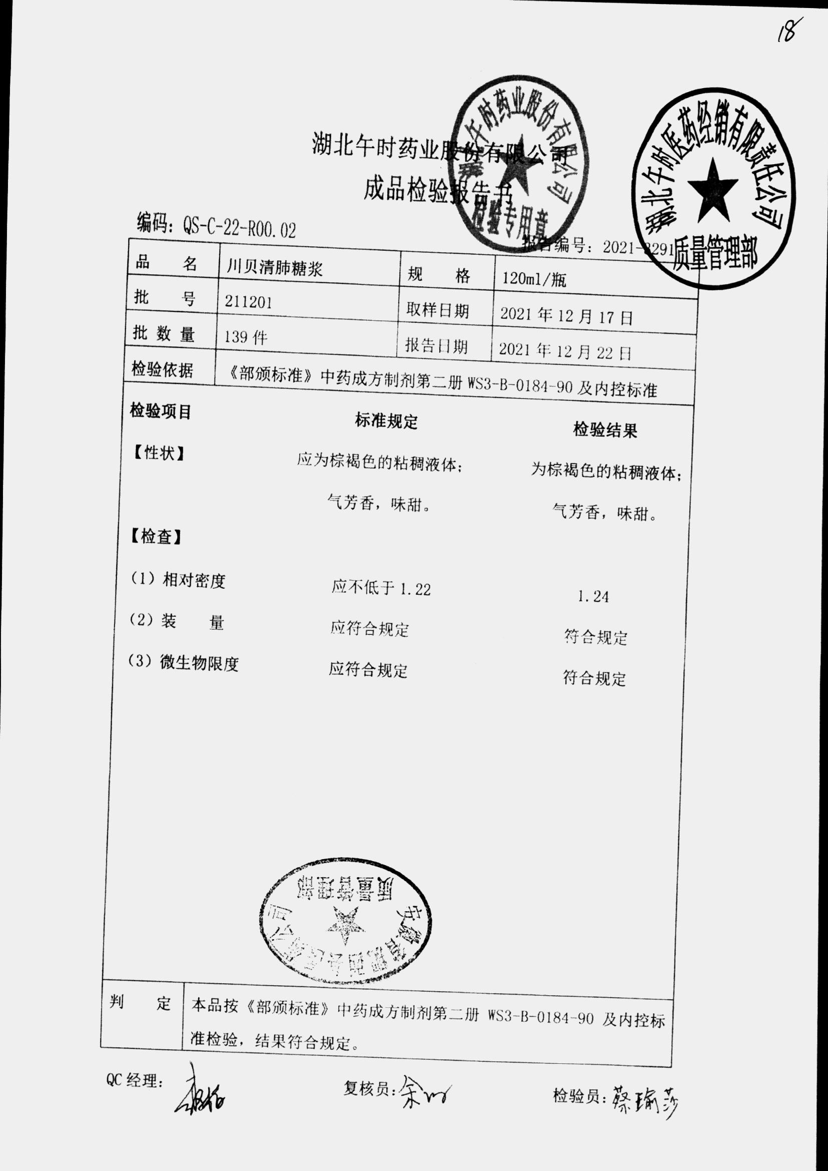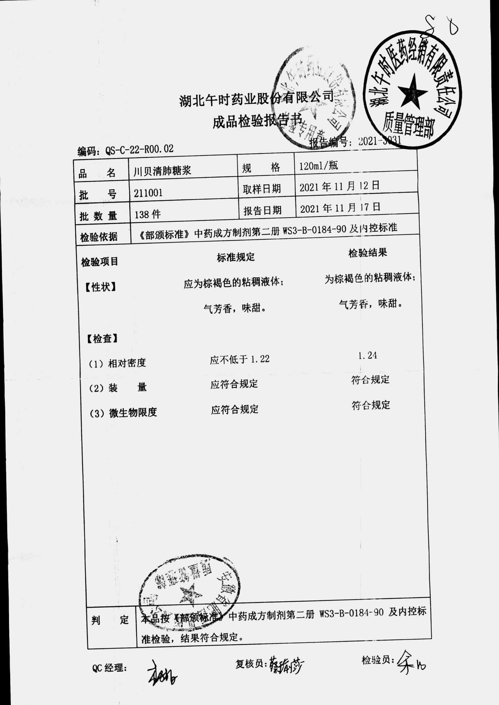 | 川贝清肺糖浆 | 120ml | 211201 | 查看详情 |