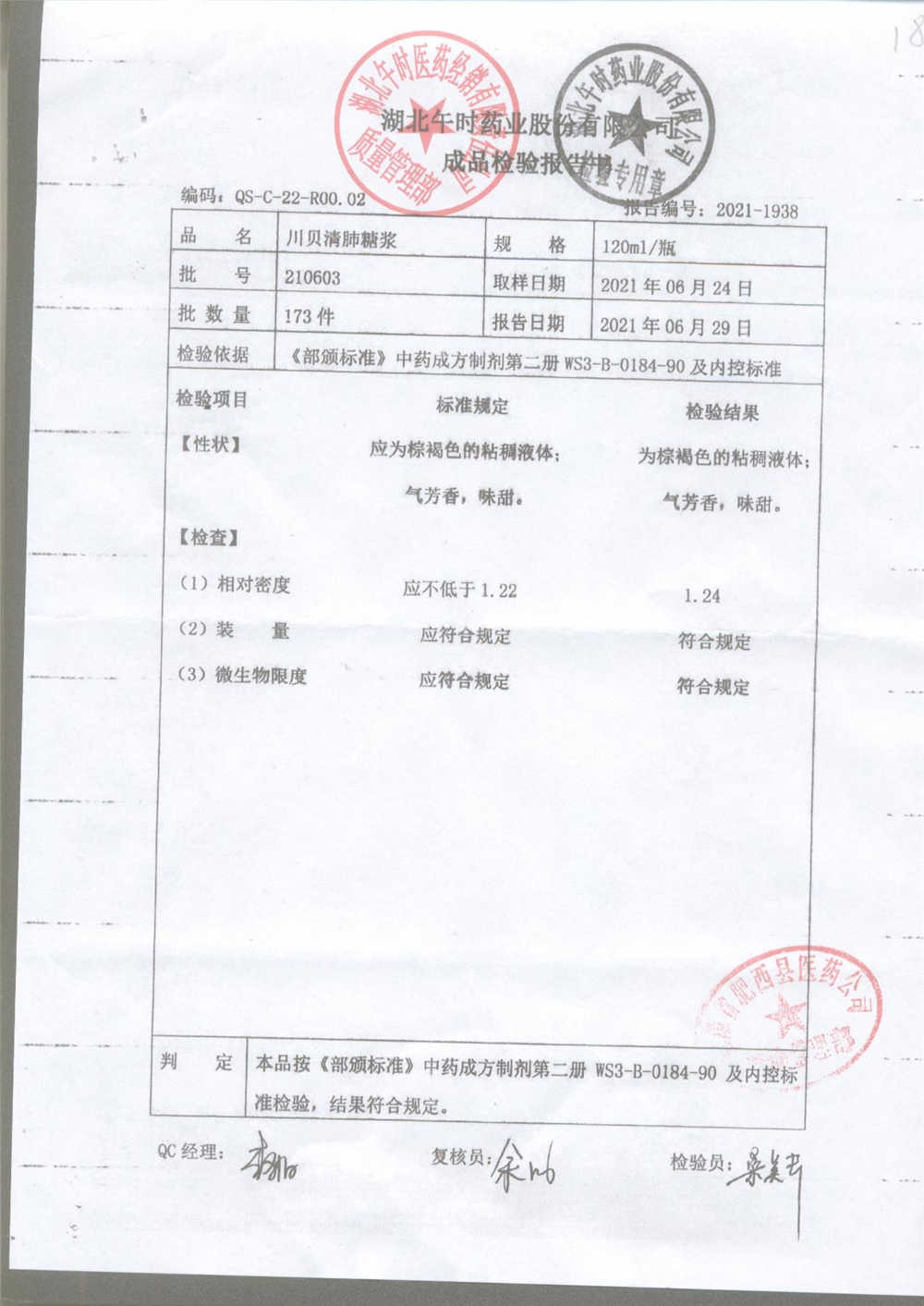 | 川贝清肺糖浆 | 120ml | 210901 | 查看详情 |