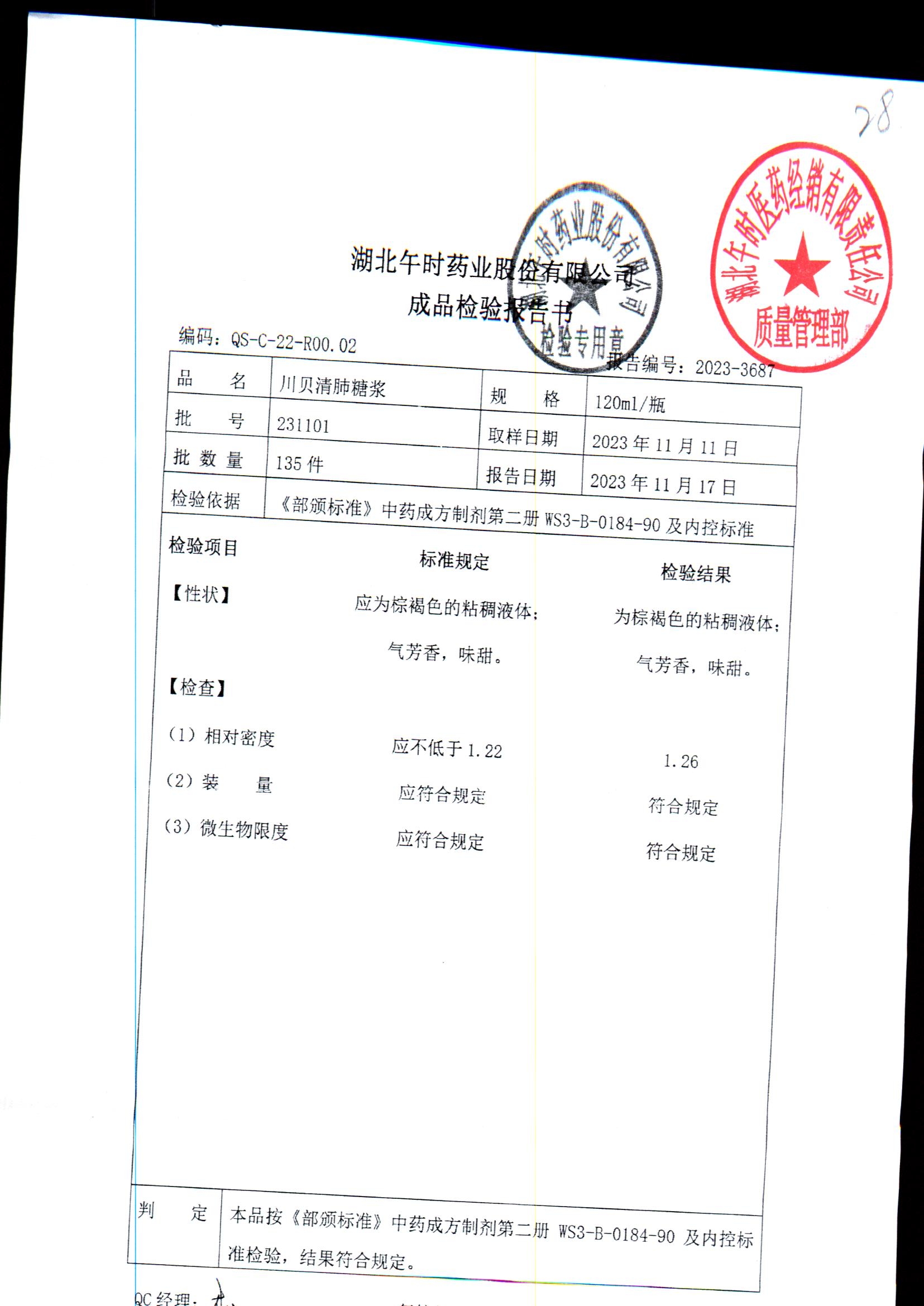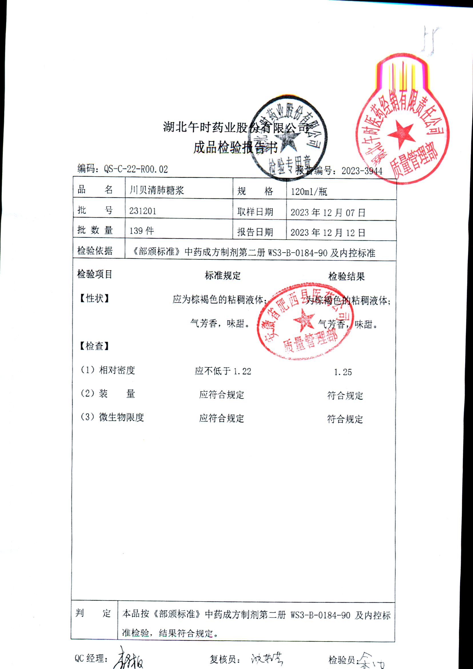 | 川贝清肺糖浆 | 120ml | 231201 | 查看详情 |