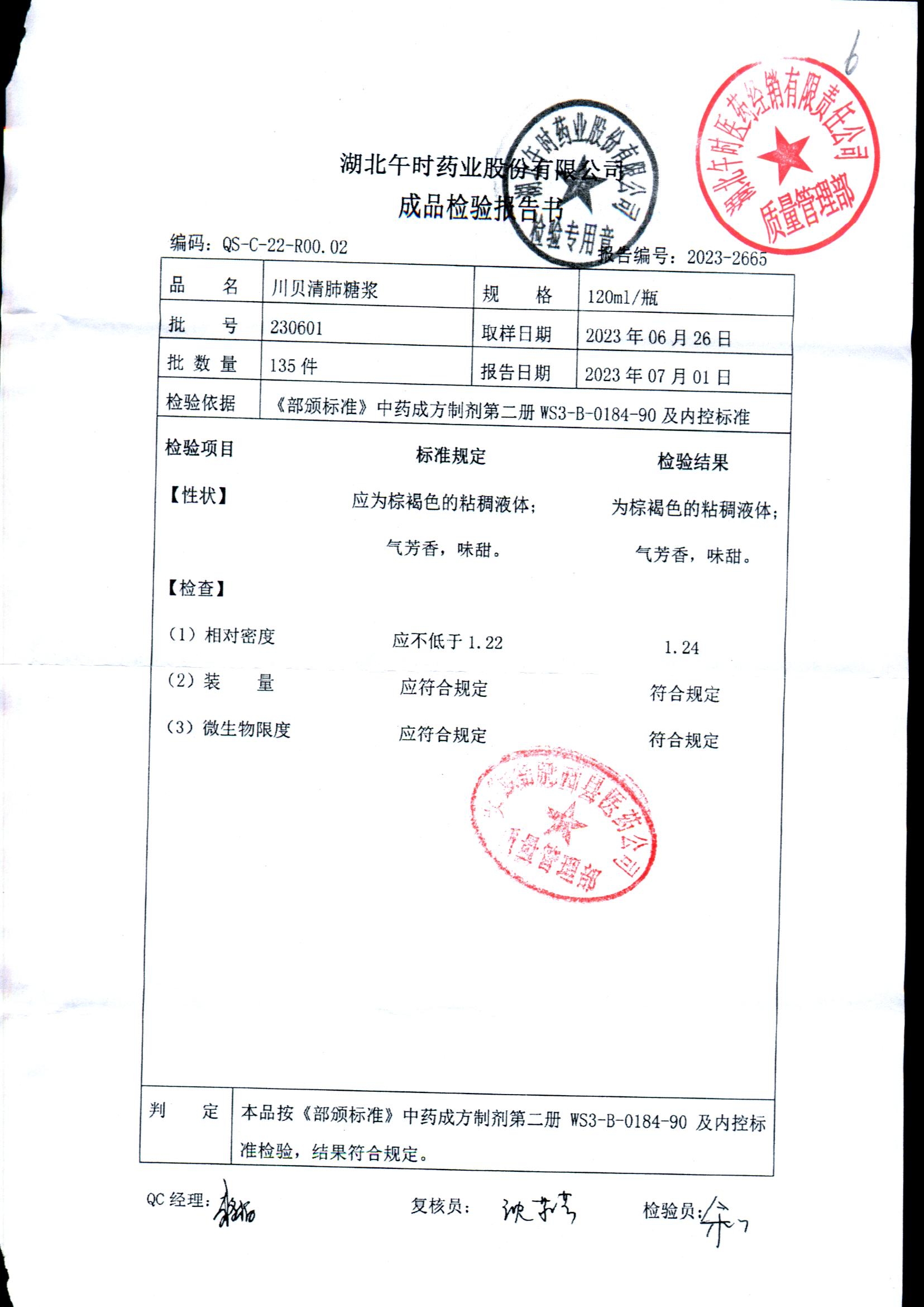 | 川贝清肺糖浆 | 120ml | 230601 | 查看详情 |