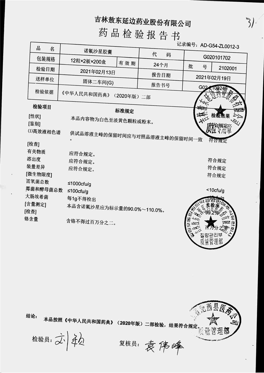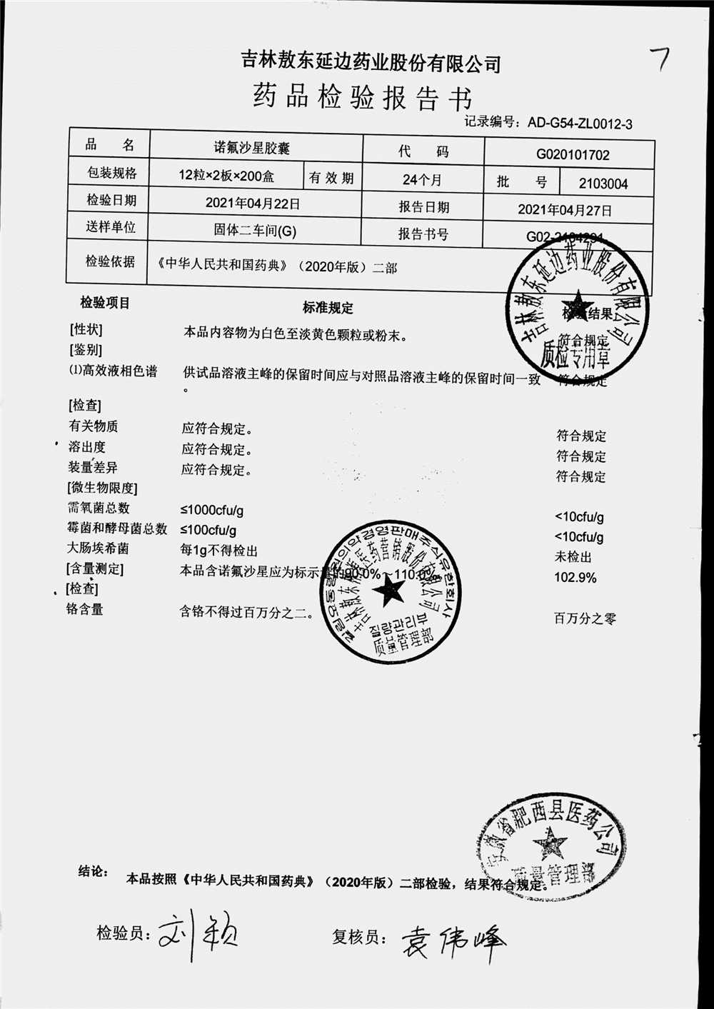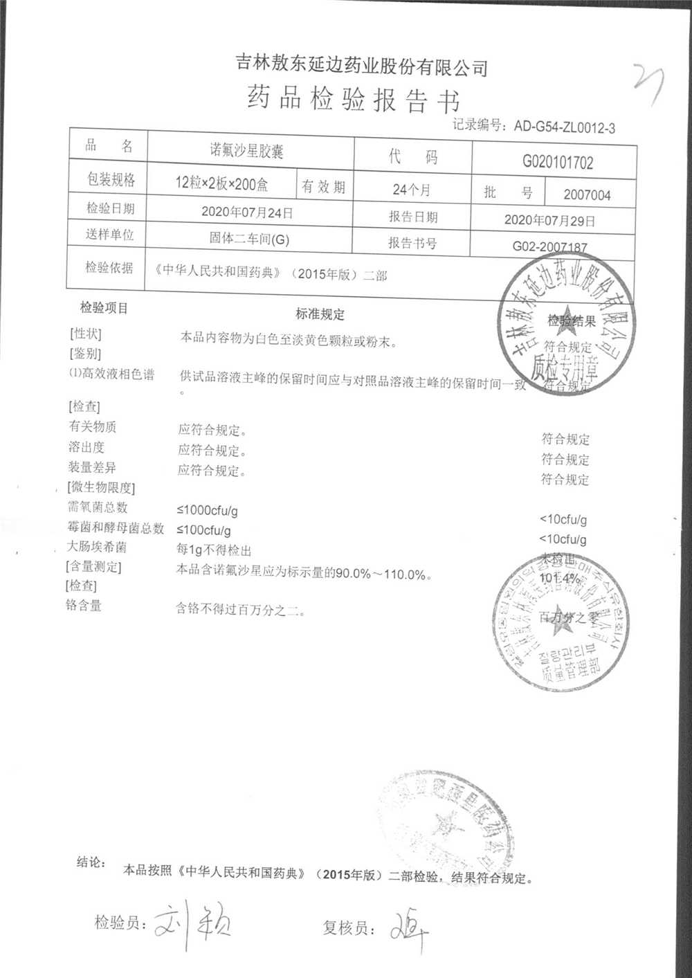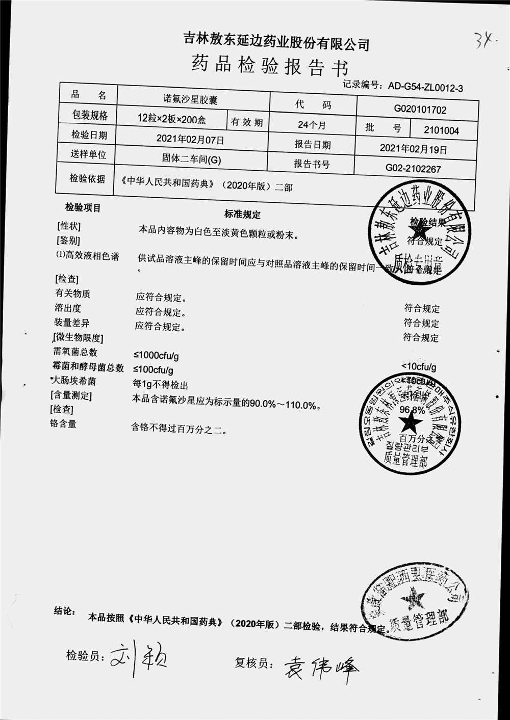 | 诺氟沙星胶囊 | 0.1g*12s*2板 | 2103004 | 查看详情 |