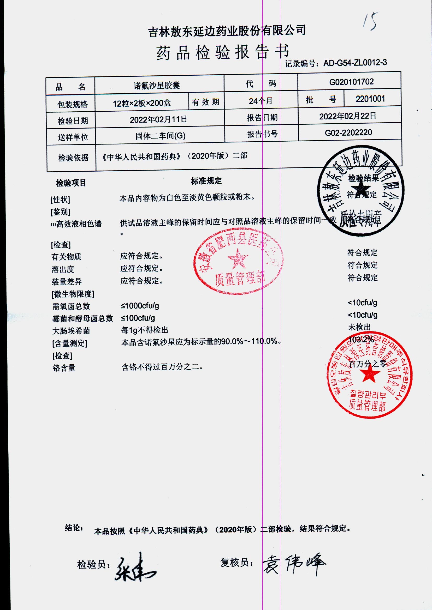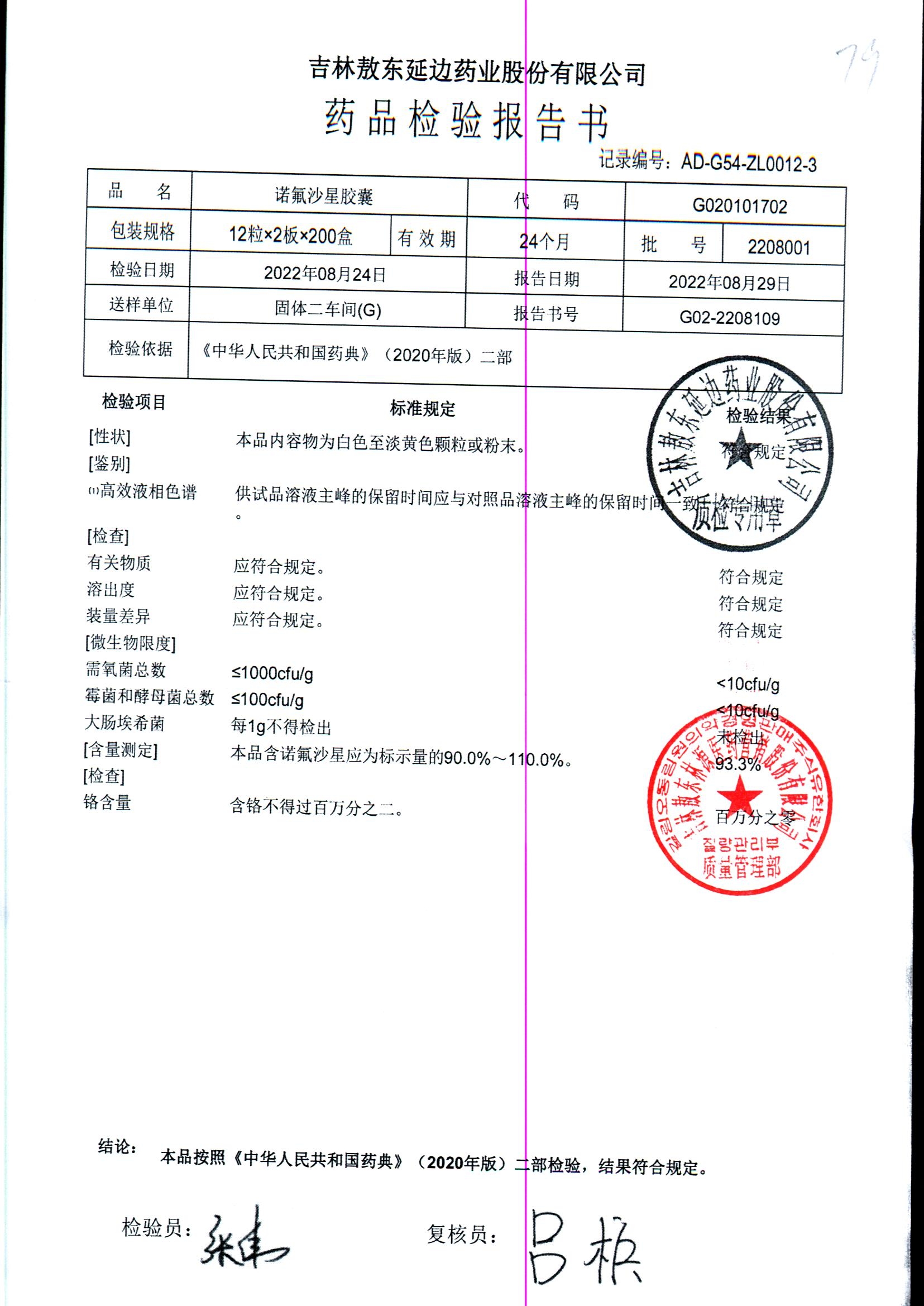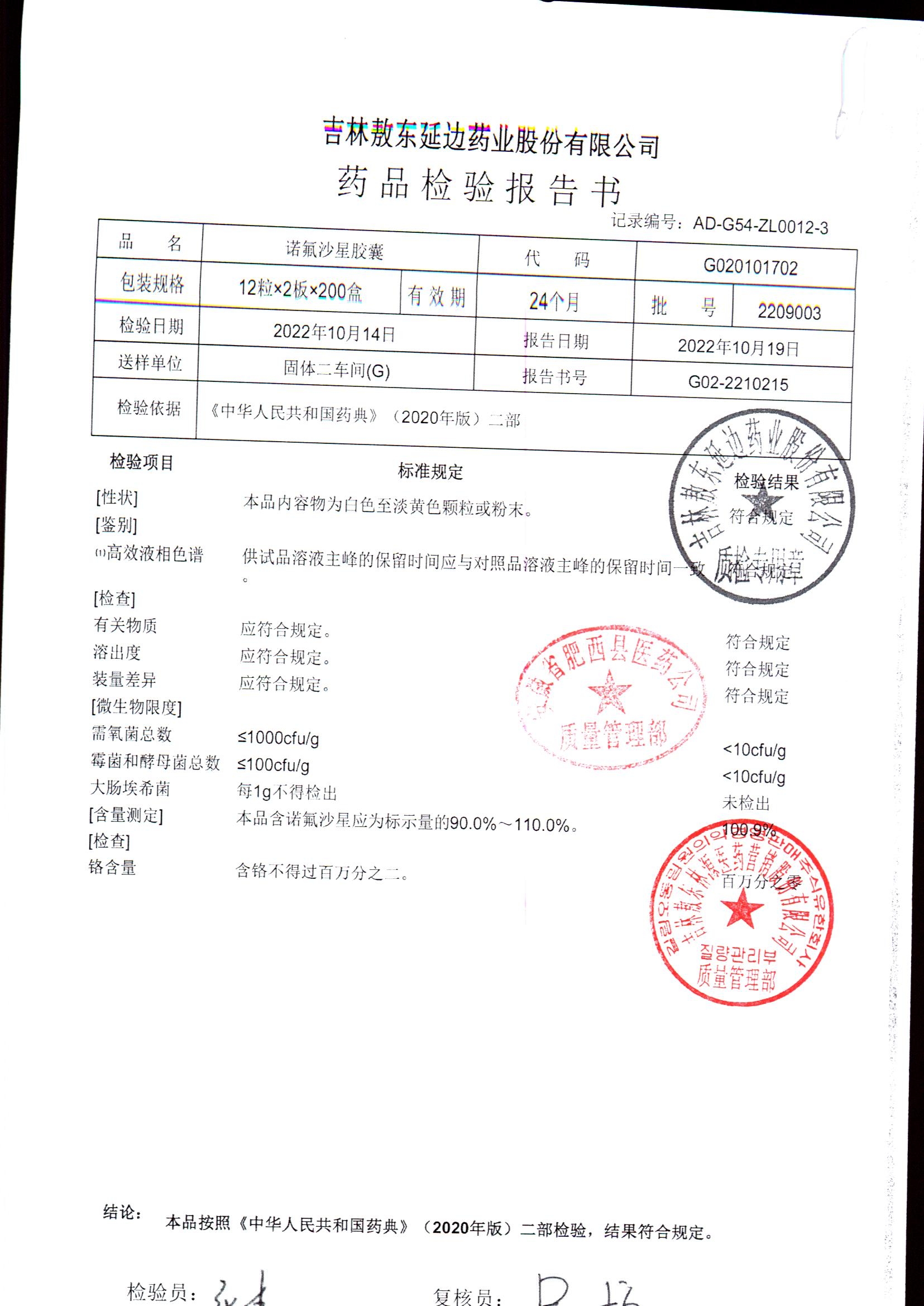 | 诺氟沙星胶囊 | 0.1g*12s*2板 | 2208001 | 查看详情 |