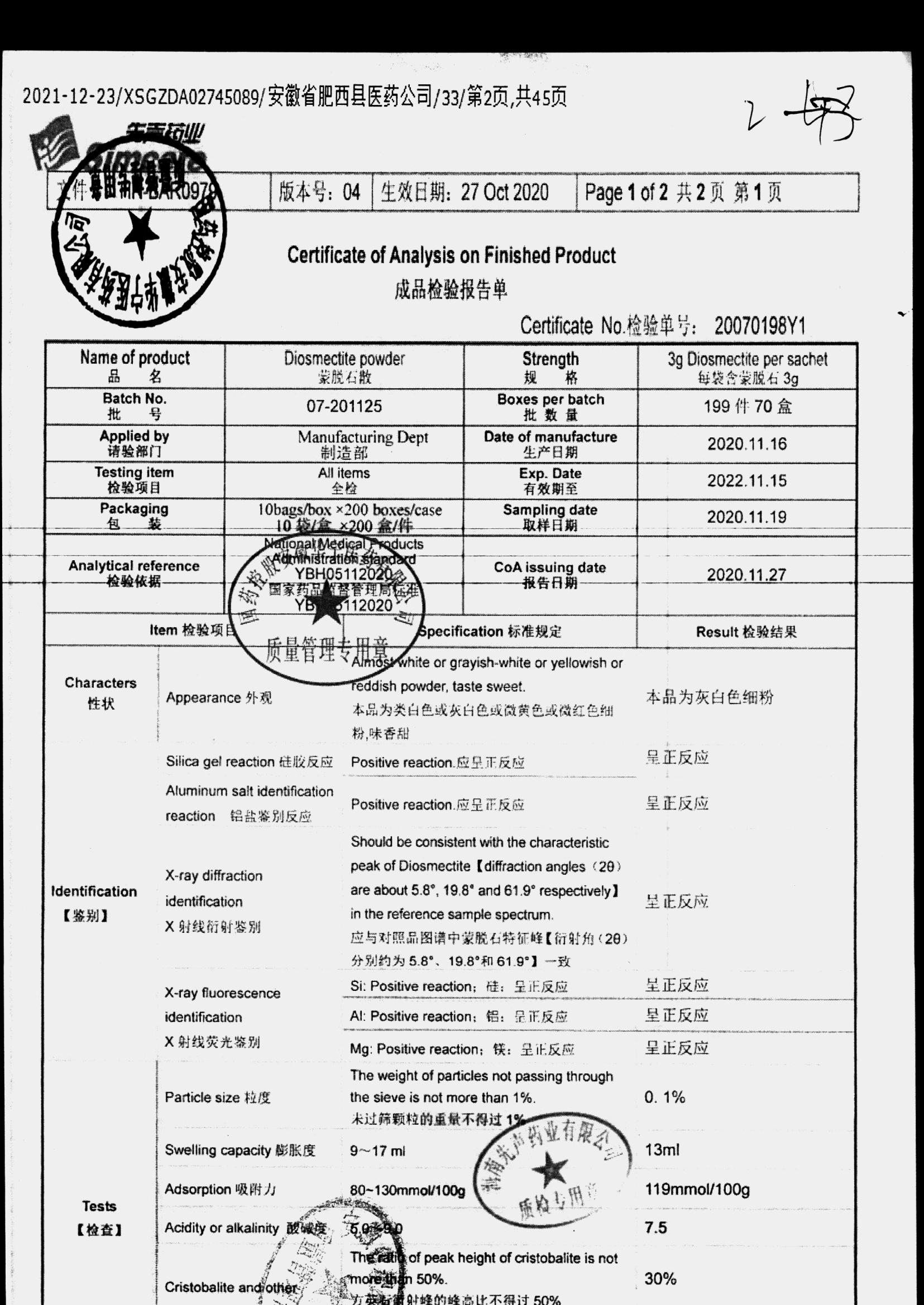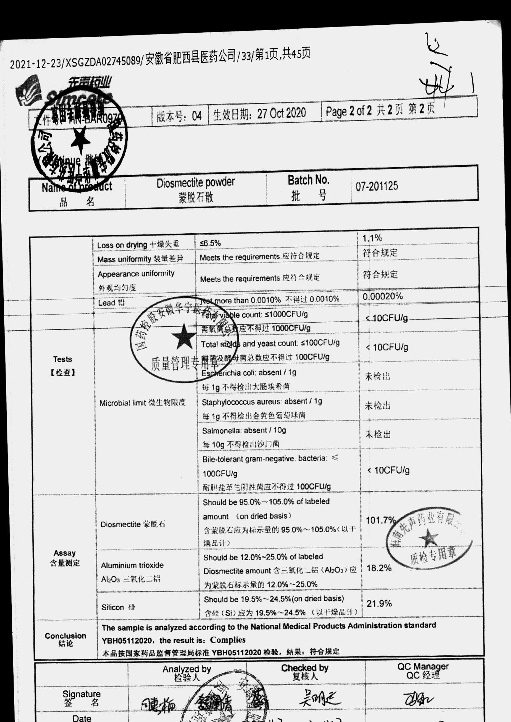 药检报告