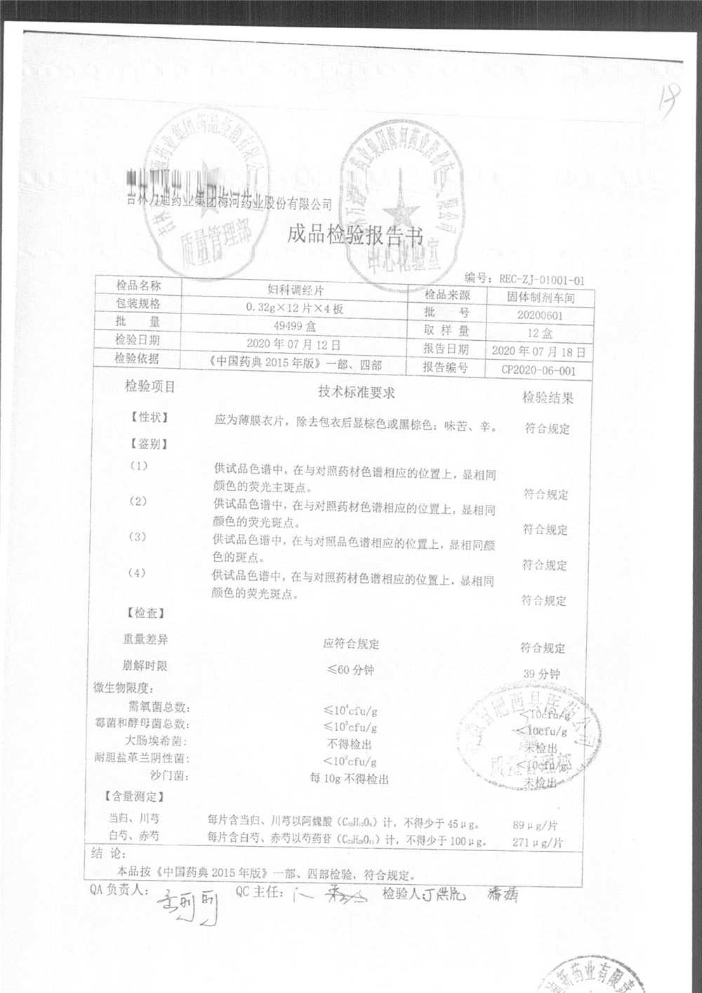 | 妇科调经片 | 0.32g*12*4 | 20200601 | 查看详情 |