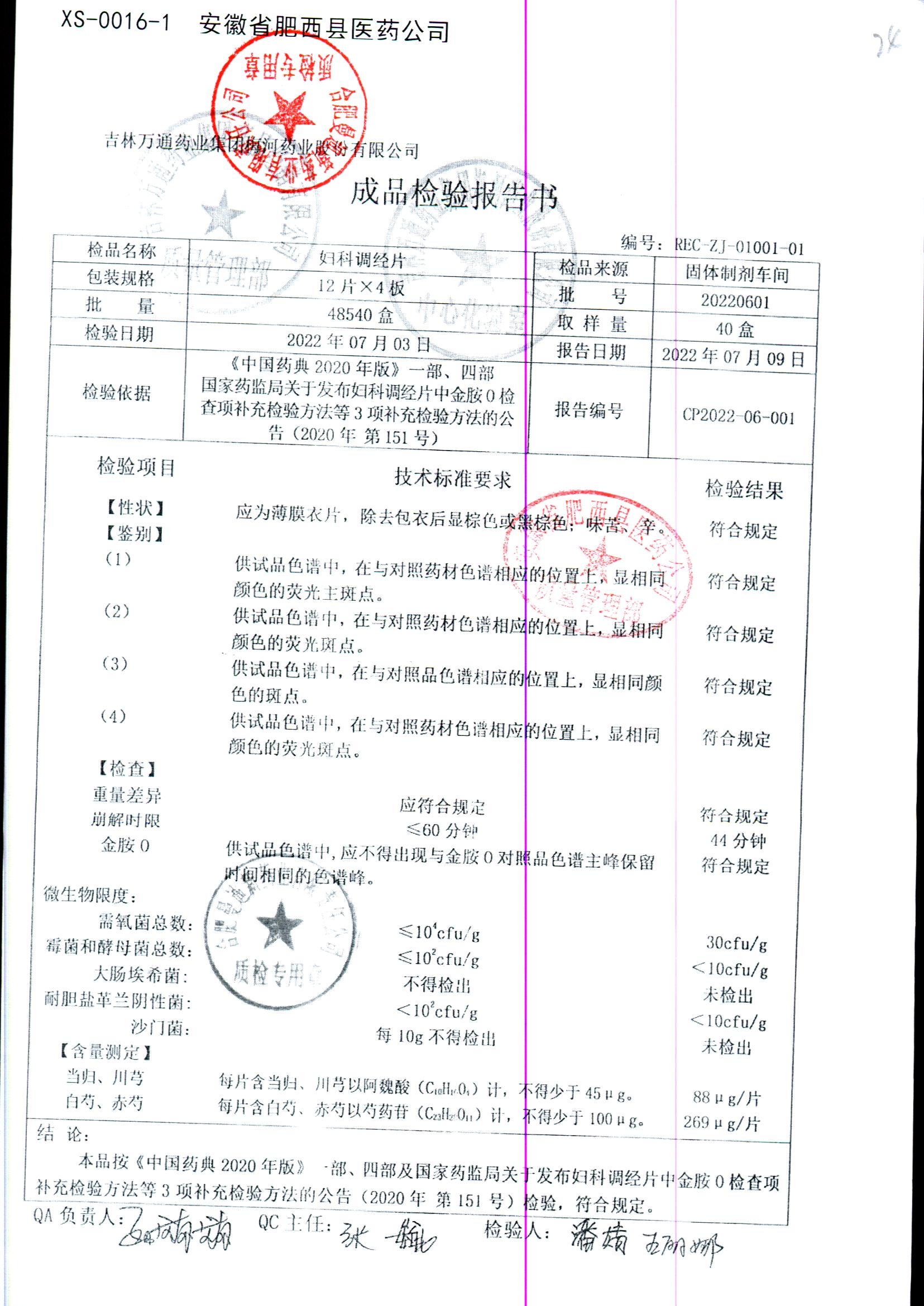 | 妇科调经片 | 0.32g*12*4 | 20220601 | 查看详情 |