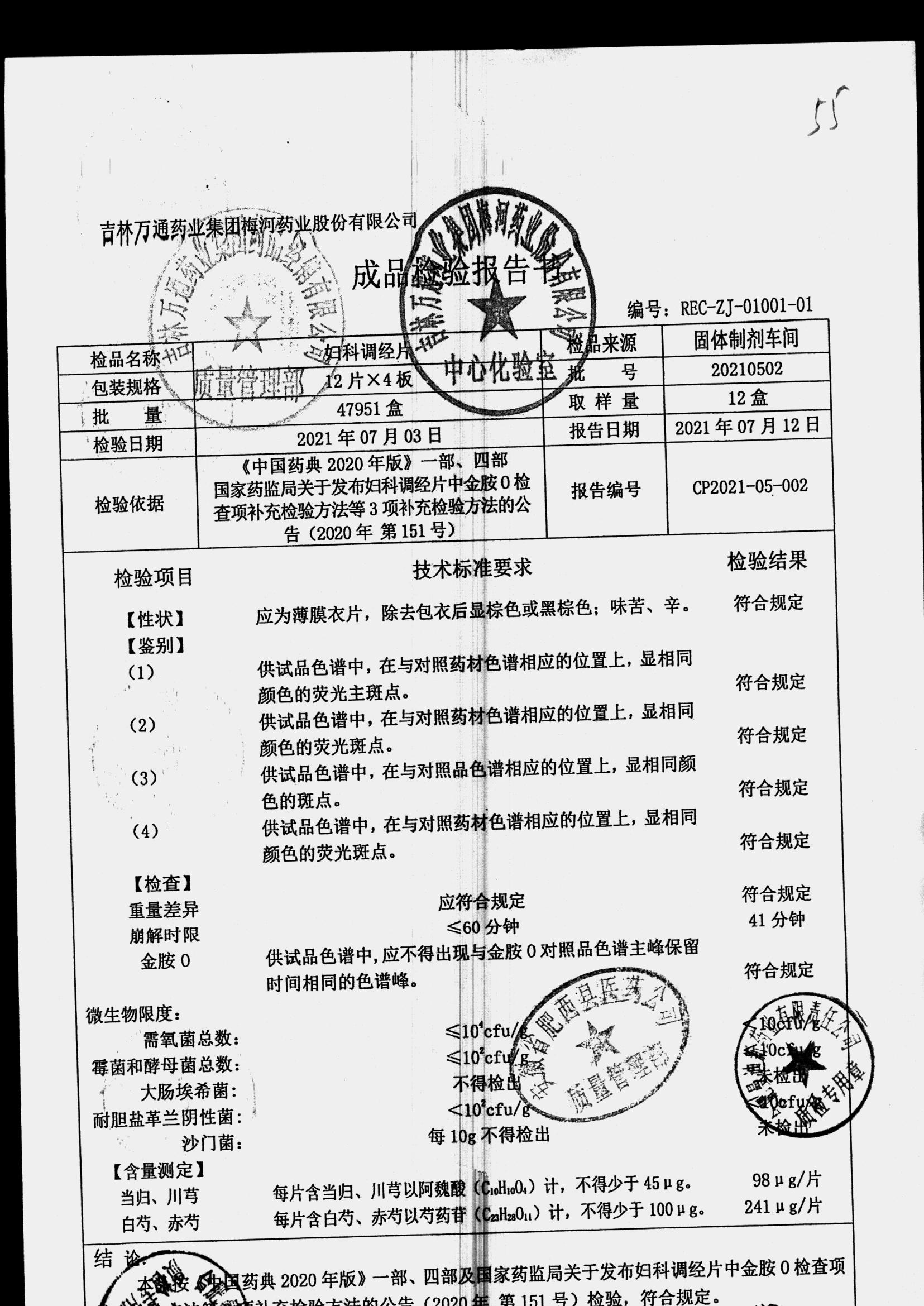 | 妇科调经片 | 0.32g*12*4 | 20210502 | 查看详情 |