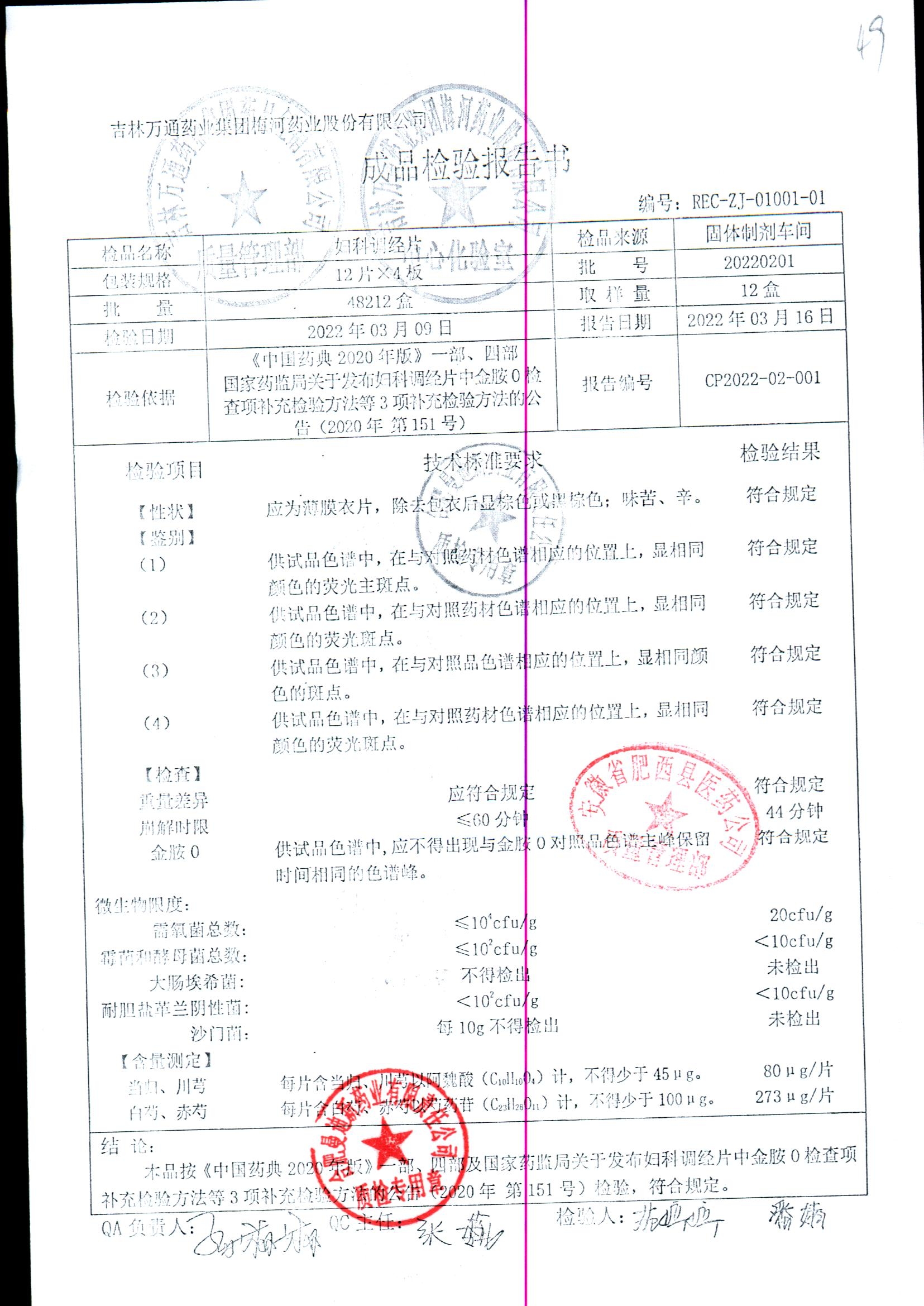 | 妇科调经片 | 0.32g*12*4 | 20220201 | 查看详情 |