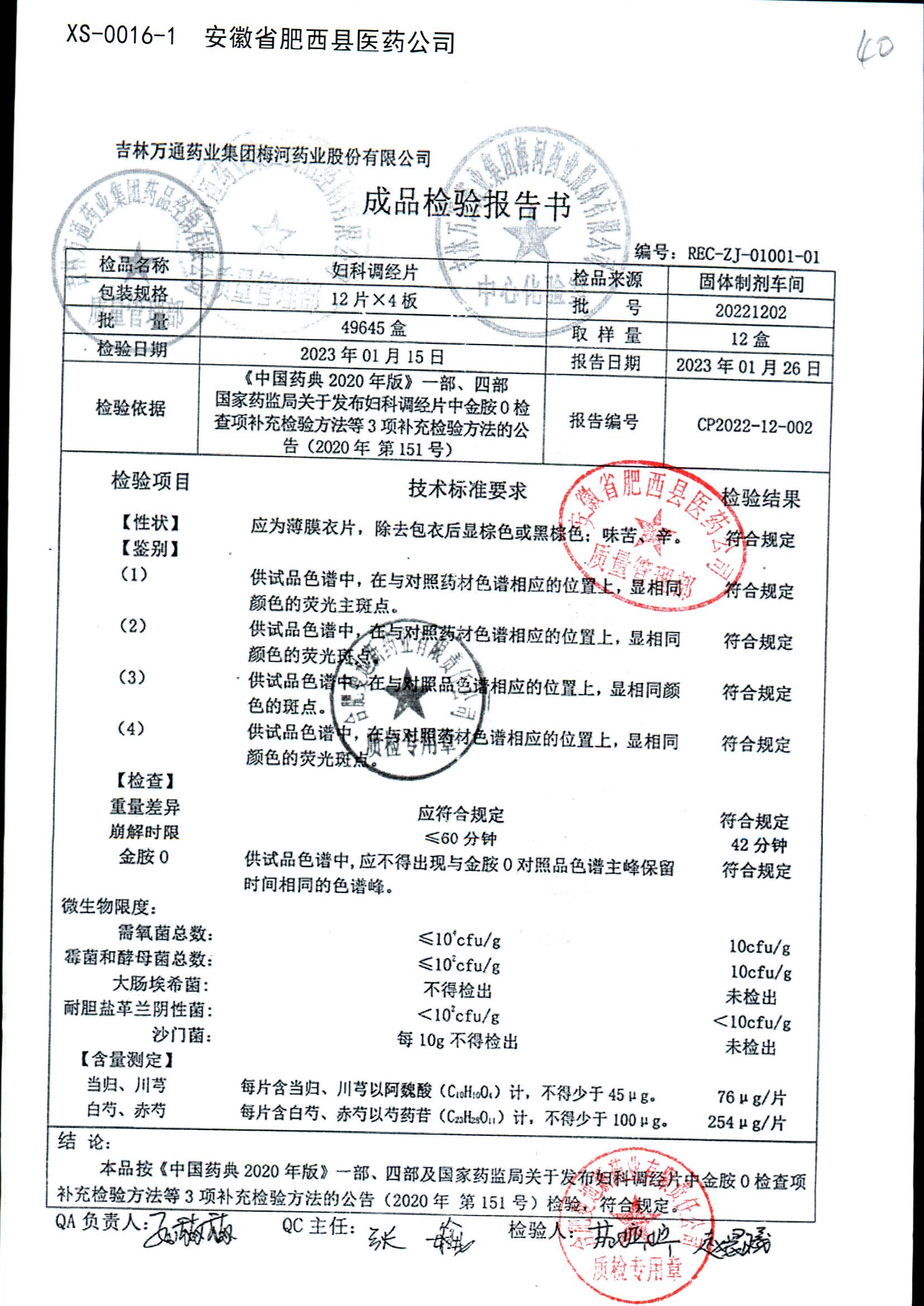 | 妇科调经片 | 0.32g*12*4 | 20221202 | 查看详情 |