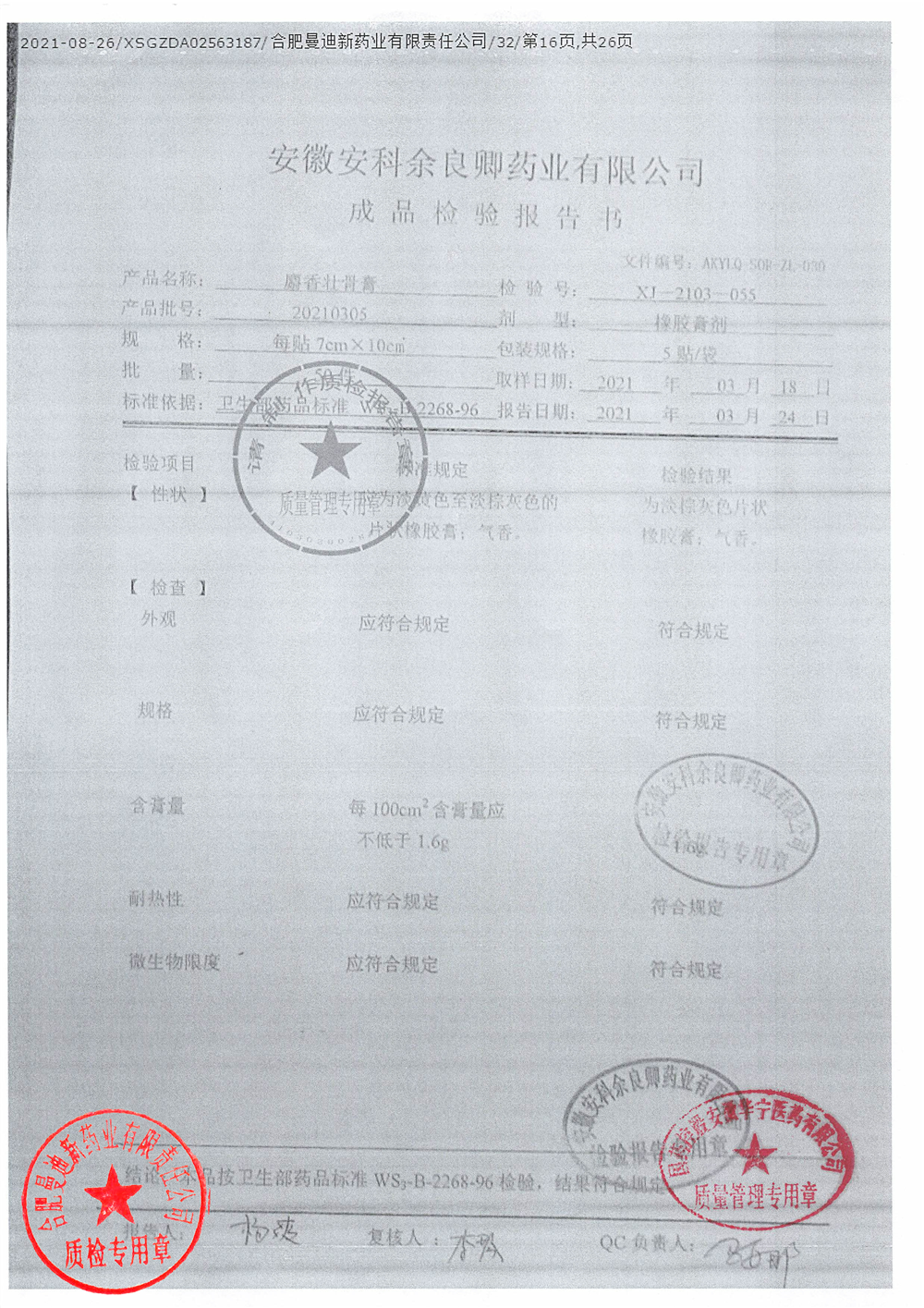 | 麝香壮骨膏 | 7cm*10cm*5贴/30 | 20211105 | 查看详情 |