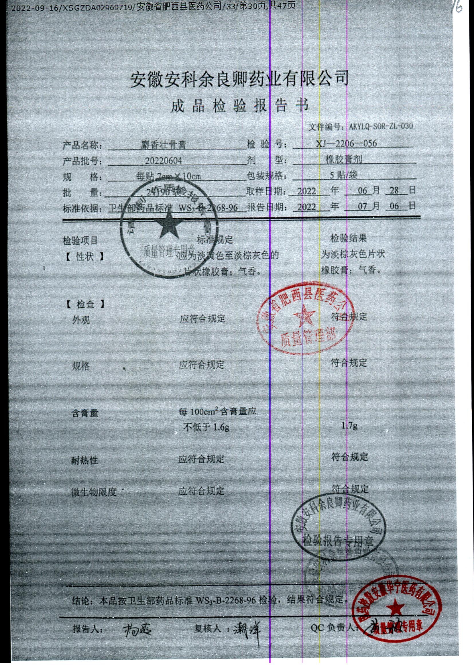 | 麝香壮骨膏 | 7cm*10cm*5贴/30 | 20220604 | 查看详情 |